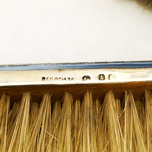 Ein Paar Kinderbürsten, „Schwanensee“, Silber und Emaille. Albert Carter, Birmingham, 1921.