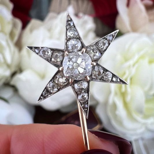Spillone con stella, diamante Old Mine e diamanti a rosetta per totali 3 carati - XIX secolo
