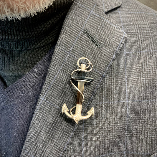 Antike schottische Ankerbrosche mit Silber- und Achatspitze