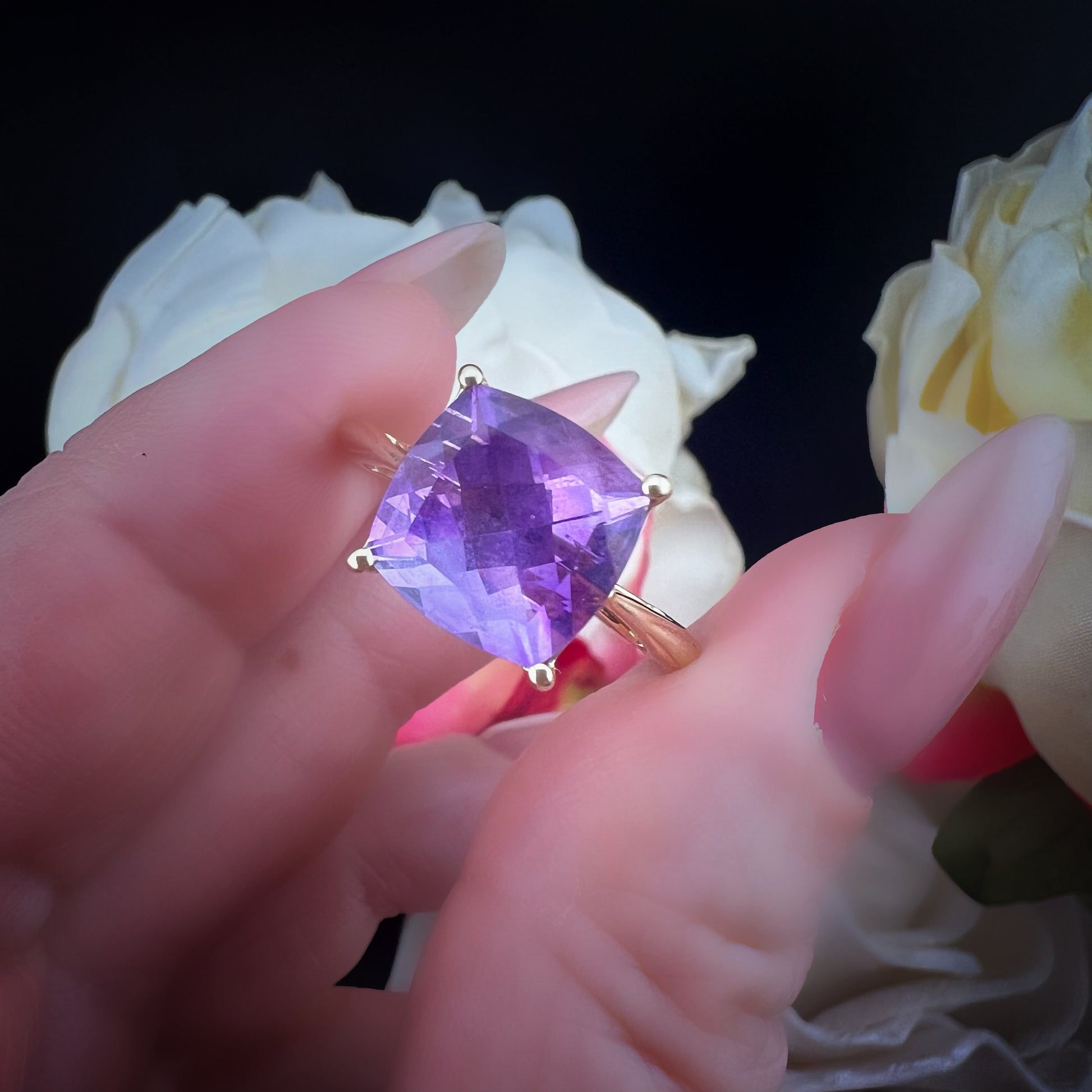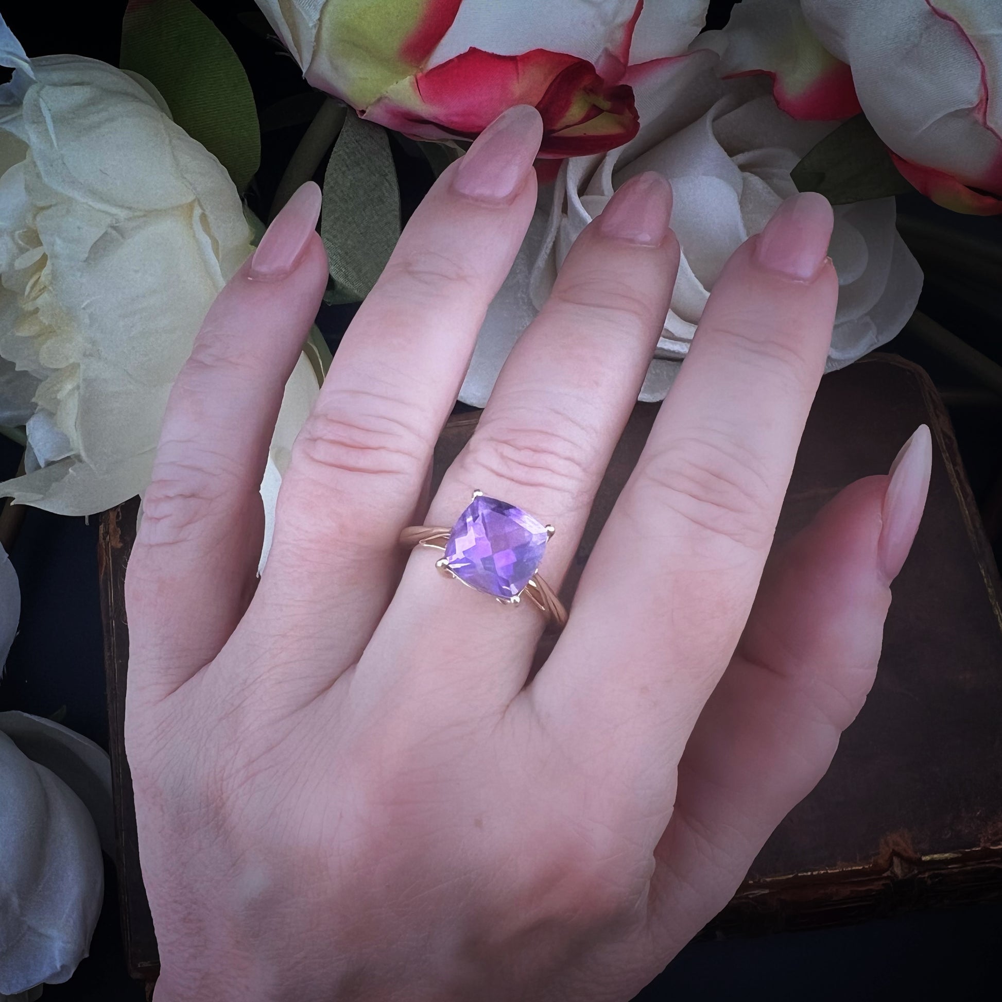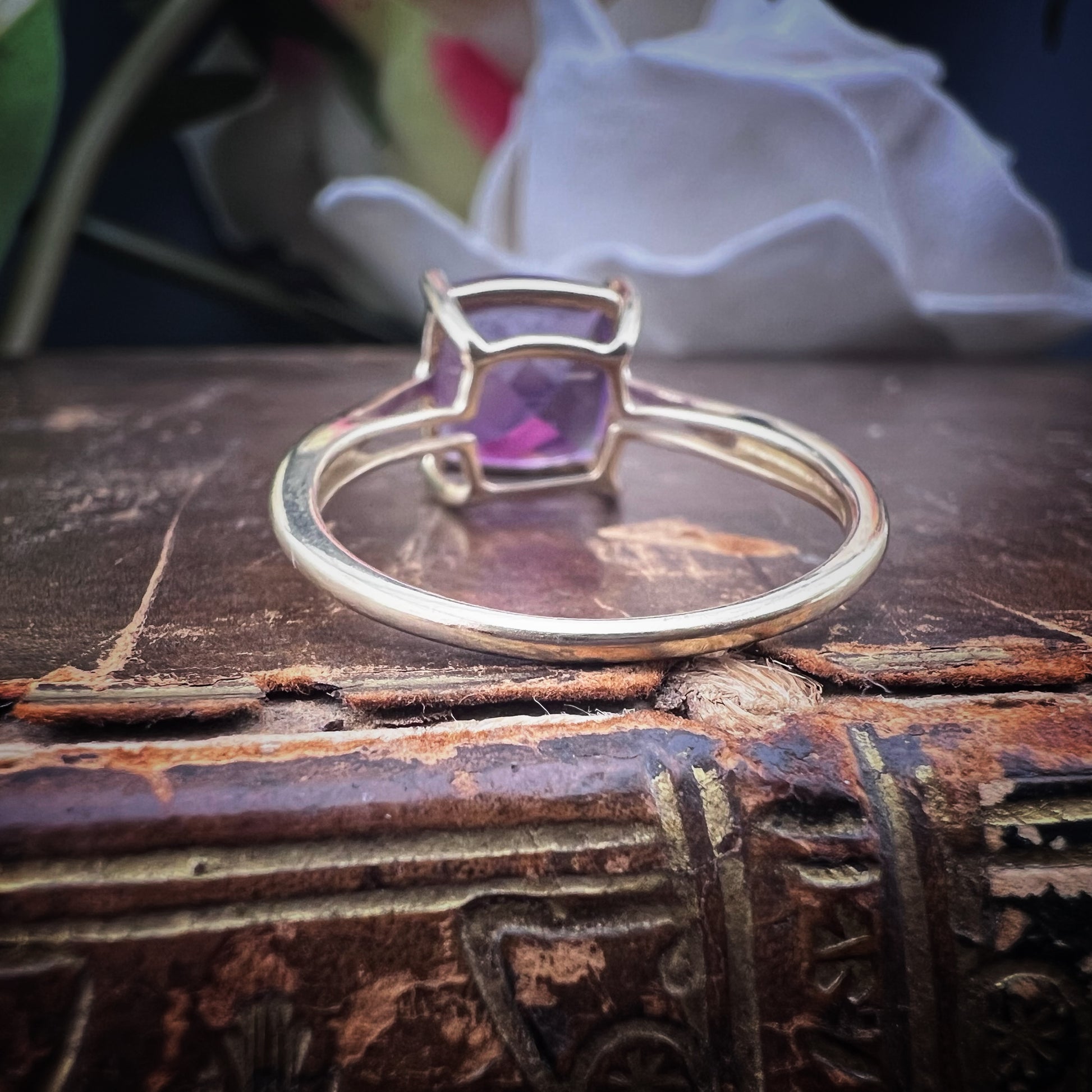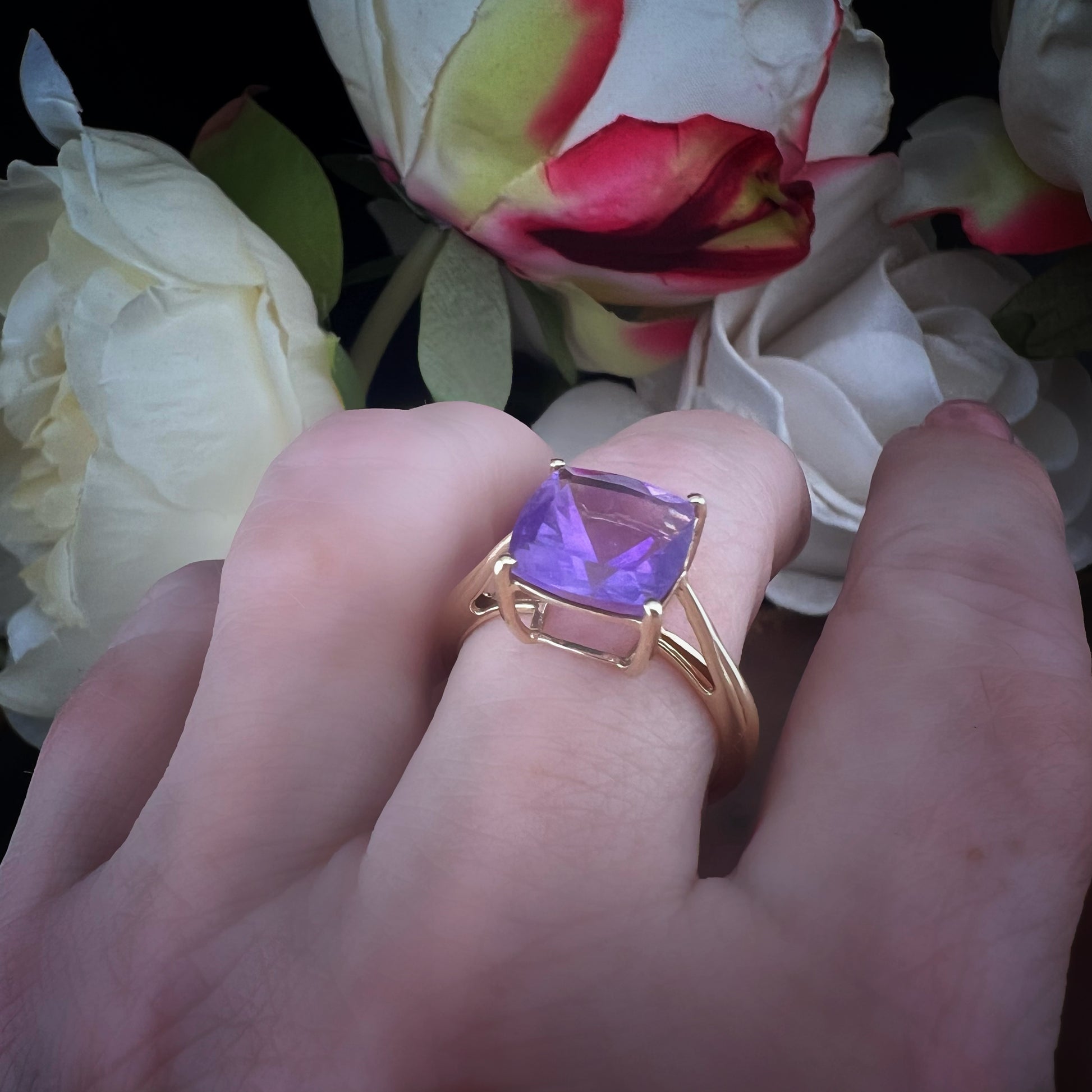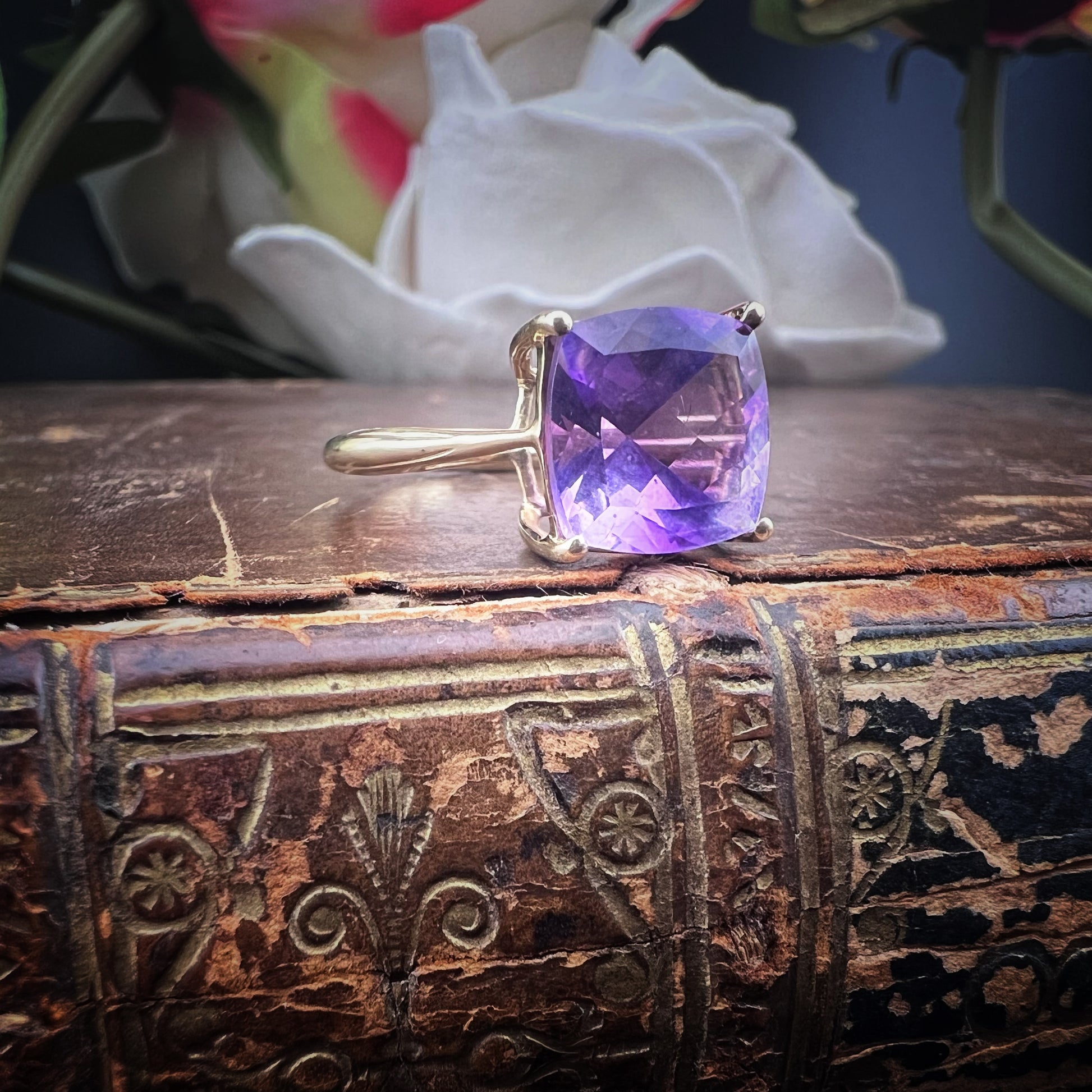 ✨ Gebrauchter quadratischer Amethystring aus 10 Karat Gold – Vintage-Eleganz aus Birmingham ✨