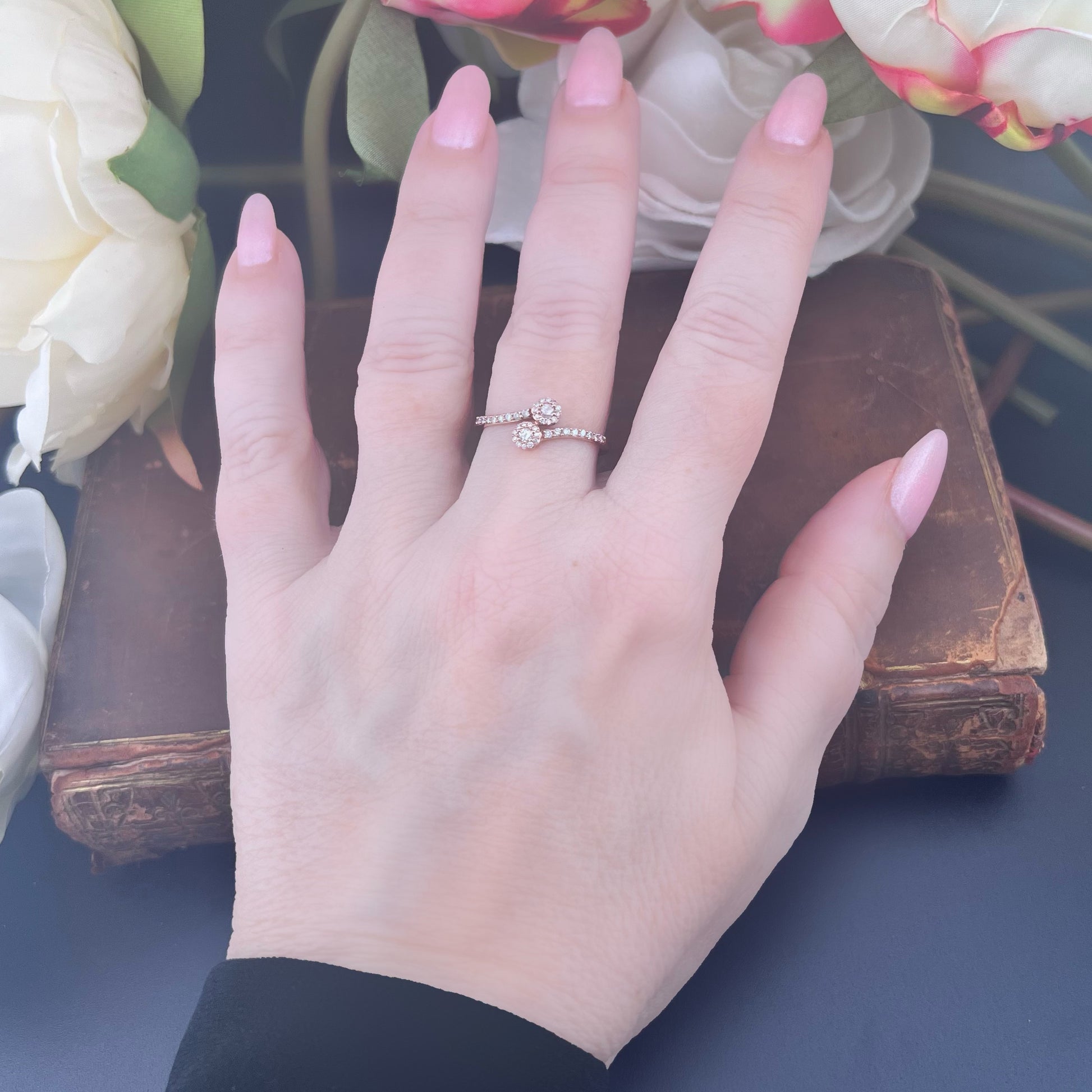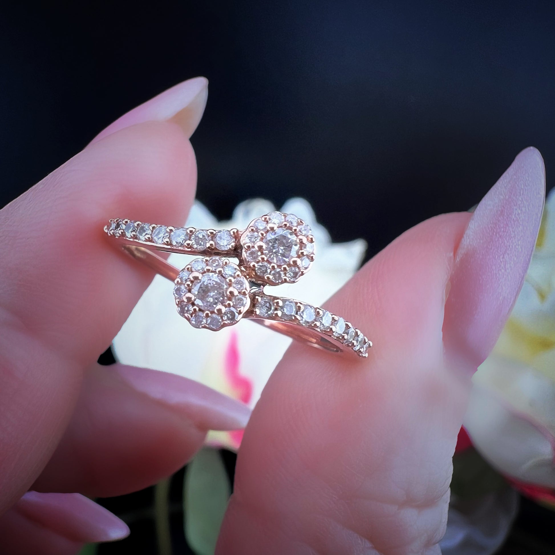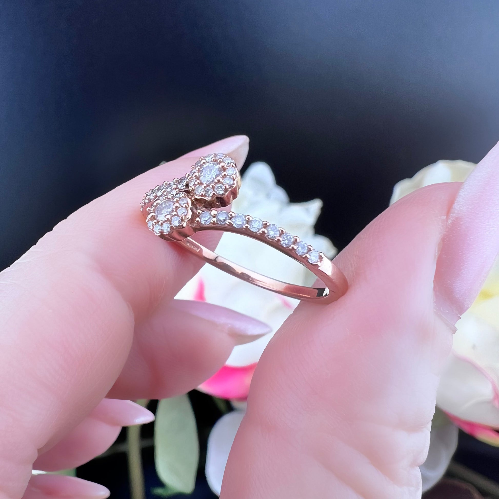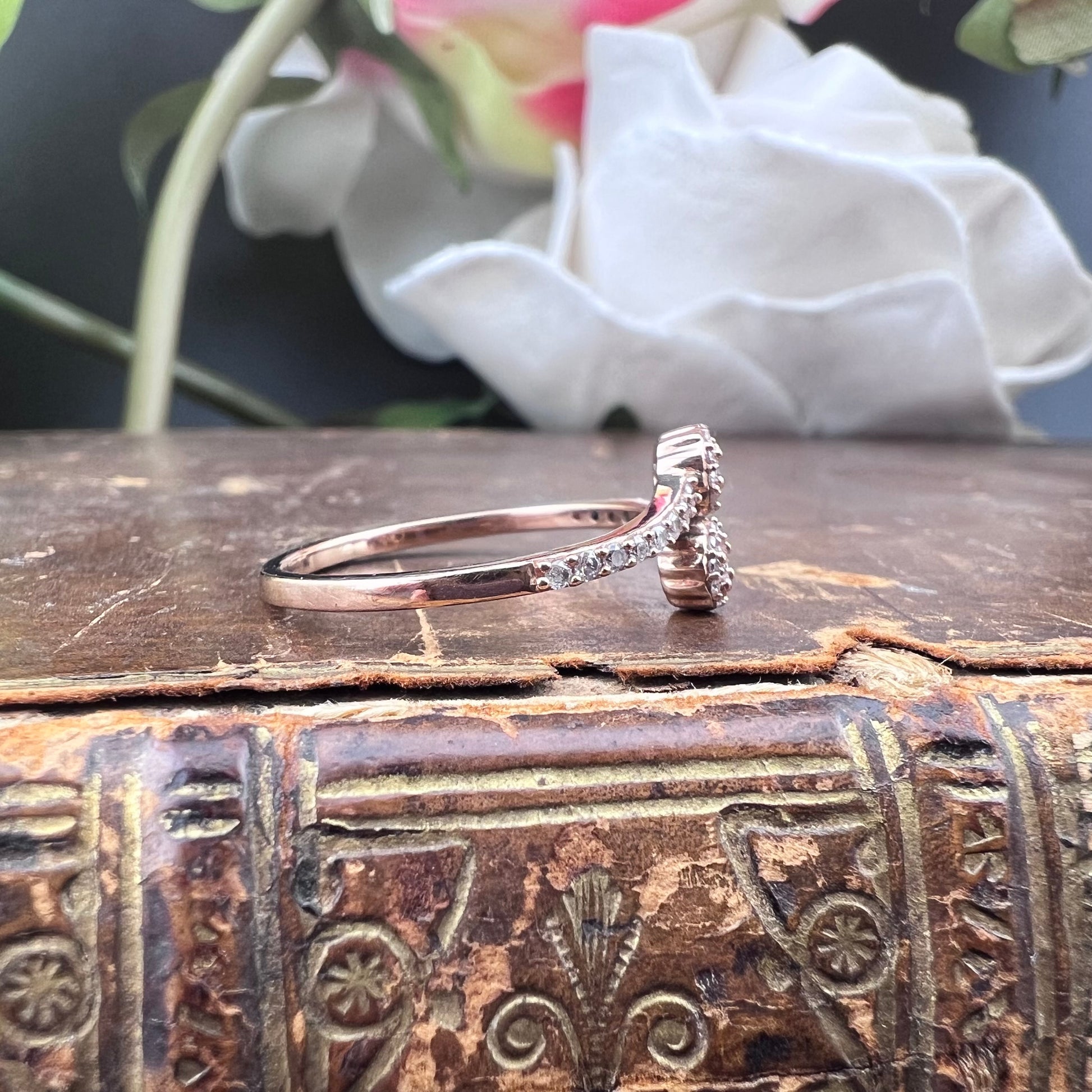 Contrarie-Ring aus 9 Karat Roségold mit Gänseblümchen und Diamanten – Vintage aus Birmingham