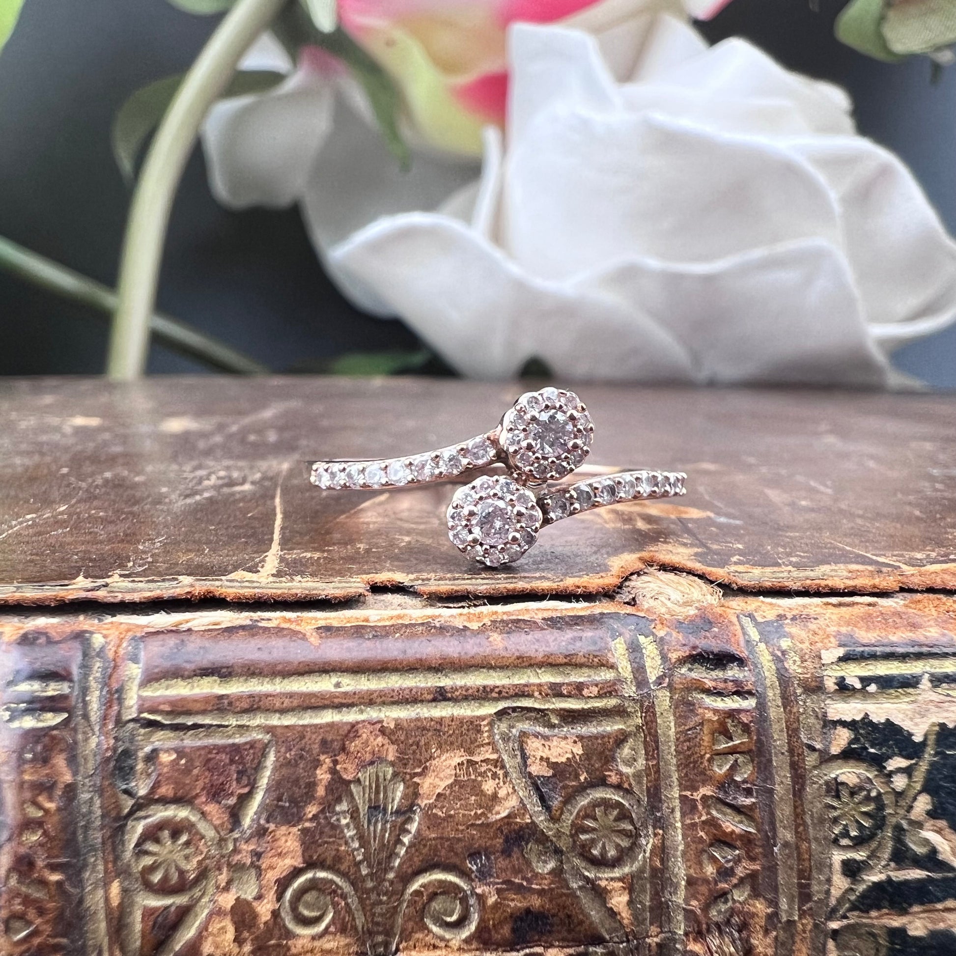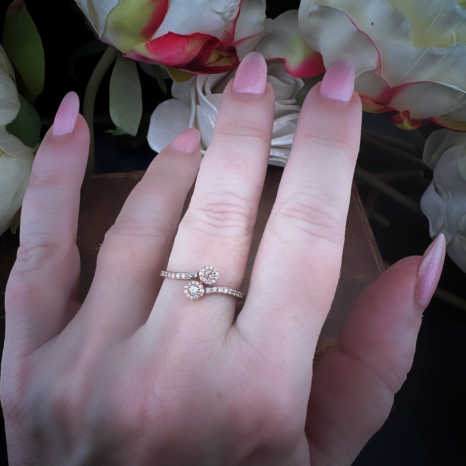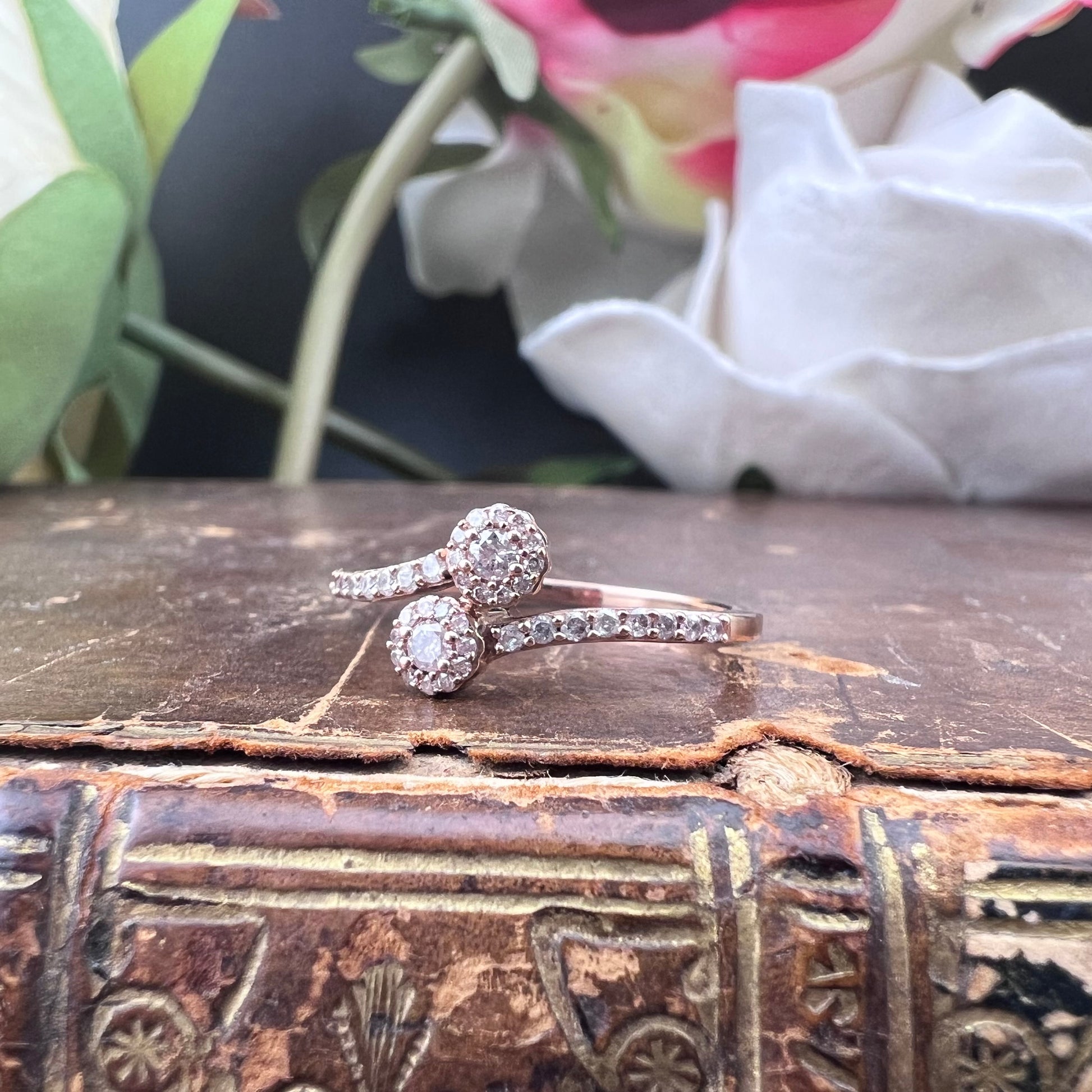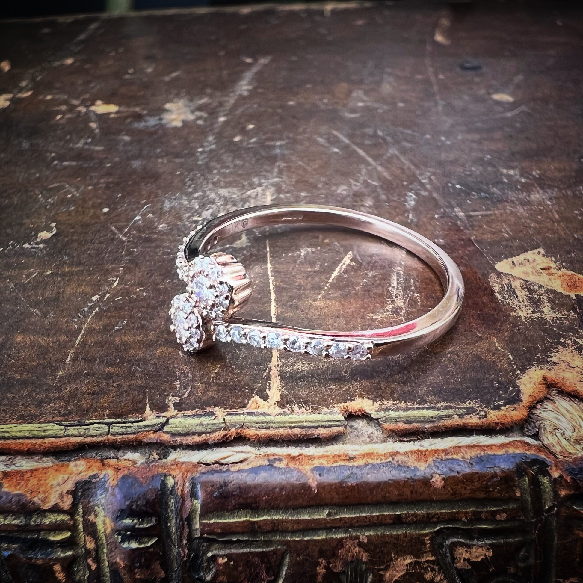 Contrarie-Ring aus 9 Karat Roségold mit Gänseblümchen und Diamanten – Vintage aus Birmingham