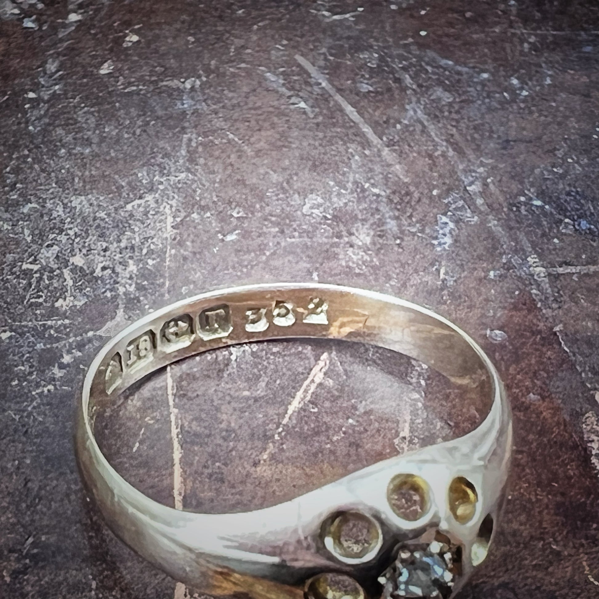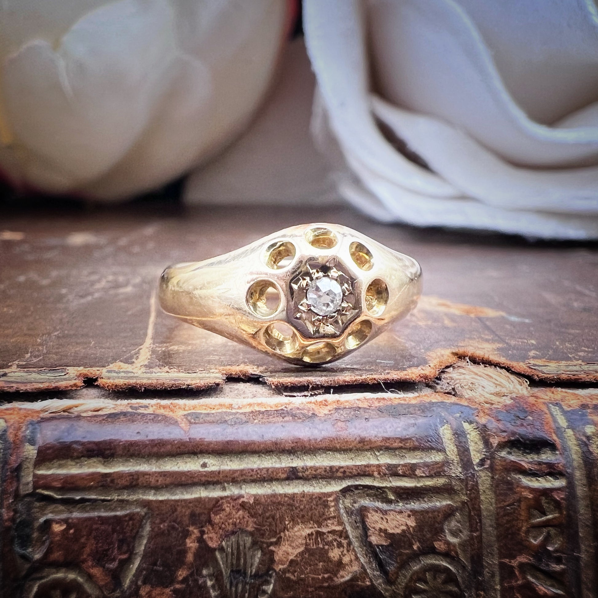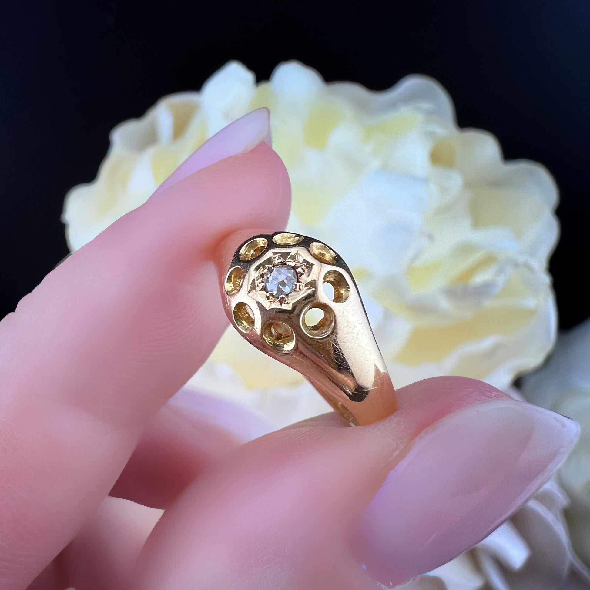 Antiker Gypsy-Solitärring aus 18 Karat Gold mit Diamanten – Birmingham 1916