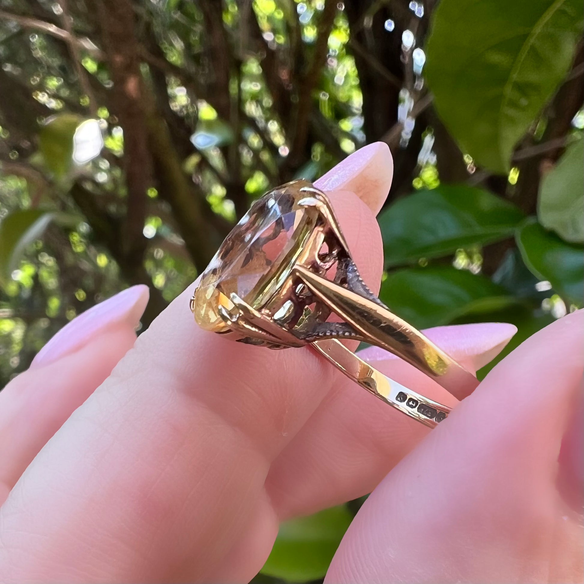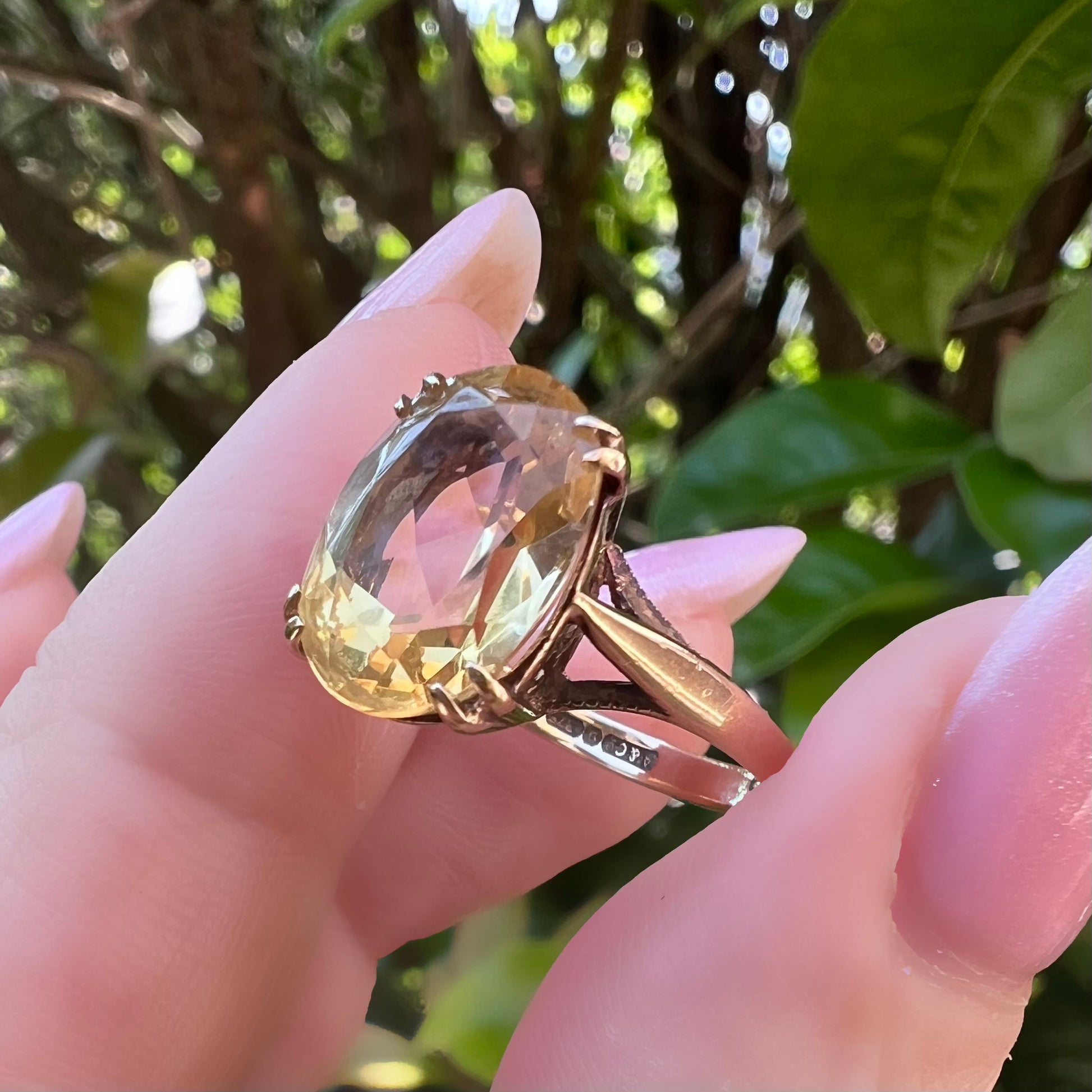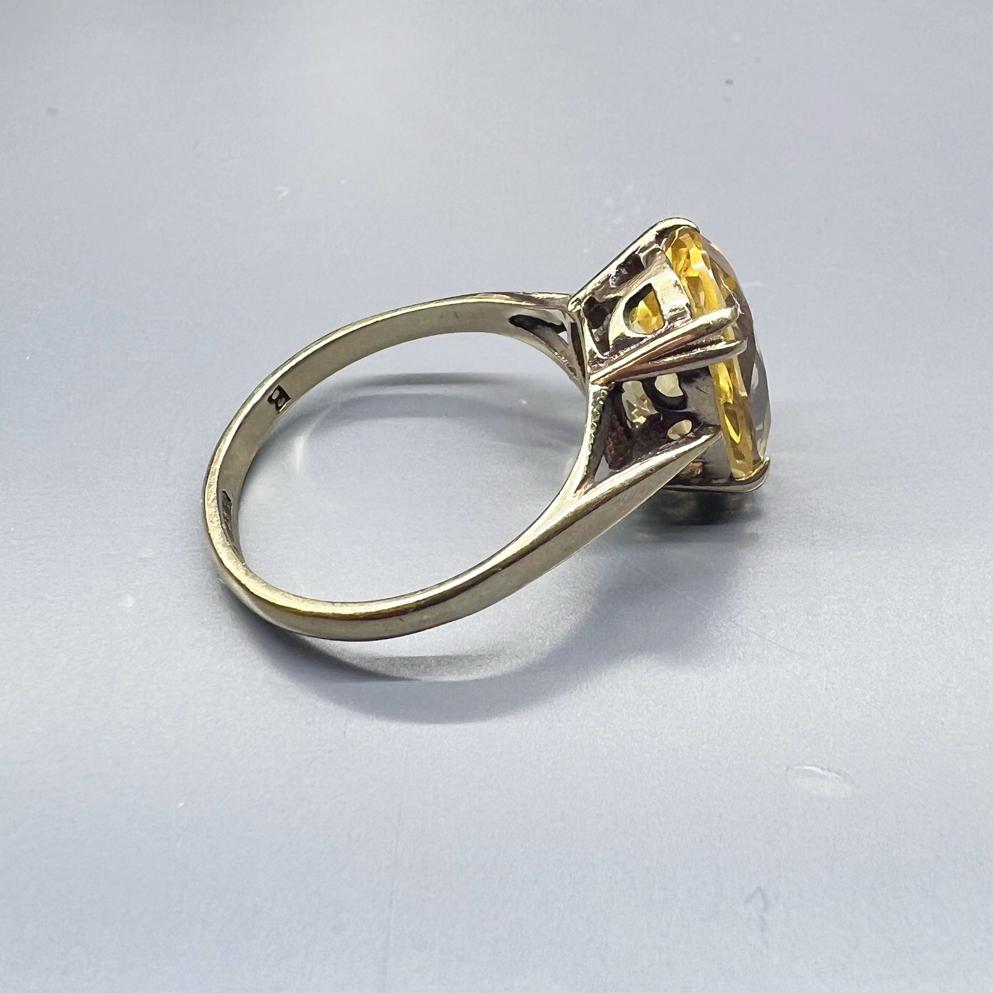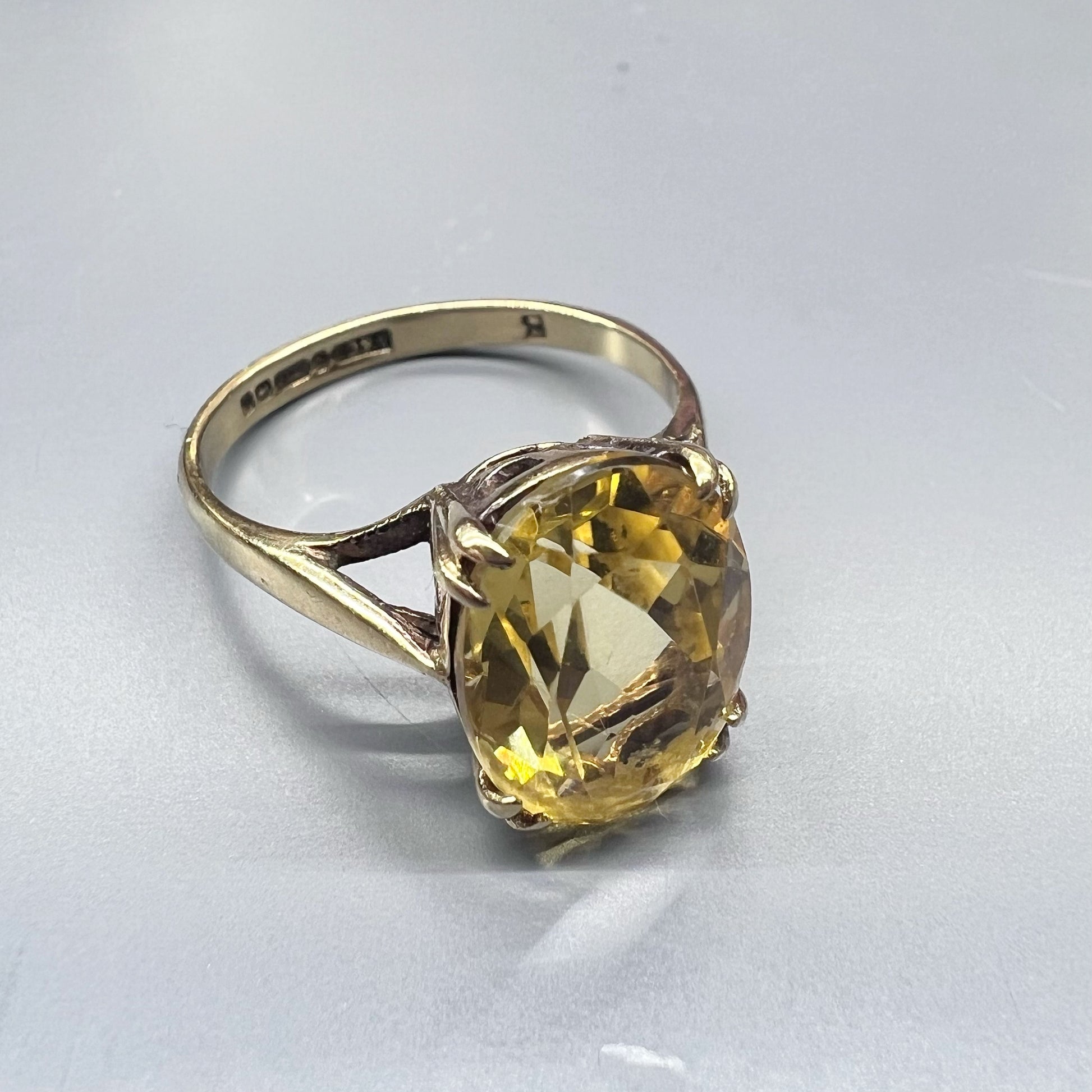 Englischer Vintage-Ring aus 9 Karat Gold mit einem brillanten Citrinquarz im Ovalschliff