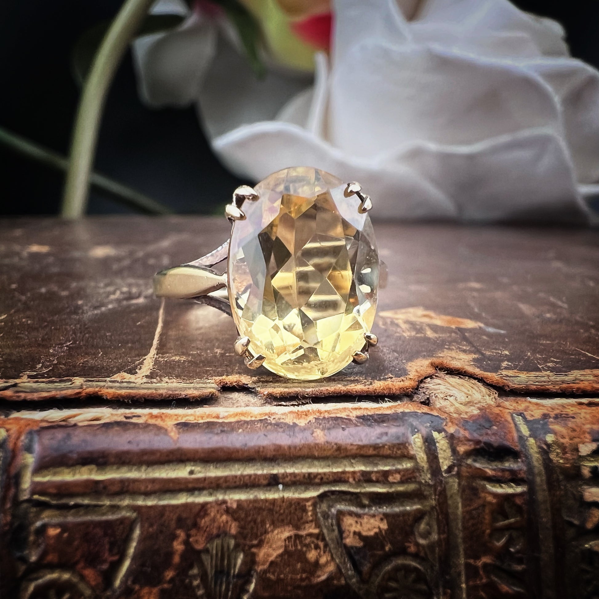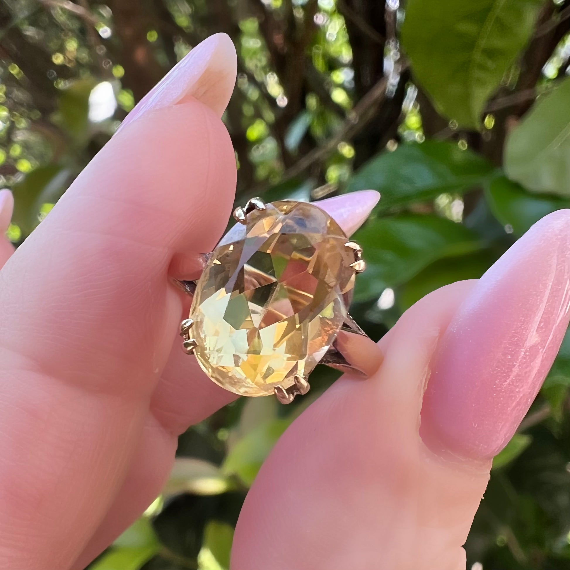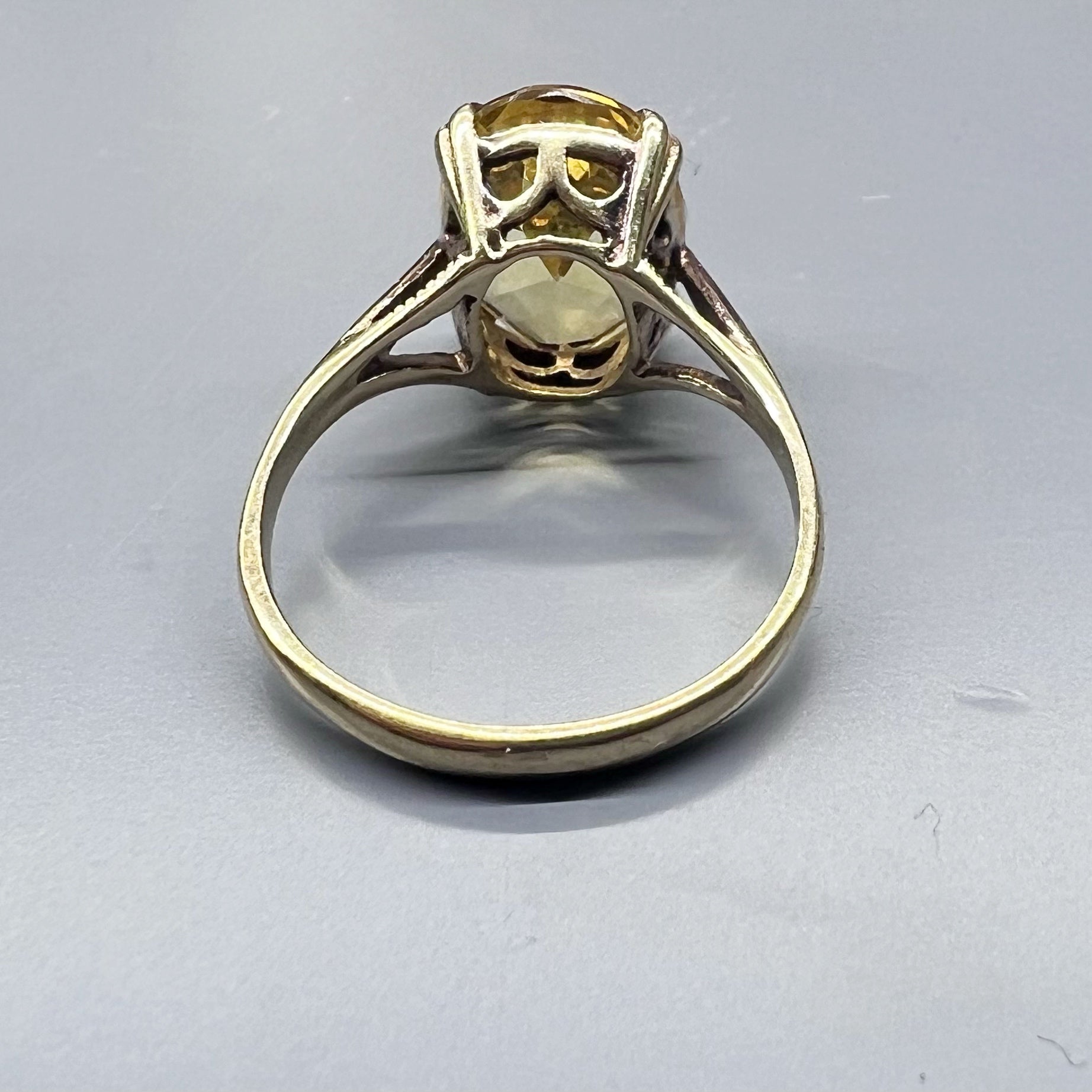 Englischer Vintage-Ring aus 9 Karat Gold mit einem brillanten Citrinquarz im Ovalschliff