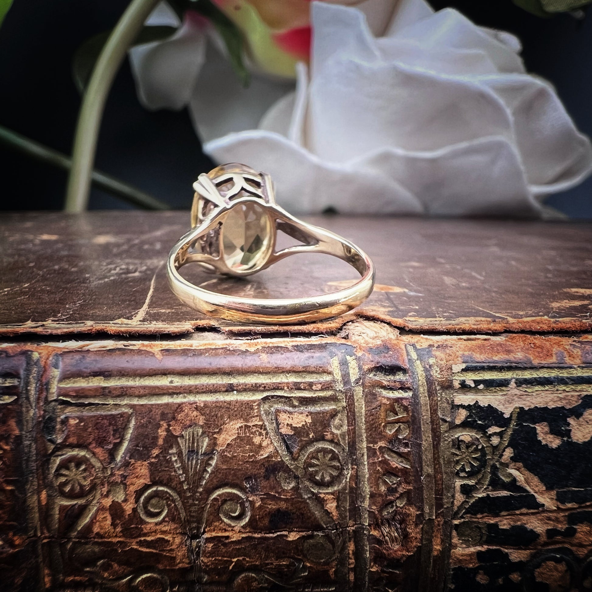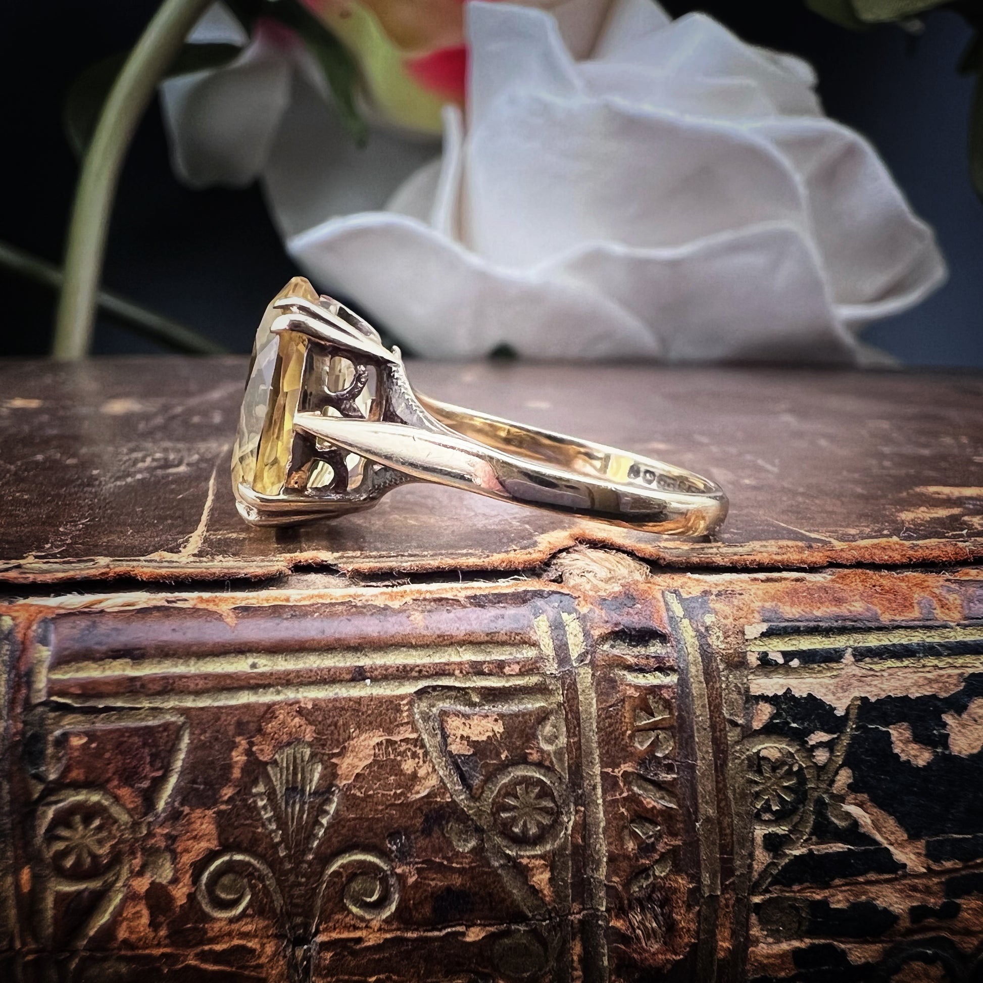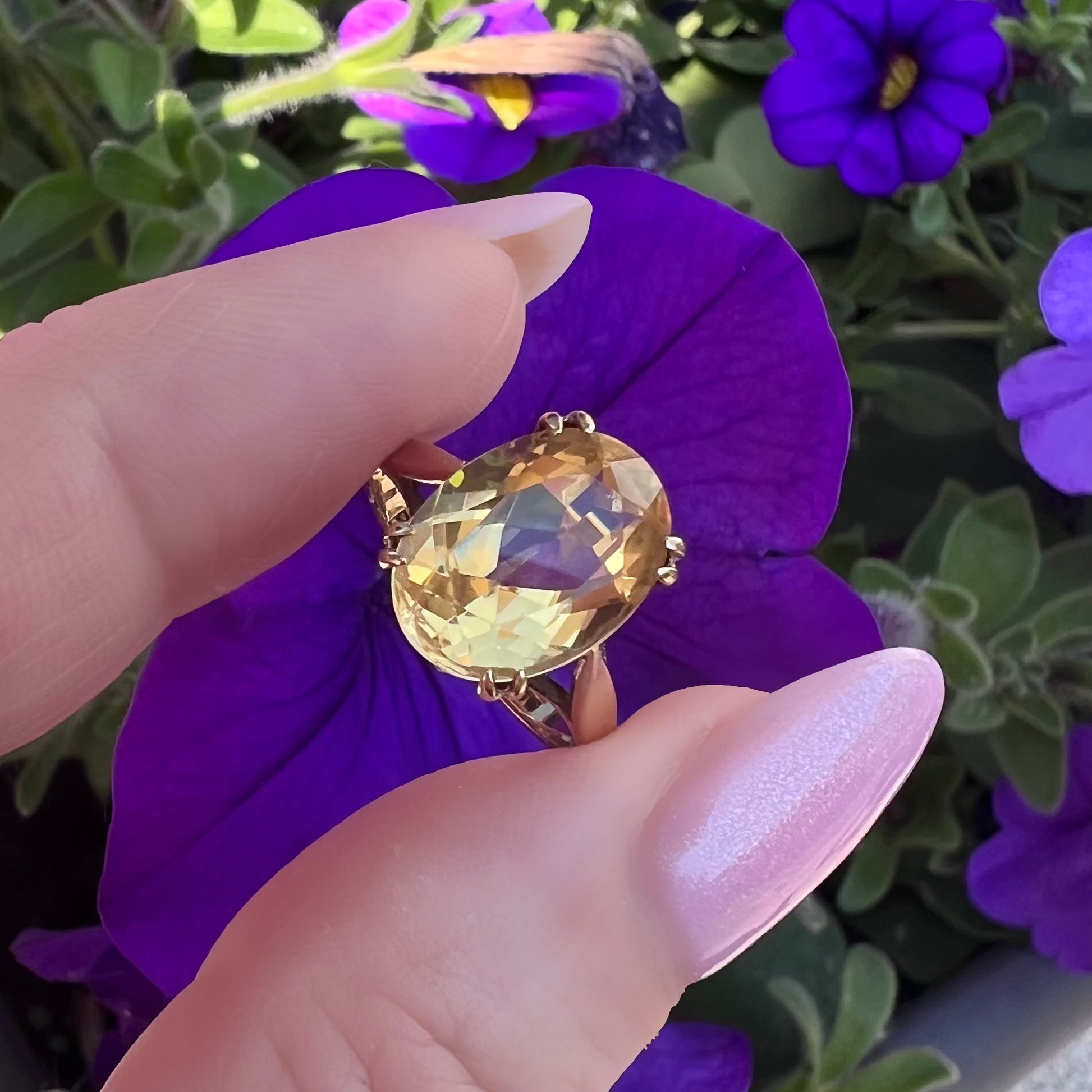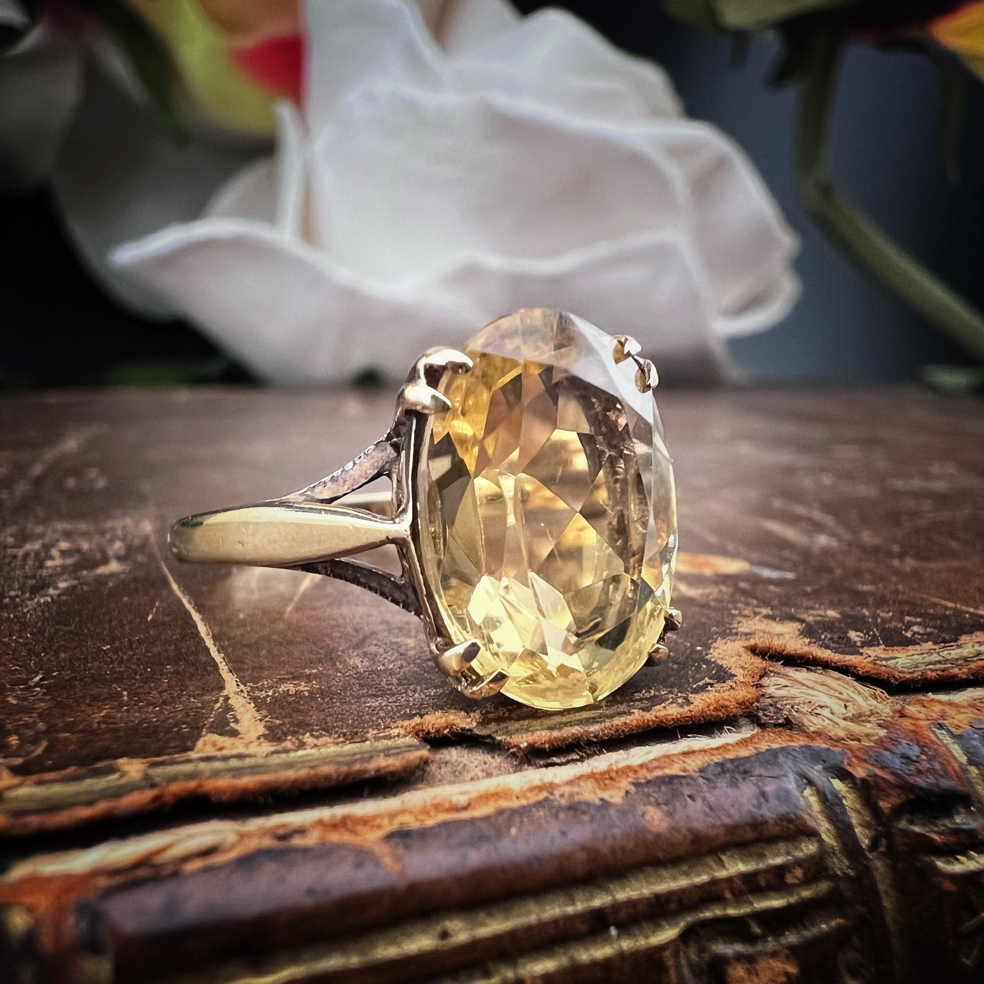 Englischer Vintage-Ring aus 9 Karat Gold mit einem brillanten Citrinquarz im Ovalschliff