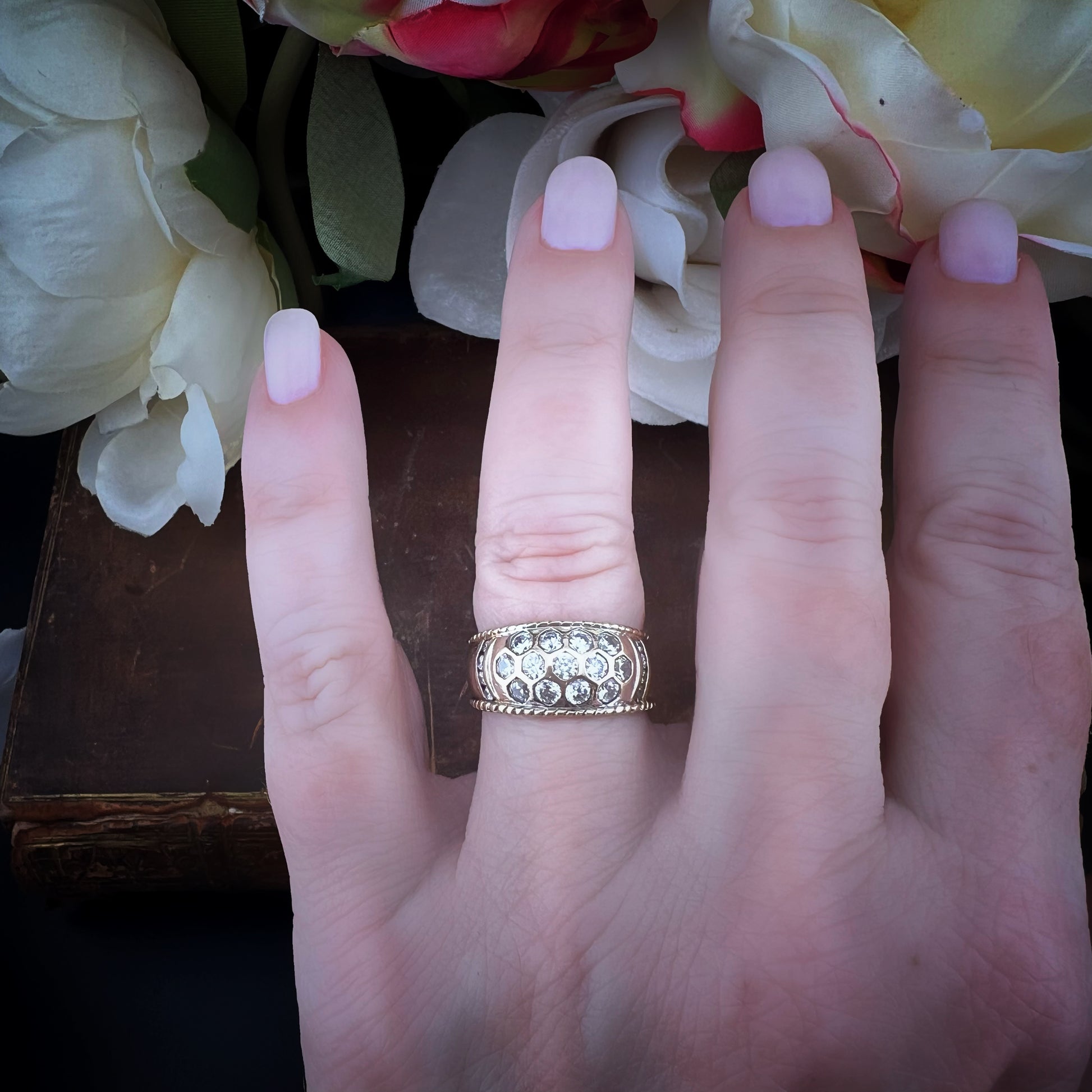 Vintage-Bandring aus Gold und Zirkonia – London, 1970–1990