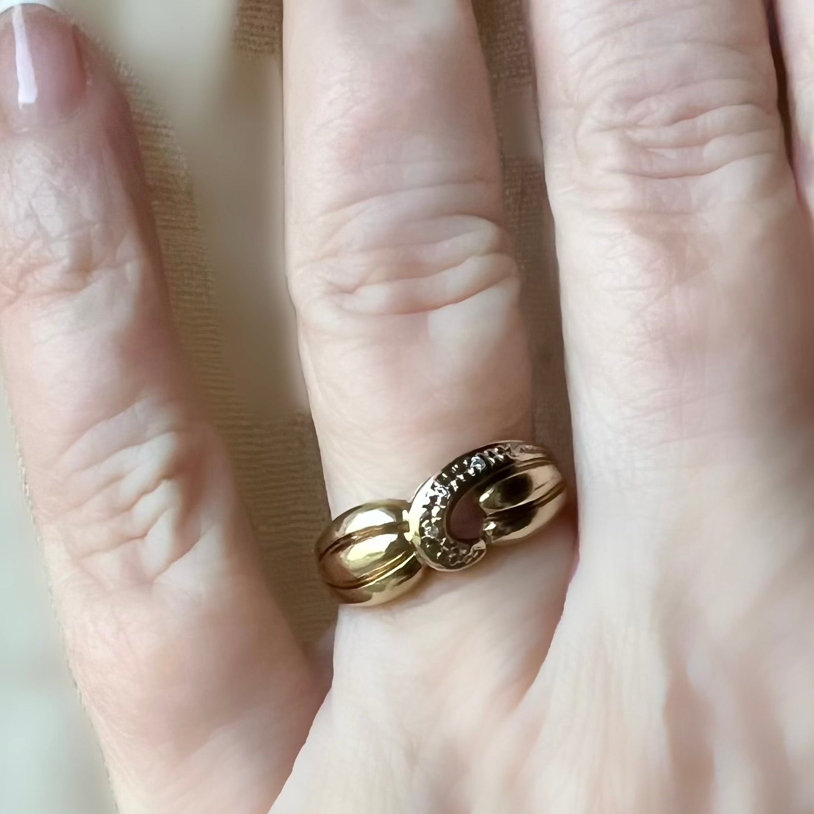 Eleganter, konischer Vintage-Ring mit kleinen natürlichen Diamanten und weißen Saphiren im Verbindungsstück. Hergestellt aus 9 Karat Gelbgold nach englischer Tradition.