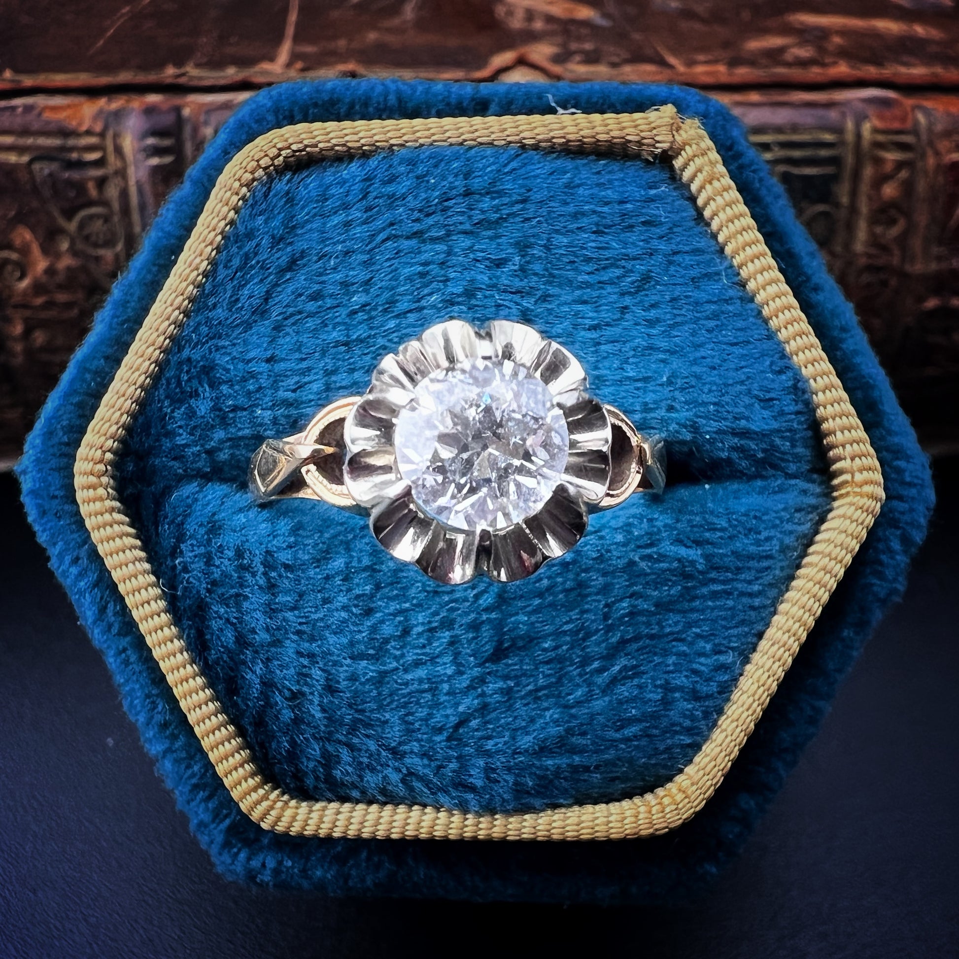 Der Charme des Diamanten im Altschliff mit seinem sanften, warmen Glanz zeugt von der Sorgfalt und Handwerkskunst vergangener Zeiten und macht ihn perfekt für alle, die Objekte mit tiefer Bedeutung zu schätzen wissen. Die kunstvolle Fassung macht ihn zudem ideal für alle, die etwas Exklusives und Unkonventionelles suchen.