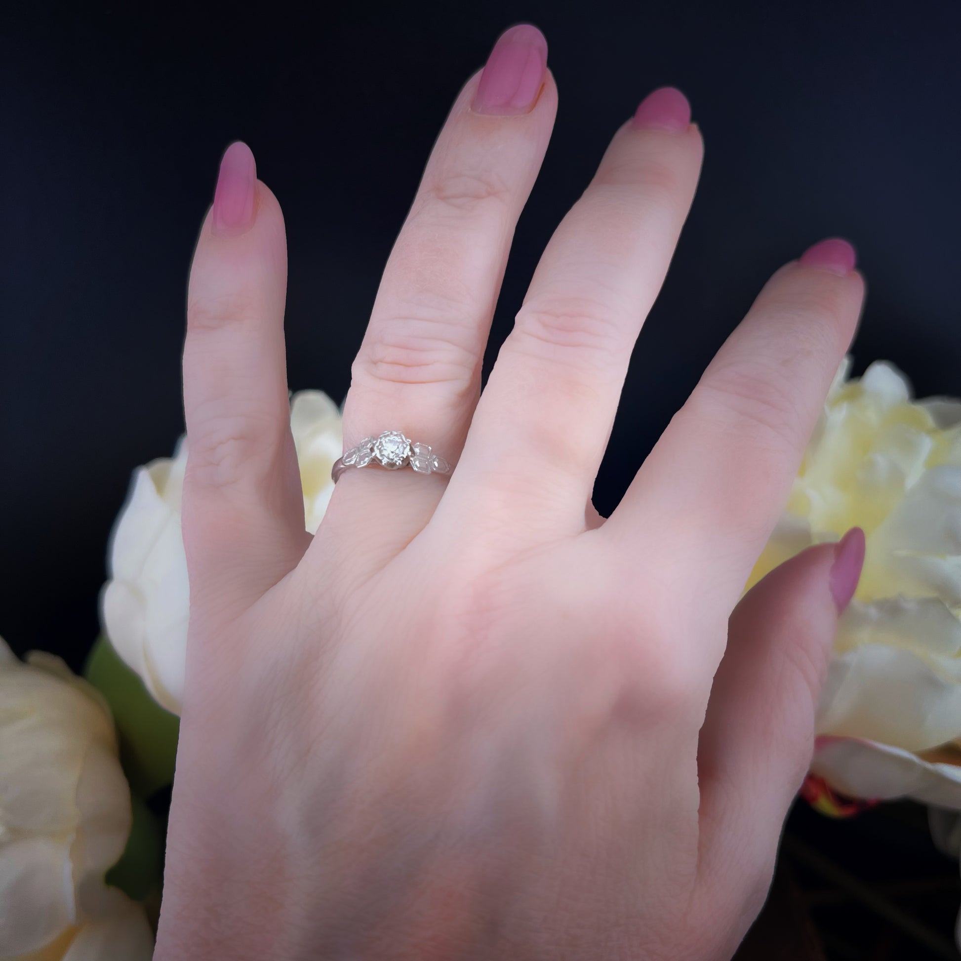 Platin- und Altmine-Diamantring aus dem frühen 20. Jahrhundert