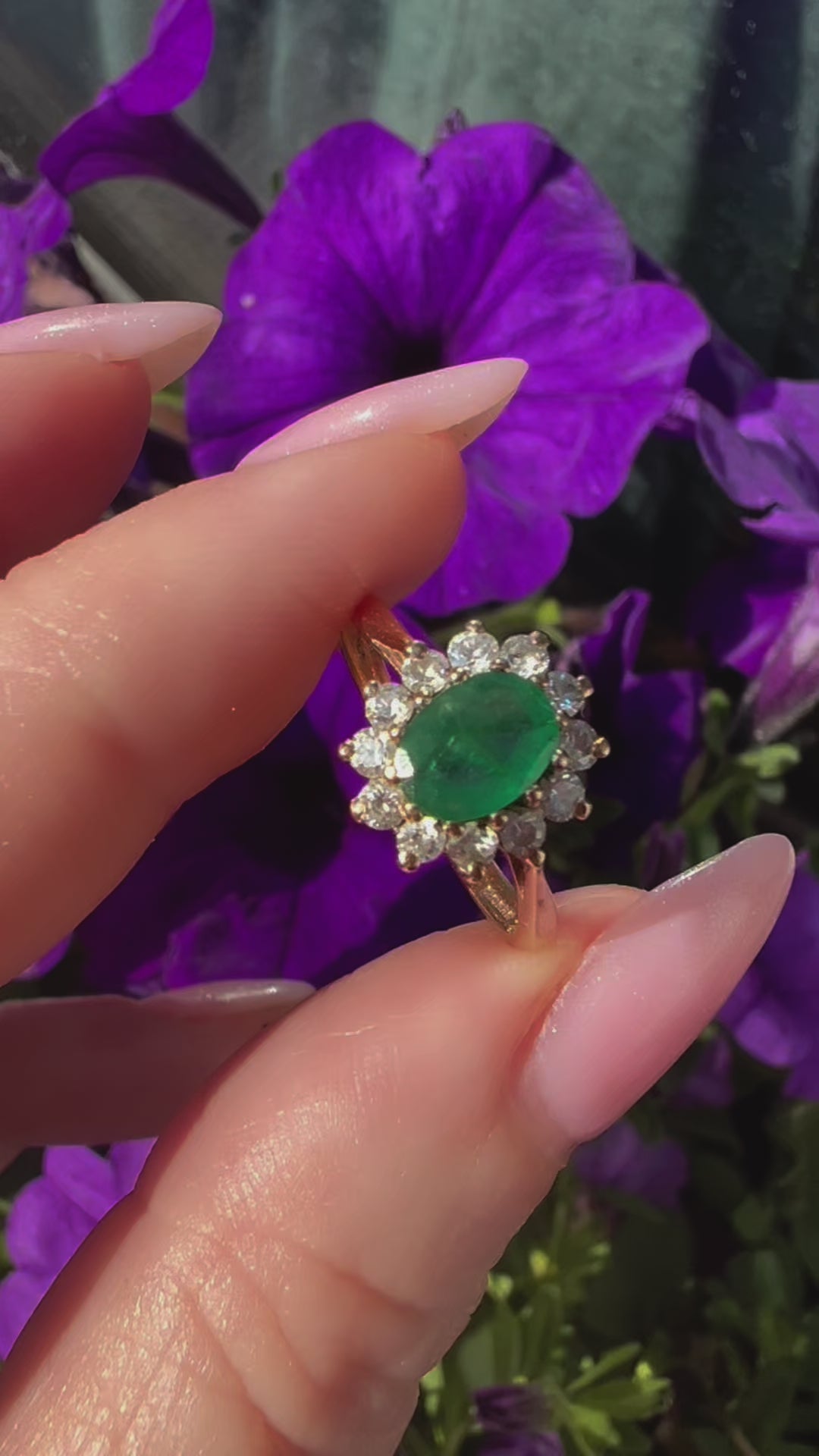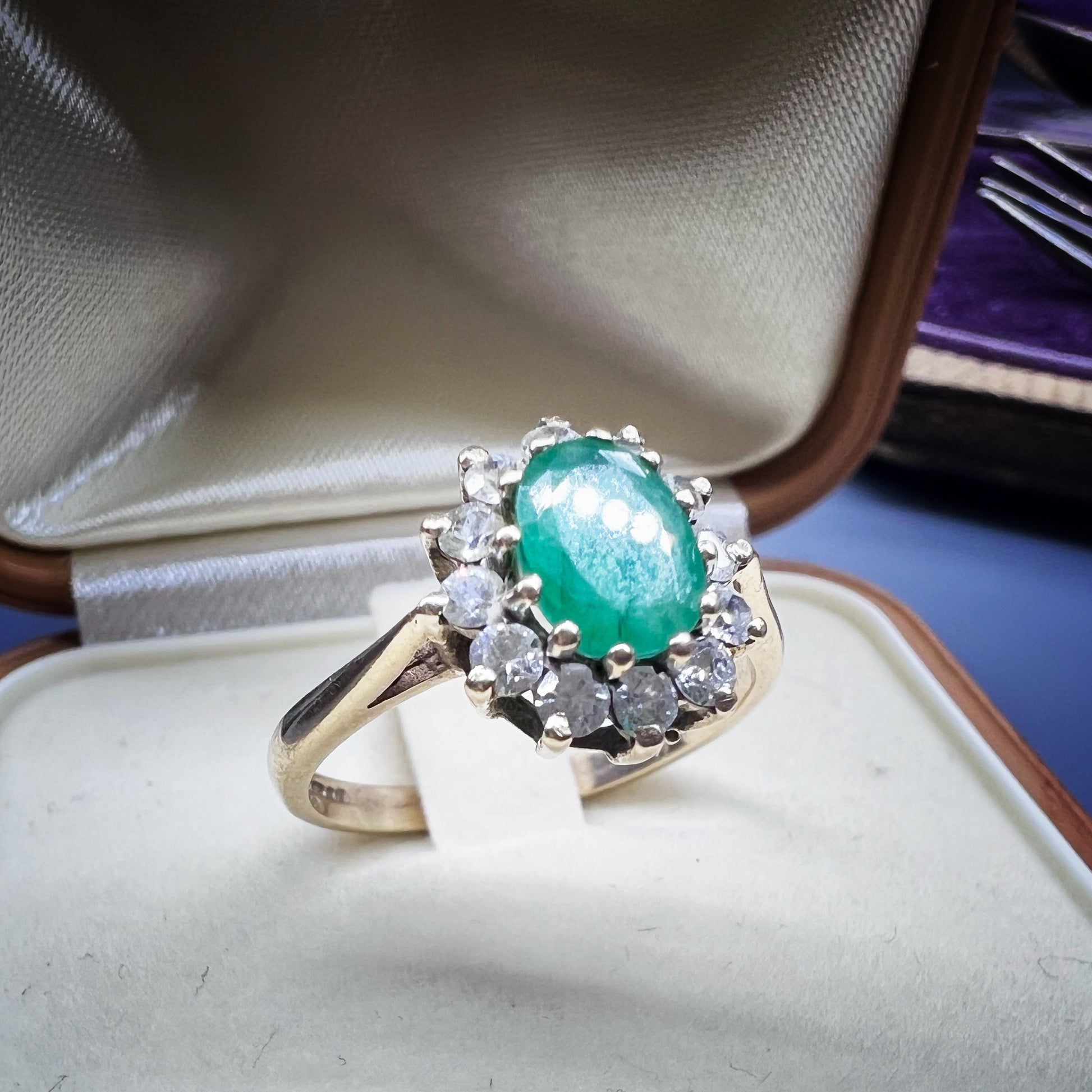Vintage-Goldring mit Gänseblümchen und Smaragd – Birmingham, 1984