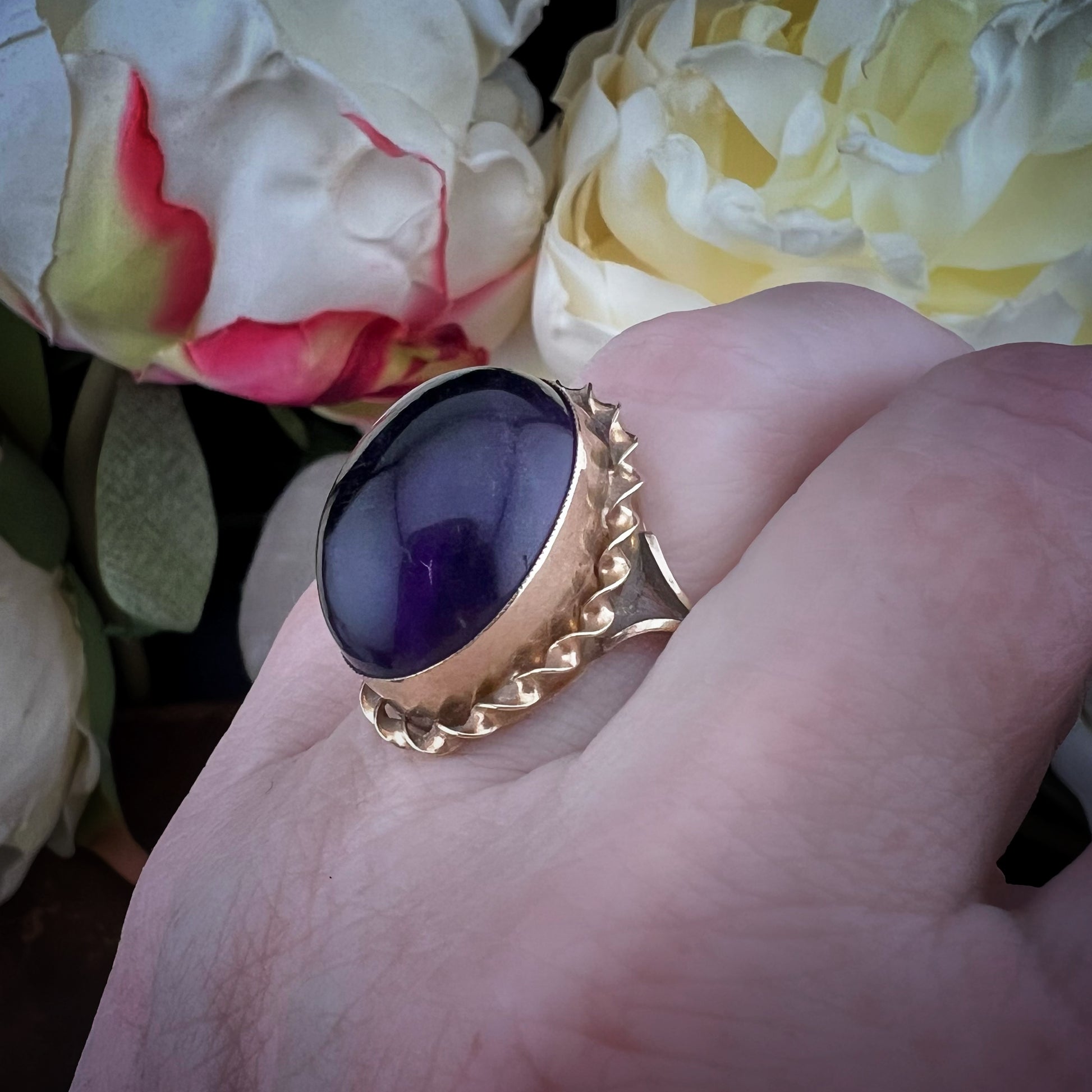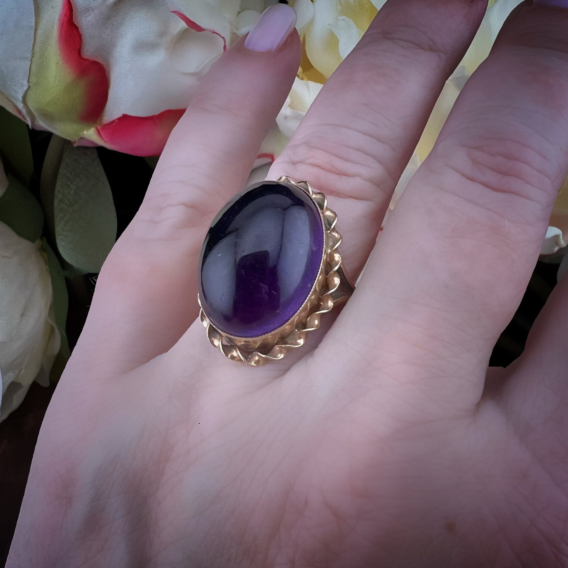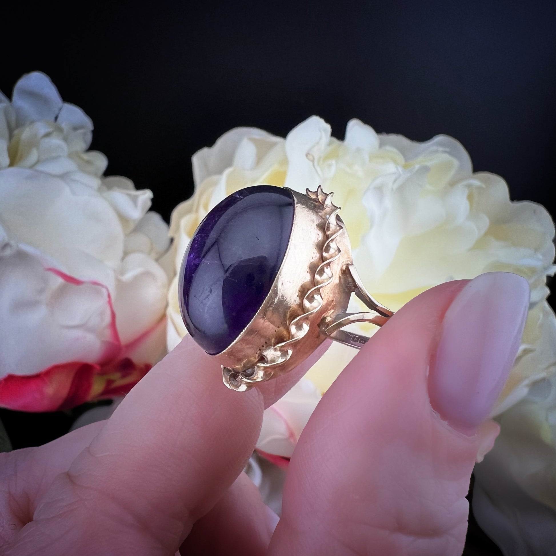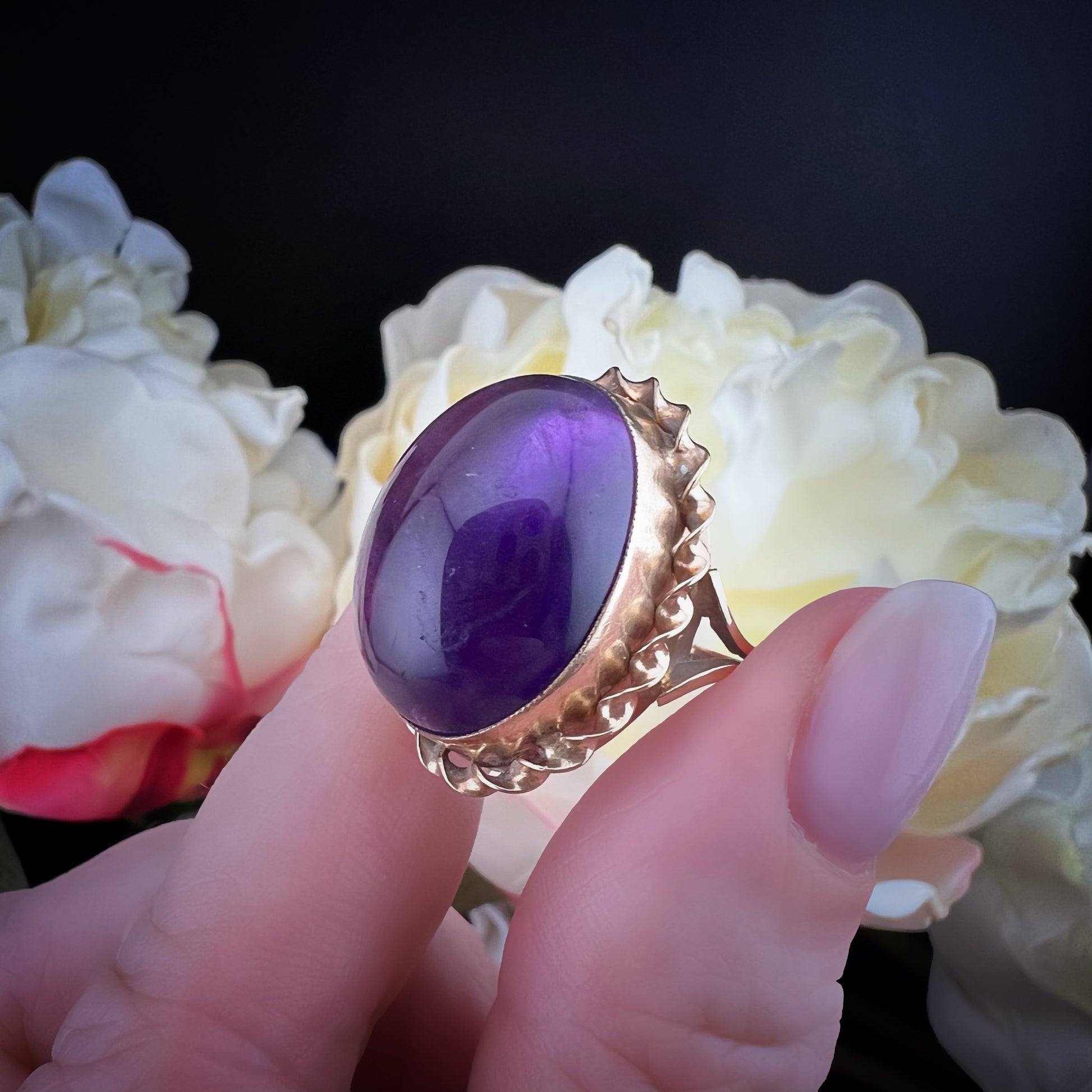 Vintage-Ring aus 9 Karat Gelbgold mit Amethyst-Cabochon – Birmingham, 1975