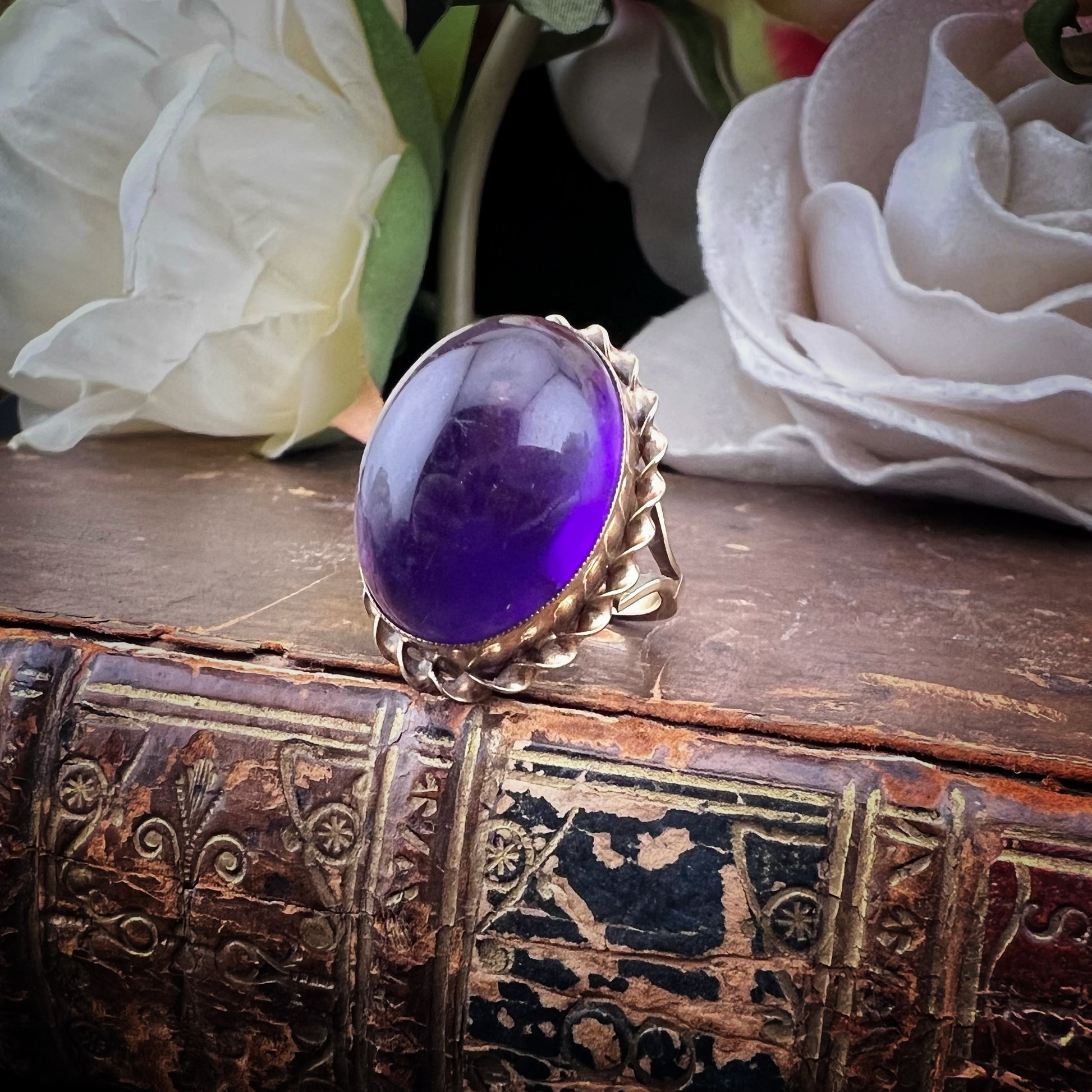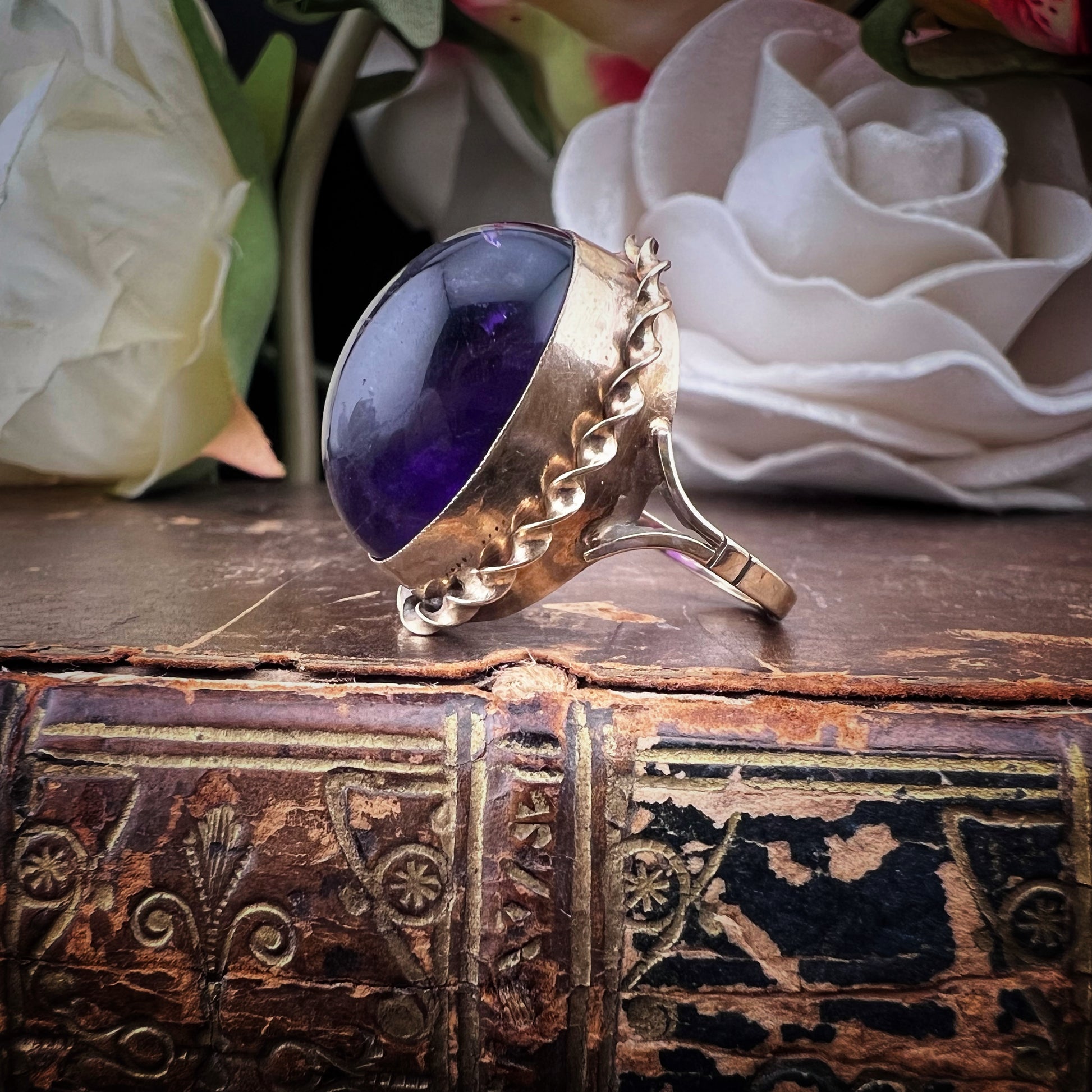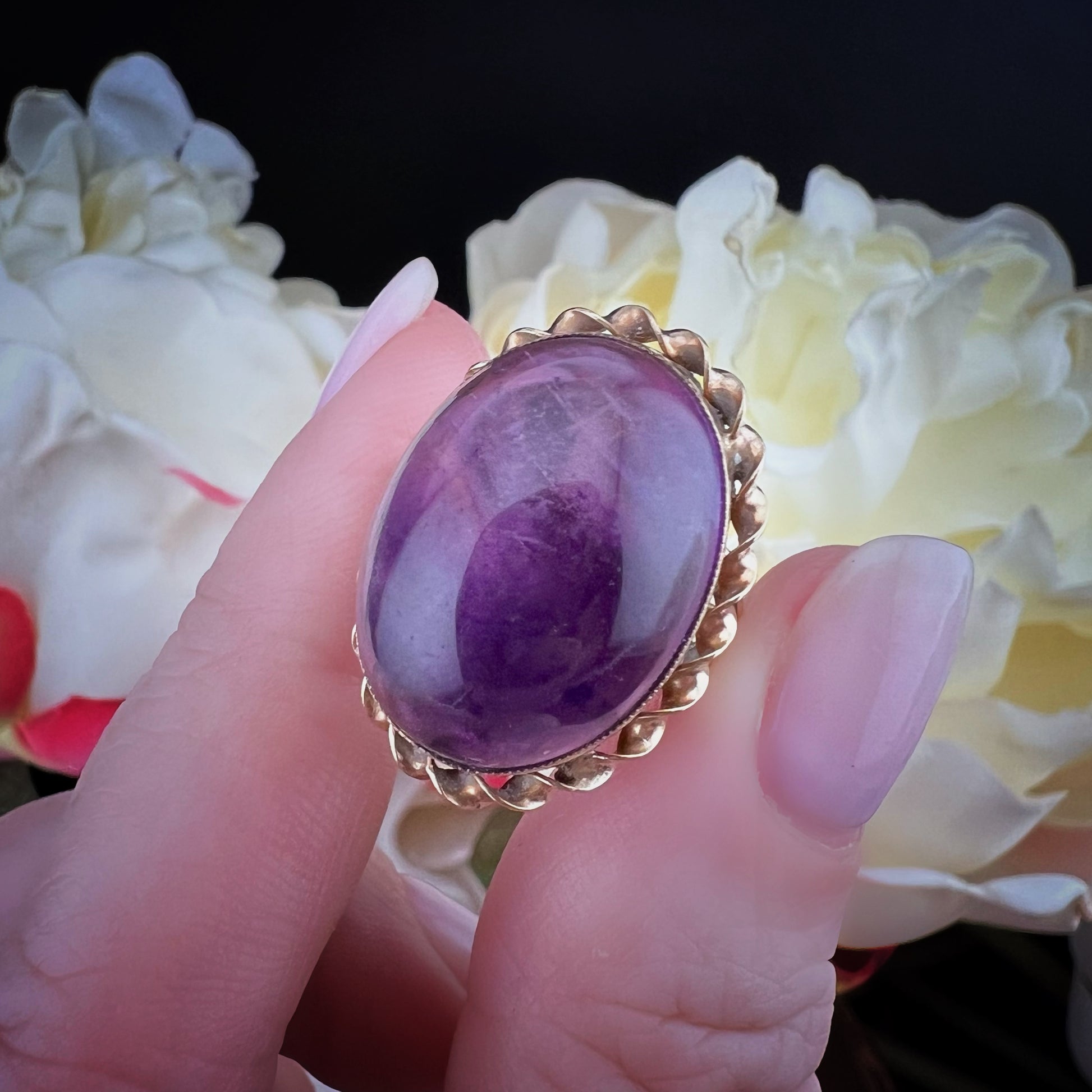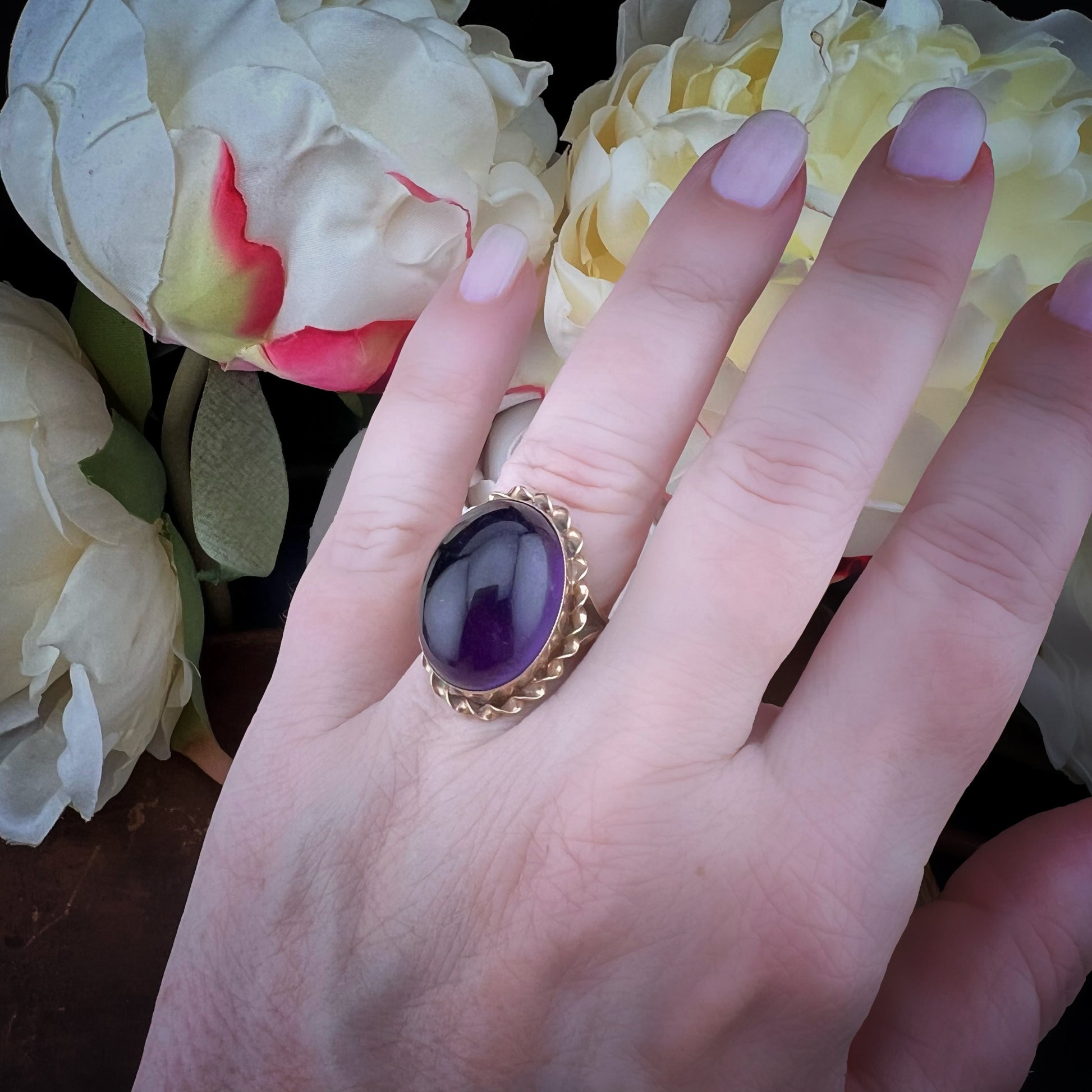 Vintage-Ring aus 9 Karat Gelbgold mit Amethyst-Cabochon – Birmingham, 1975