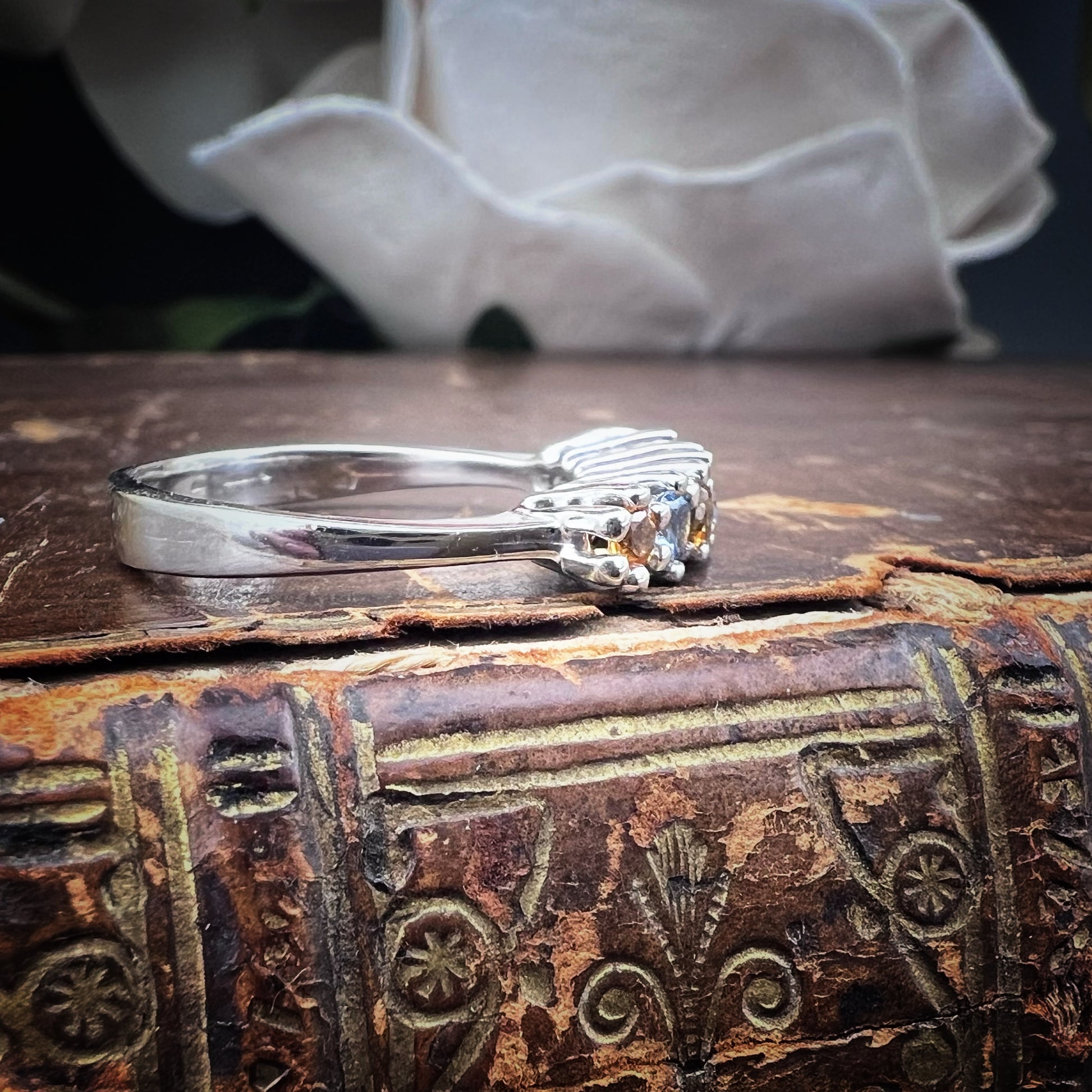 Vintage 18K Weißgold Ring mit blauem Topas und Madeira Citrin Quarz