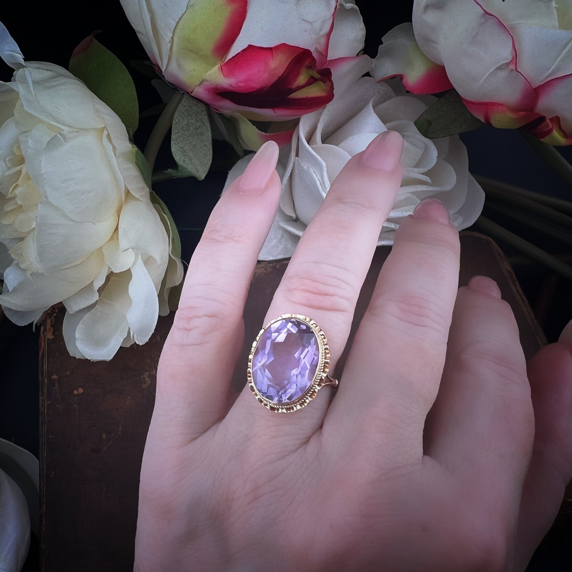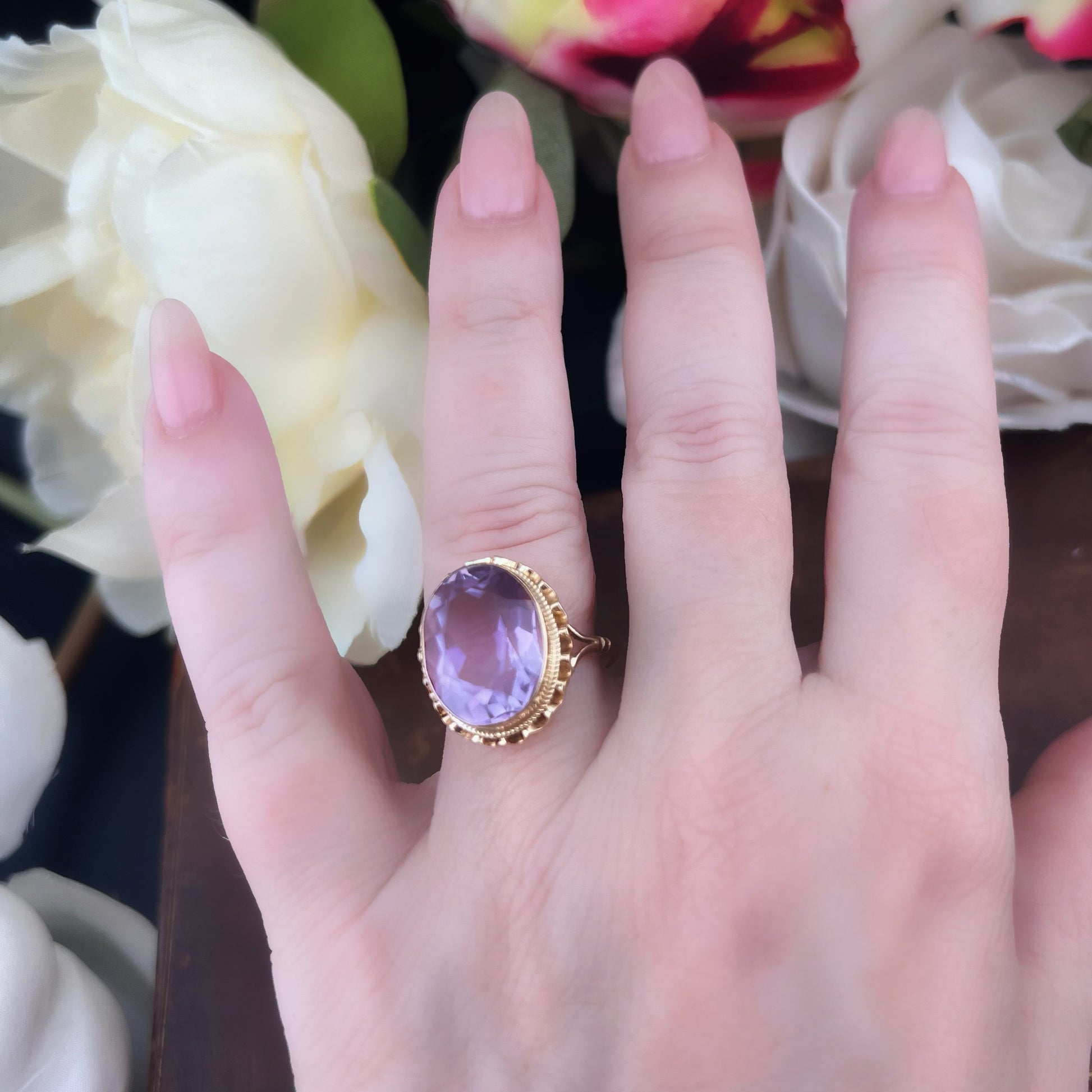 Vintage Gelbgoldring mit Amethyst
