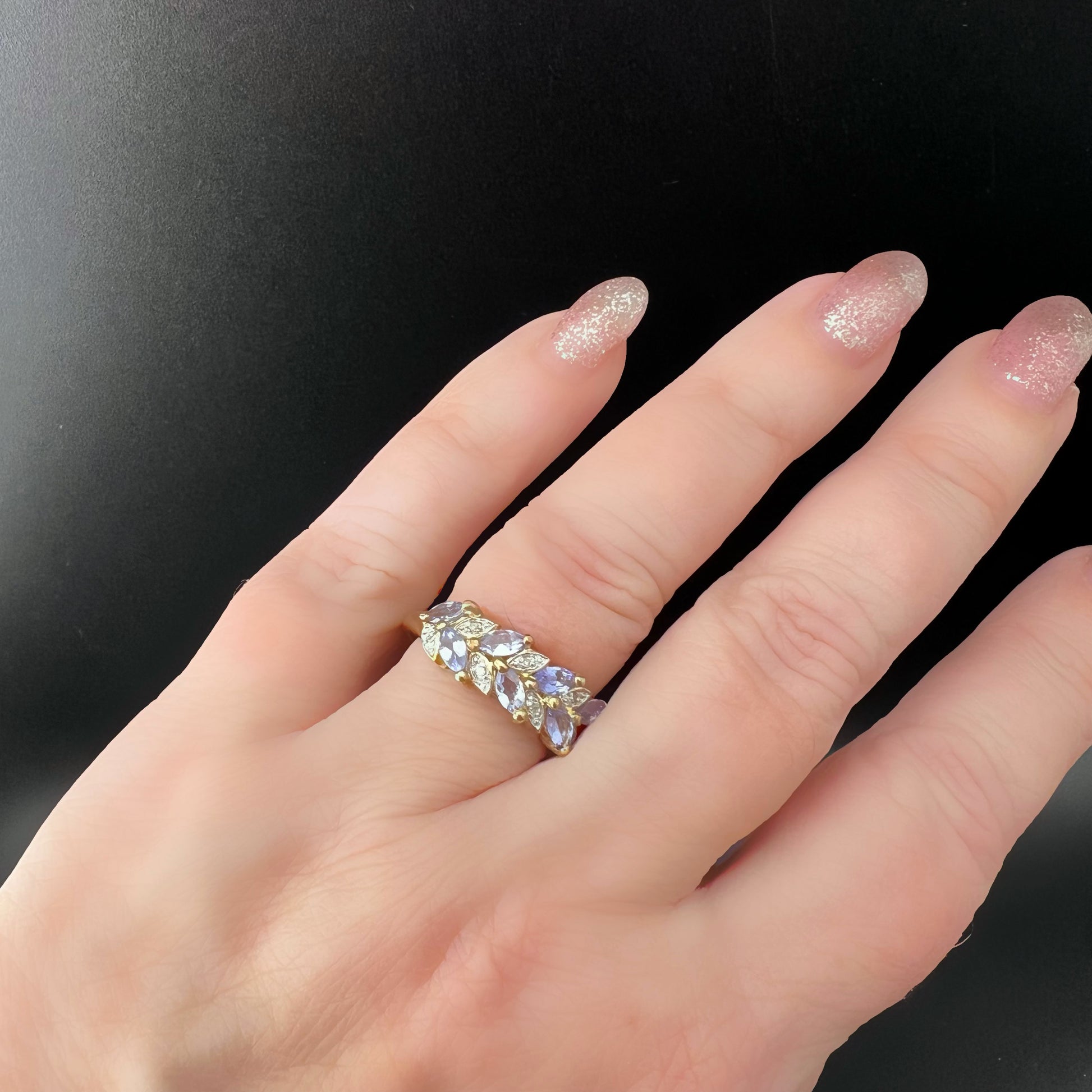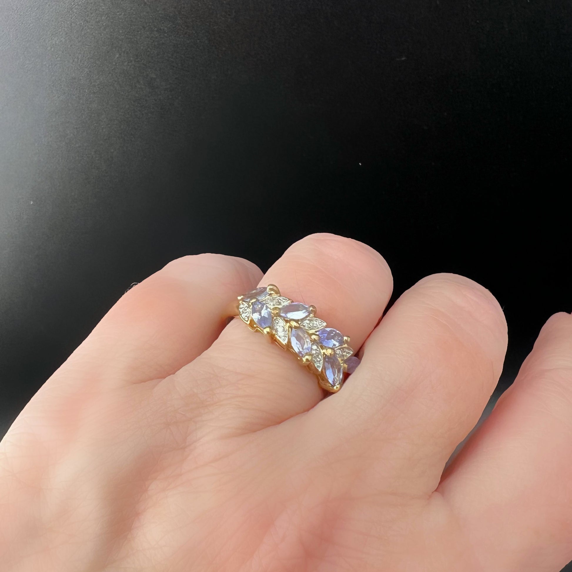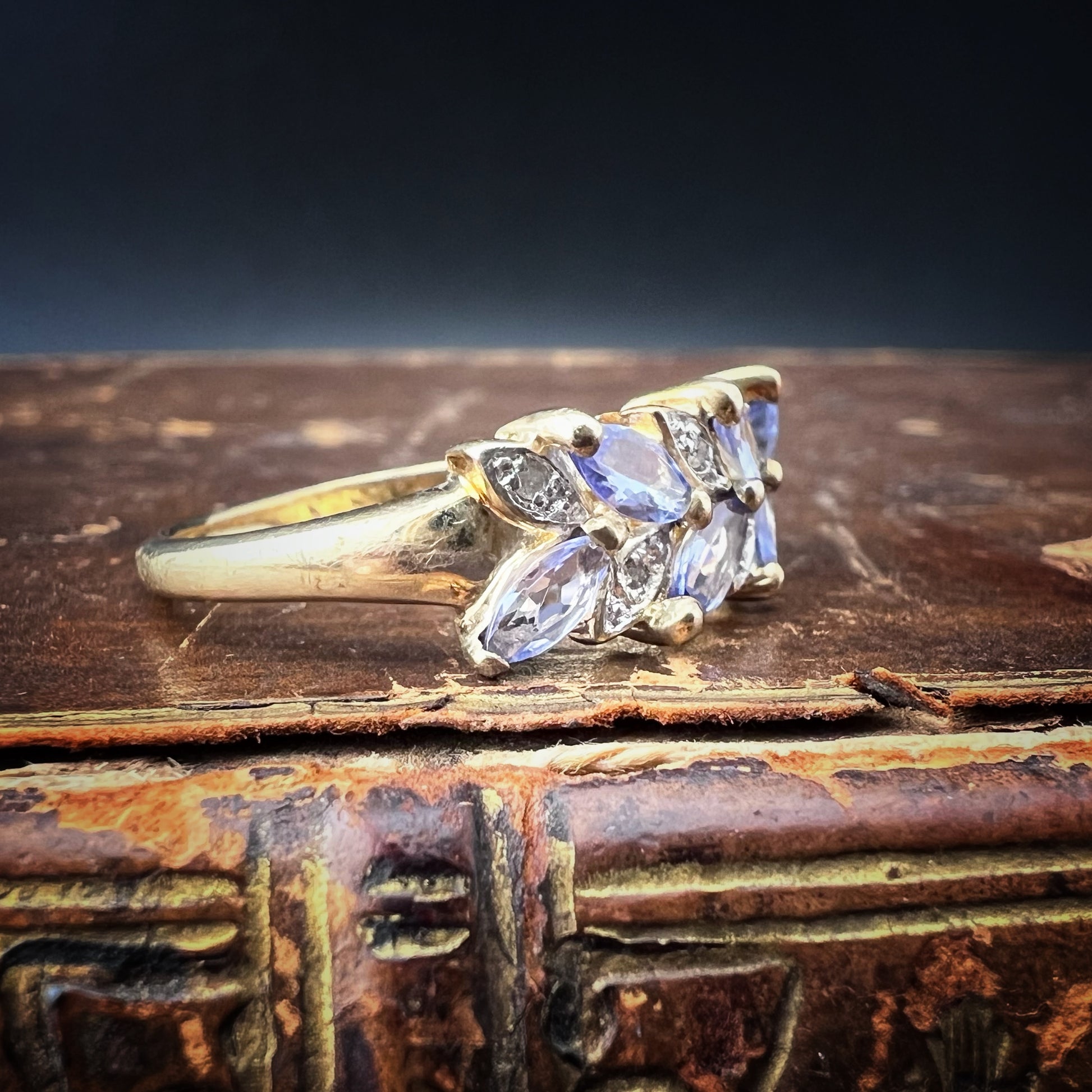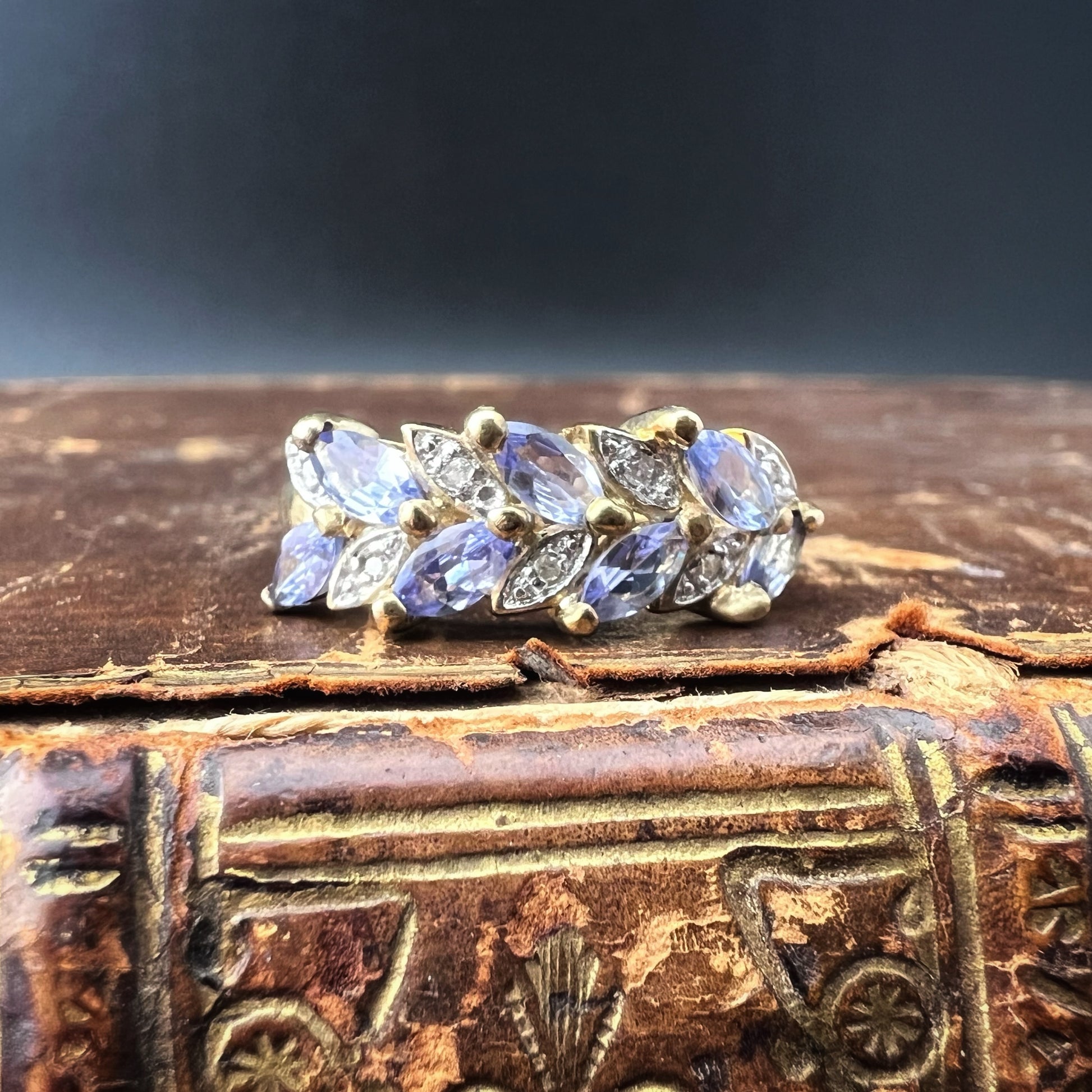 Englischer Vintage-Ring aus 9 Karat Gold mit Tansaniten und Diamanten