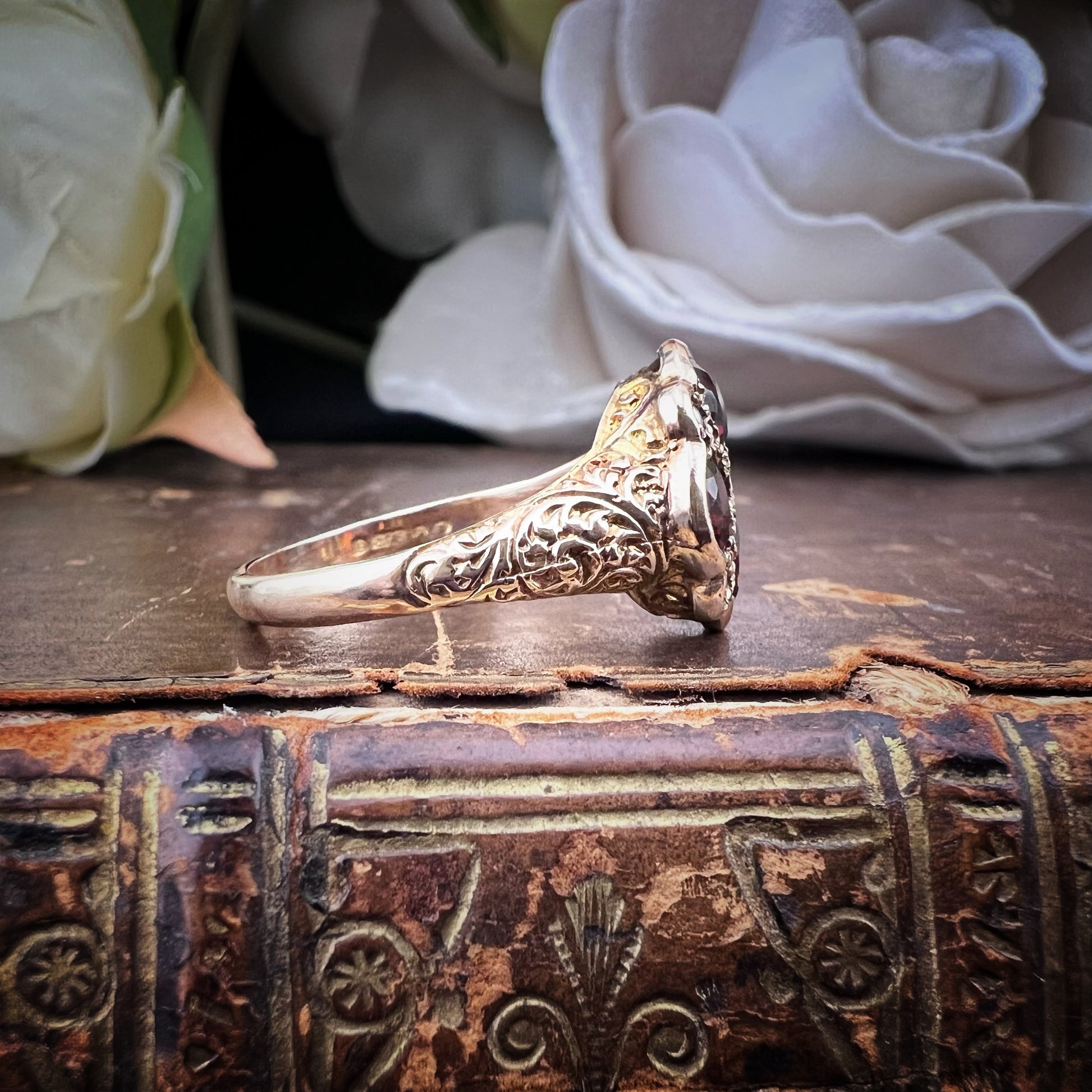 Dieser Ring ist das ideale Geschenk für alle, die den Vintage-Stil, die Romantik antiken Schmucks und den symbolischen Wert von Natursteinen lieben. Ein hervorragendes Geschenk zum Jahrestag, Geburtstag oder zu einem besonderen Anlass. Es ist ein Schmuckstück, das eine Geschichte erzählt und noch viele weitere zu erzählen hat.