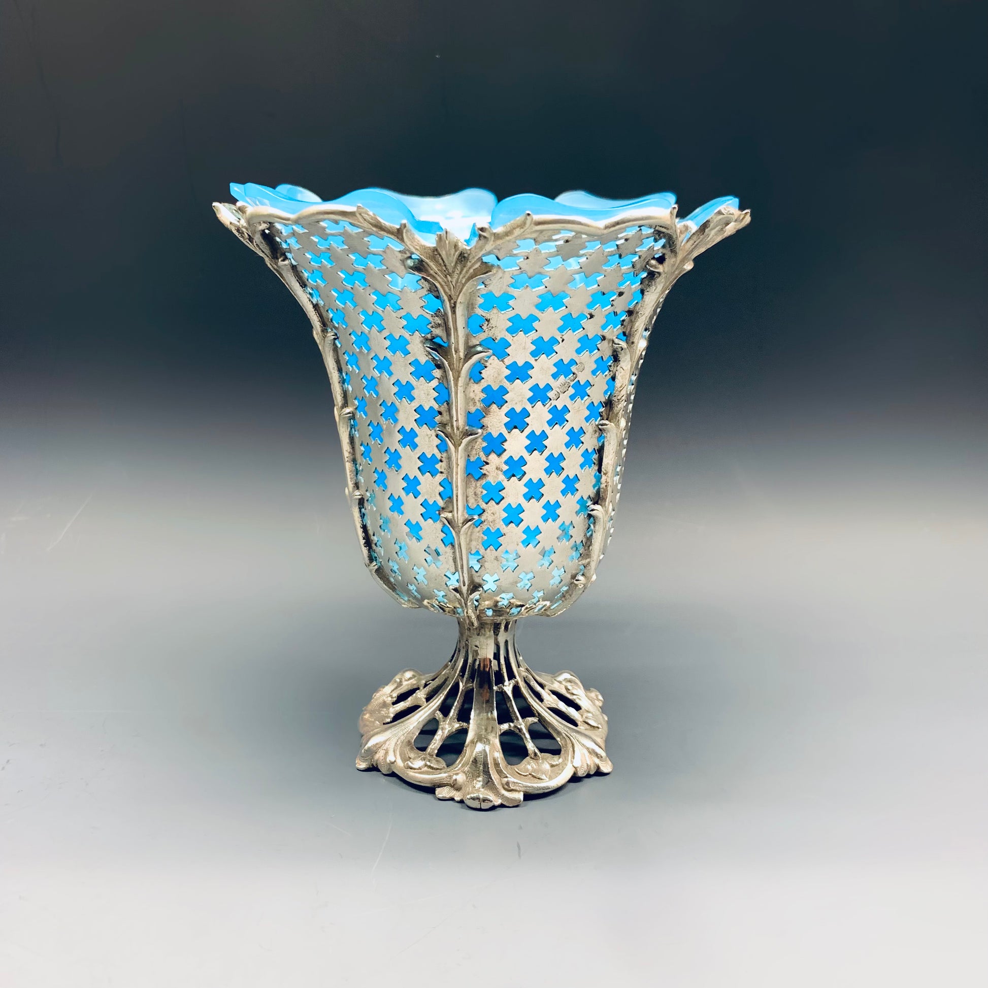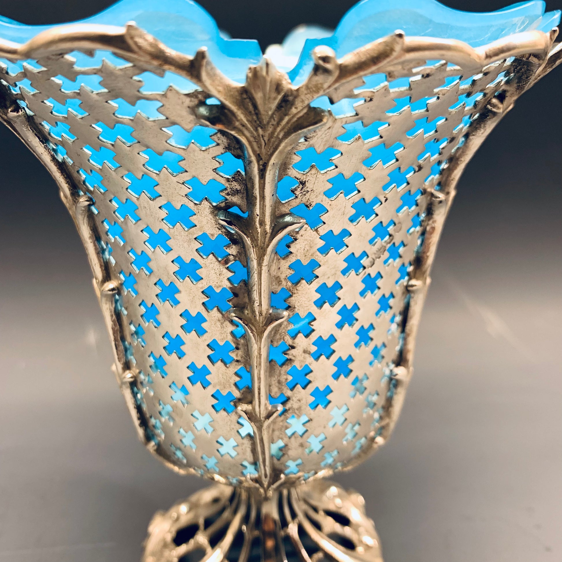 Antike Vase aus Sheffield- und blauem Kristall, ca. 1890