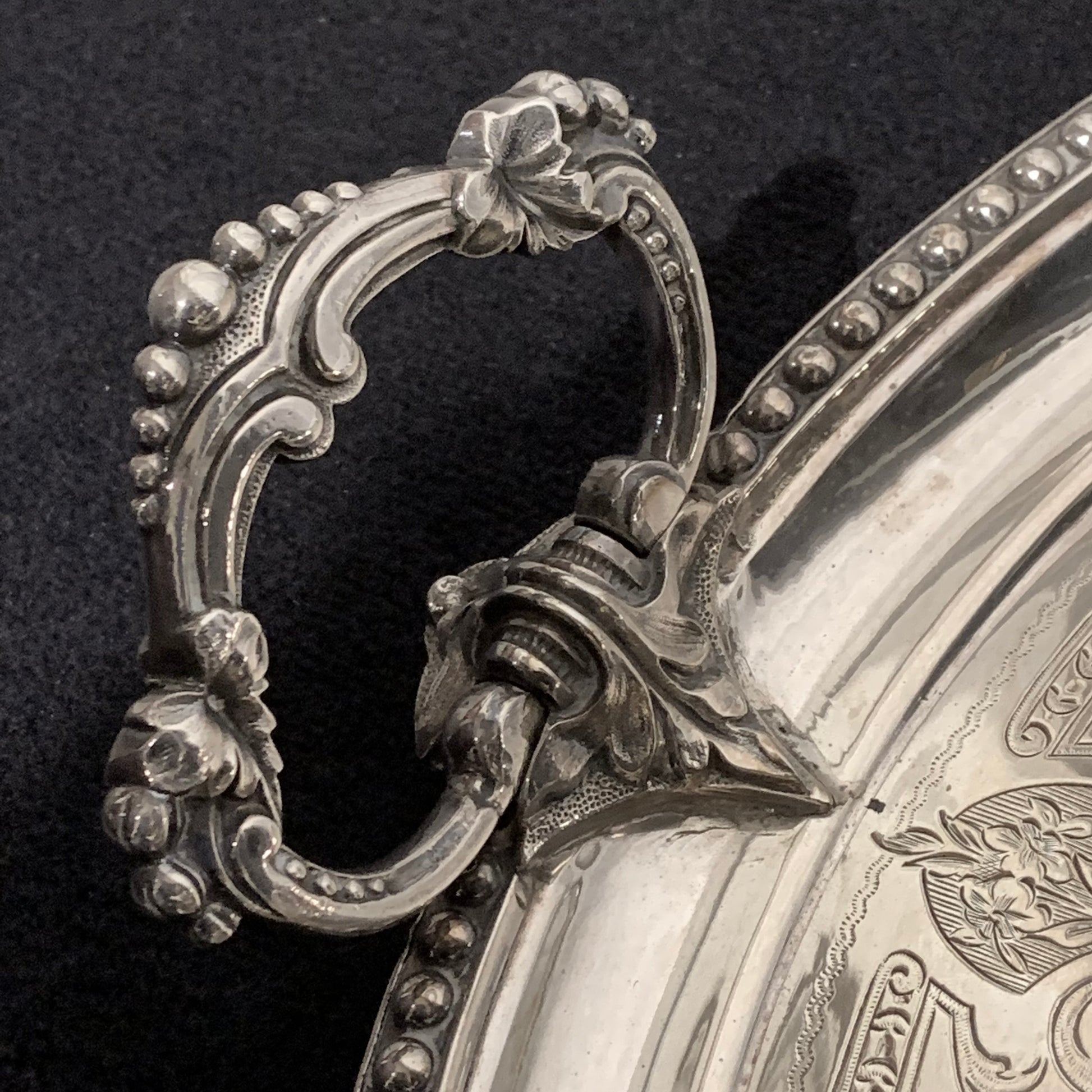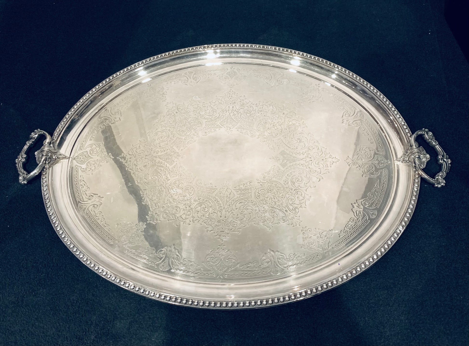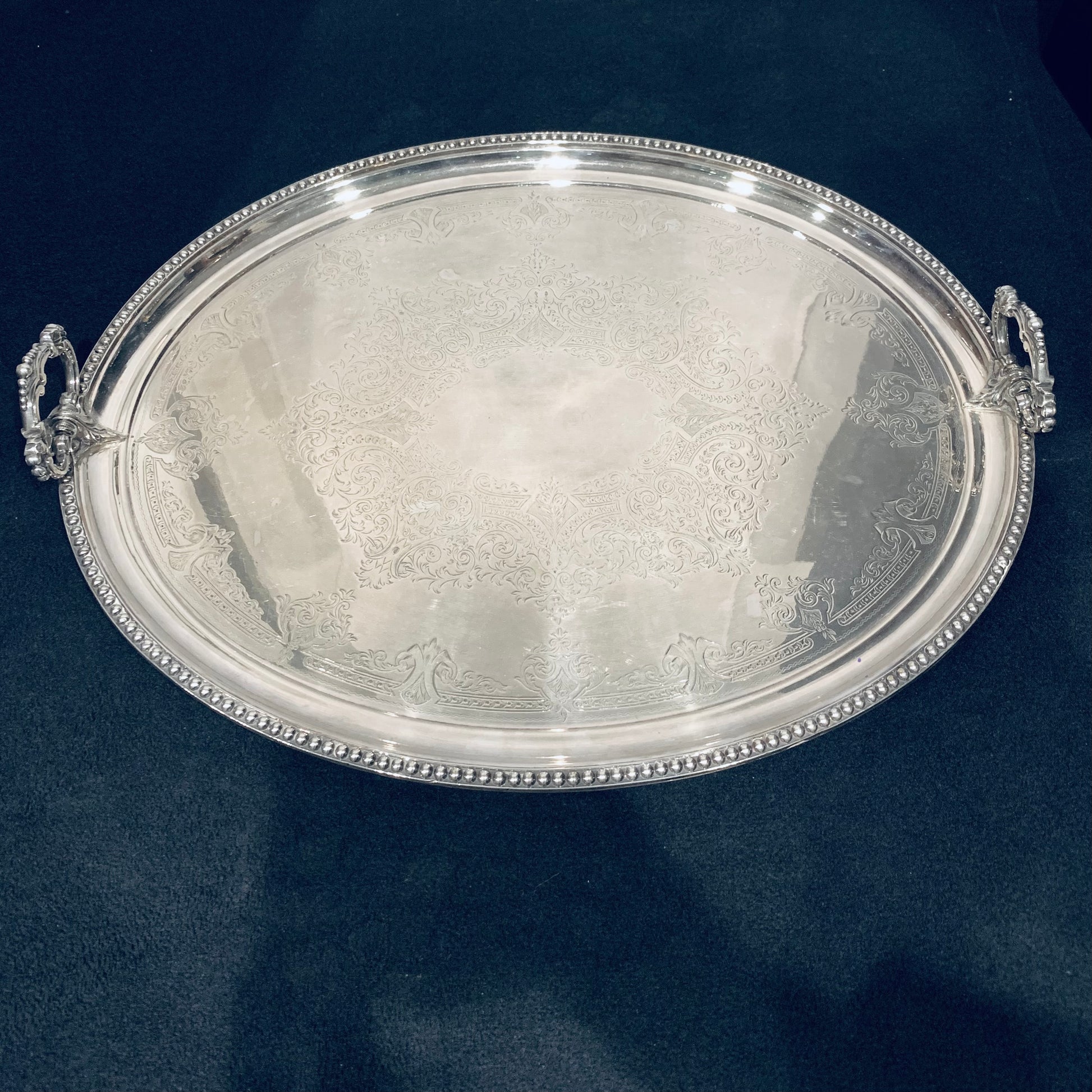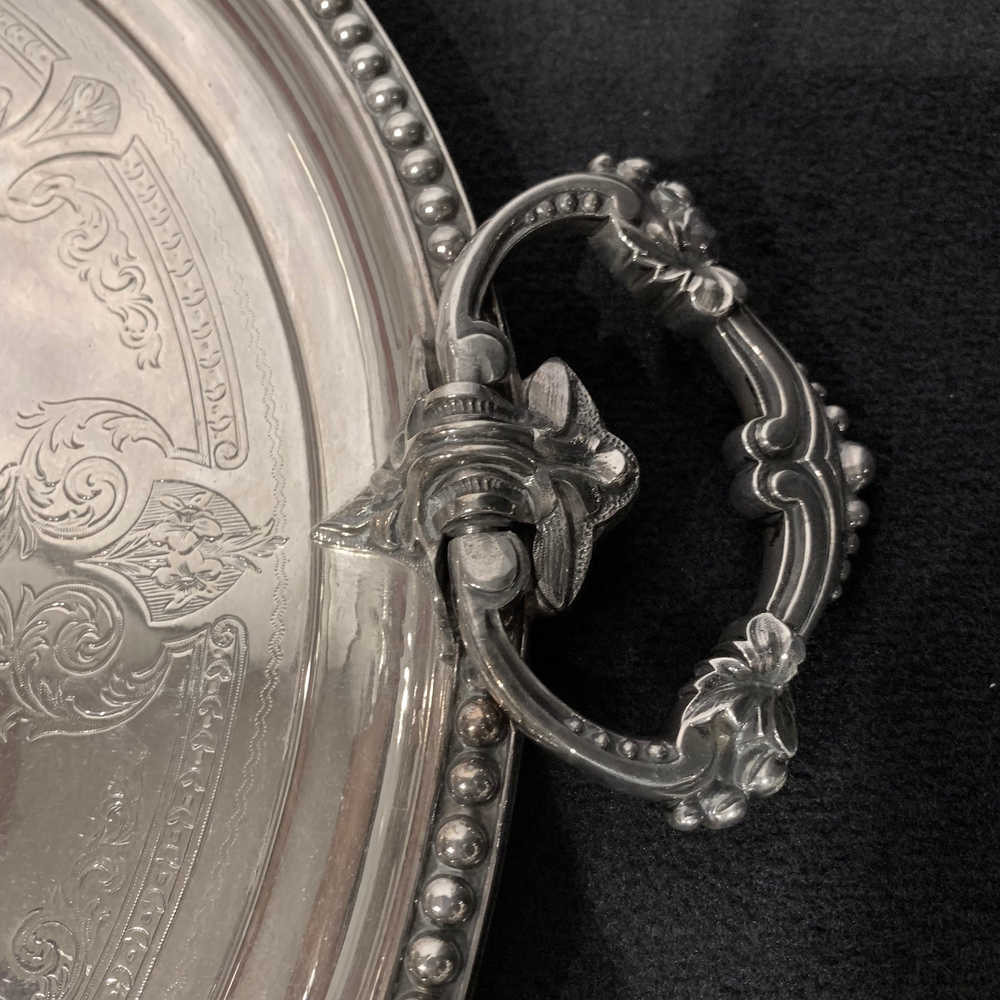 Antikes viktorianisches Sheffield-Tablett mit Klappgriffen.
