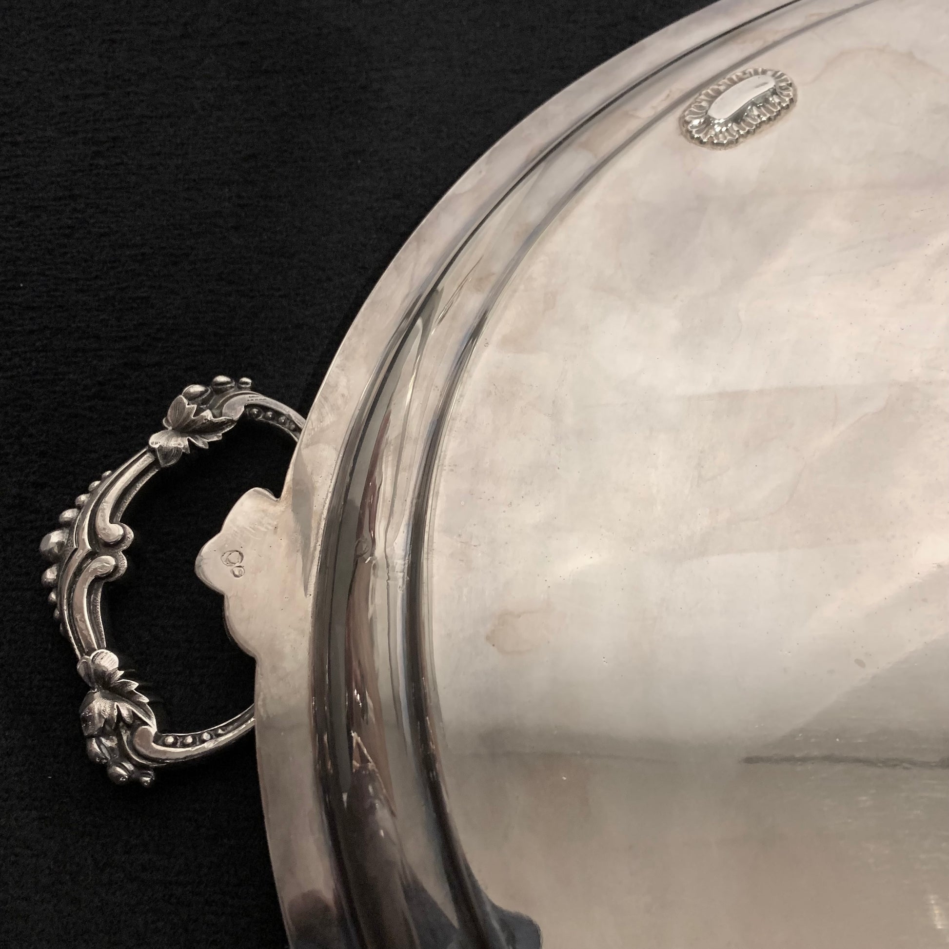 Antikes und seltenes Sheffield-Tellertablett mit speziellen Gelenkgriffen, die es den beiden Kellnern an den Seiten erleichtern, die Teller zu tragen.