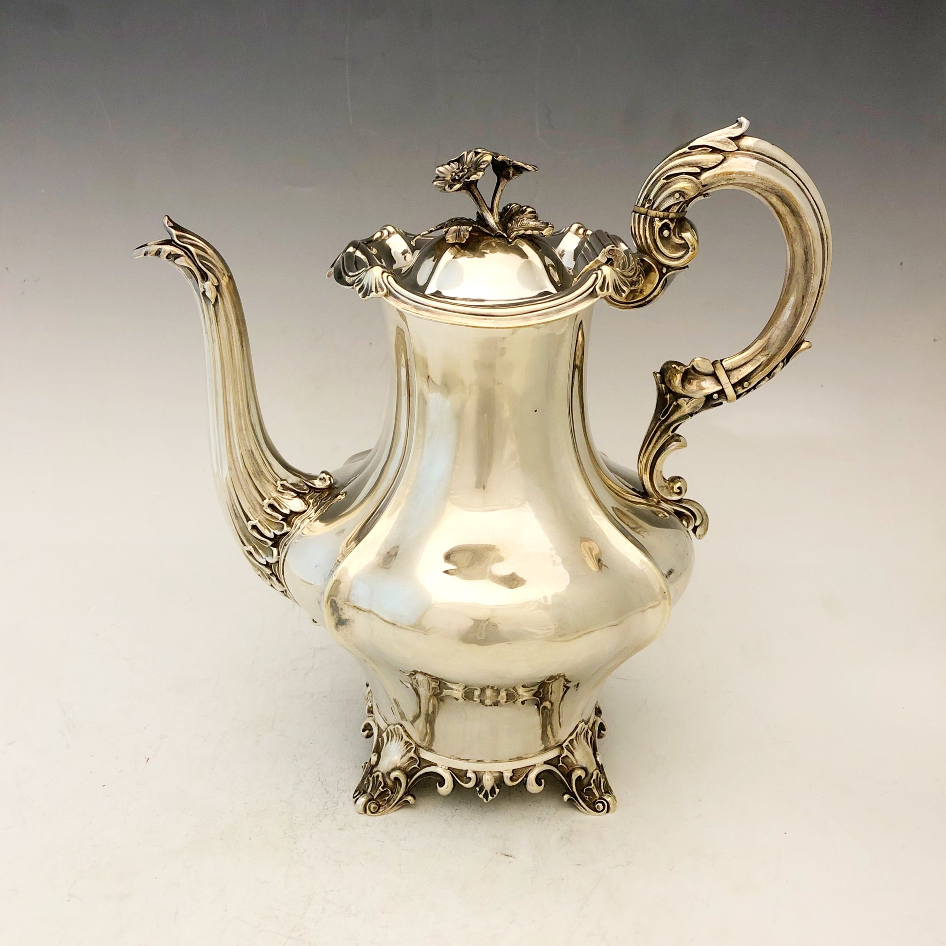 Viktorianische silberne Kaffeekanne, signiert von Charles Reily & George Storer, London 1843