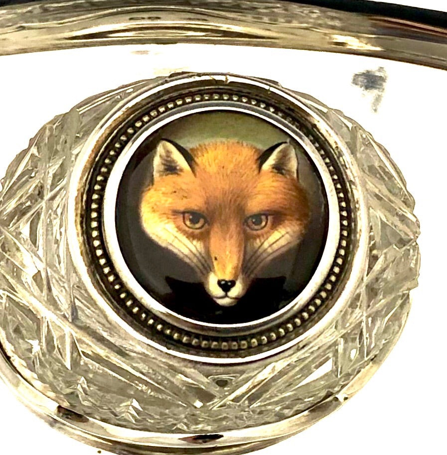 Seltenes Tintenfass mit Emailmalerei eines Fuchskopfes.