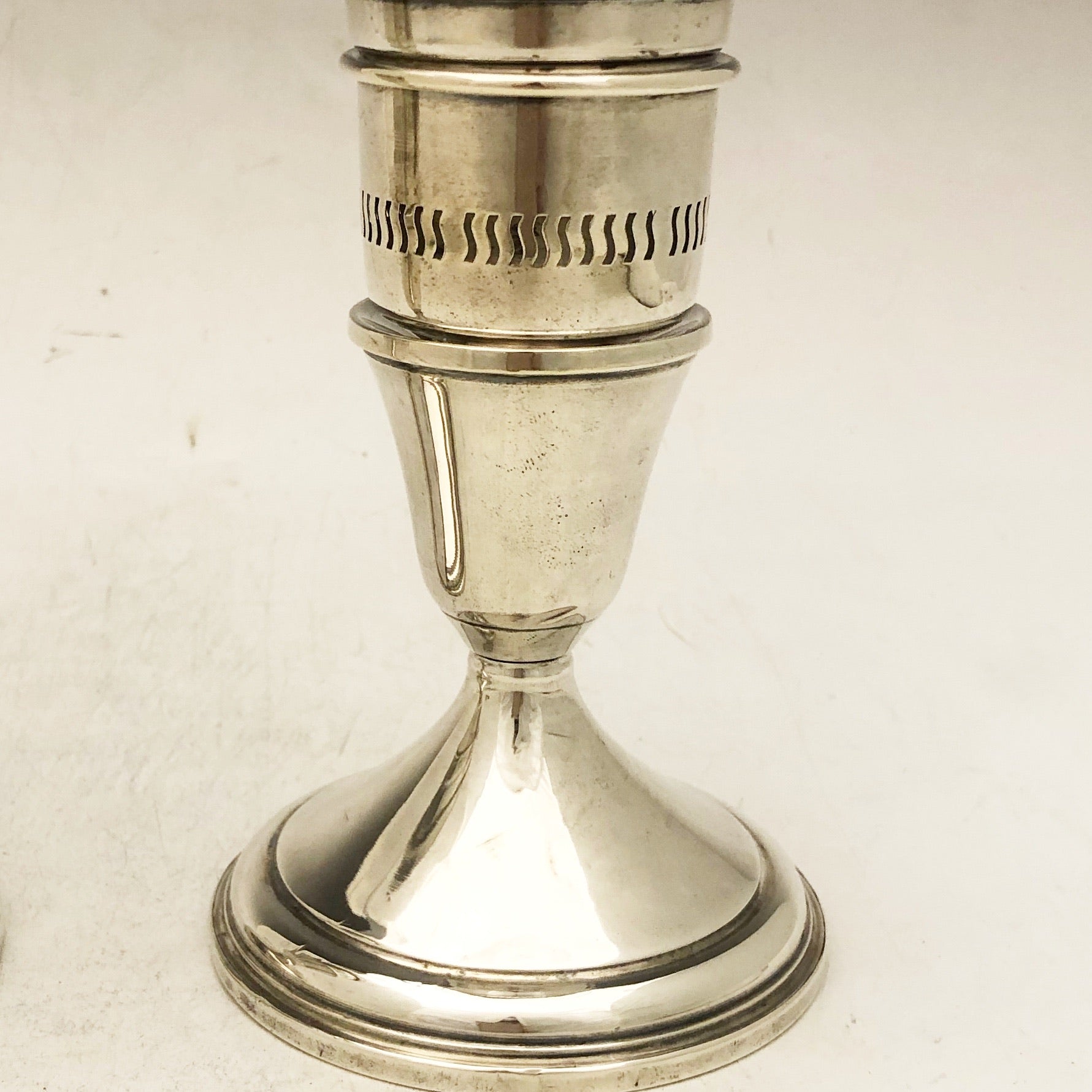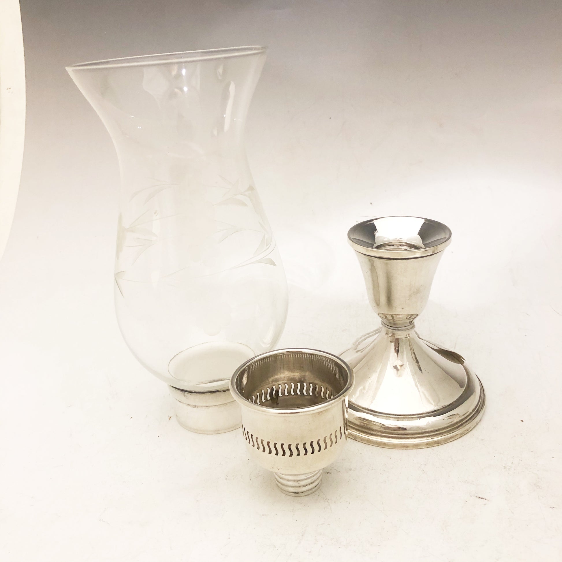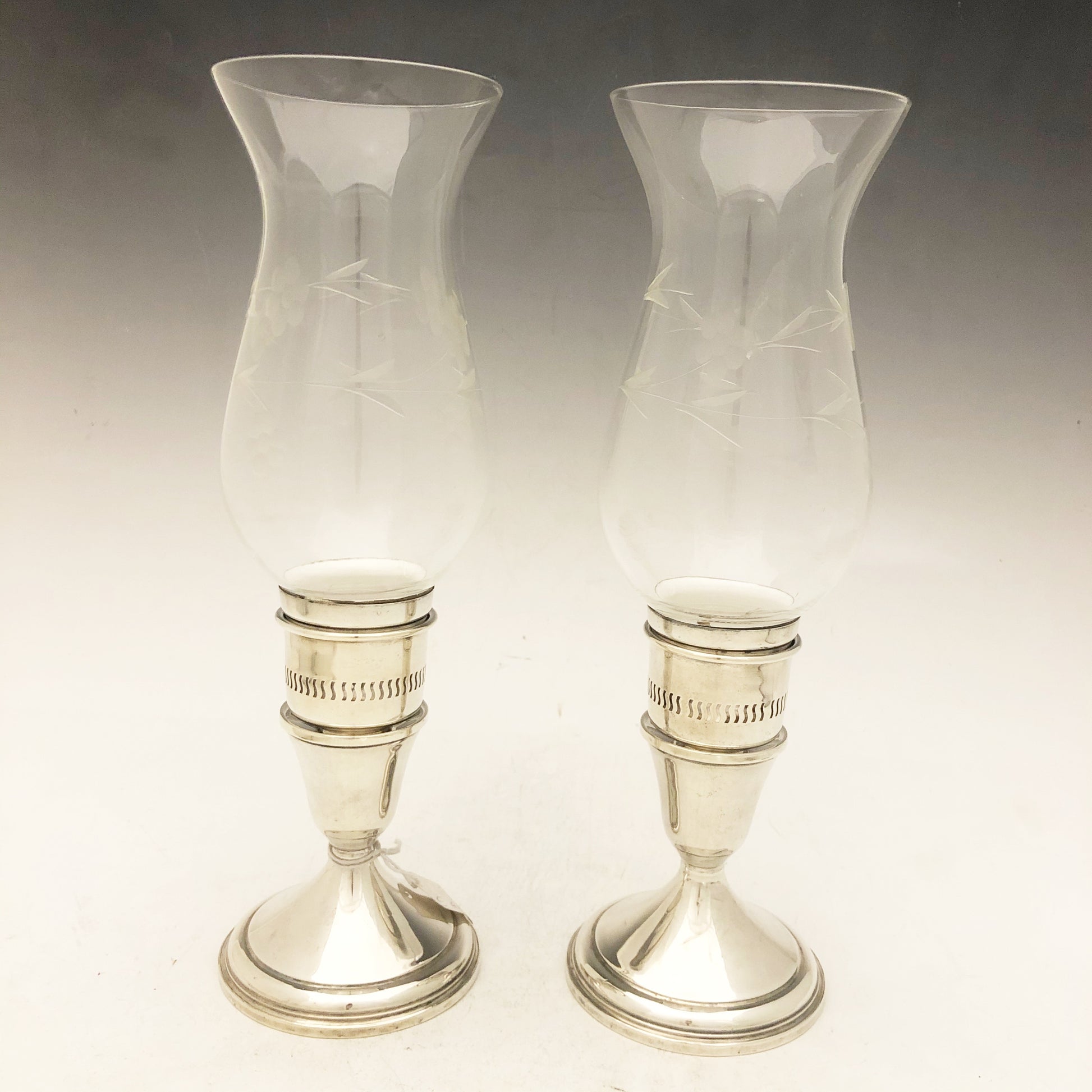 Paar Hurricane-Kerzenleuchter aus Sterlingsilber und geschliffenem Kristall