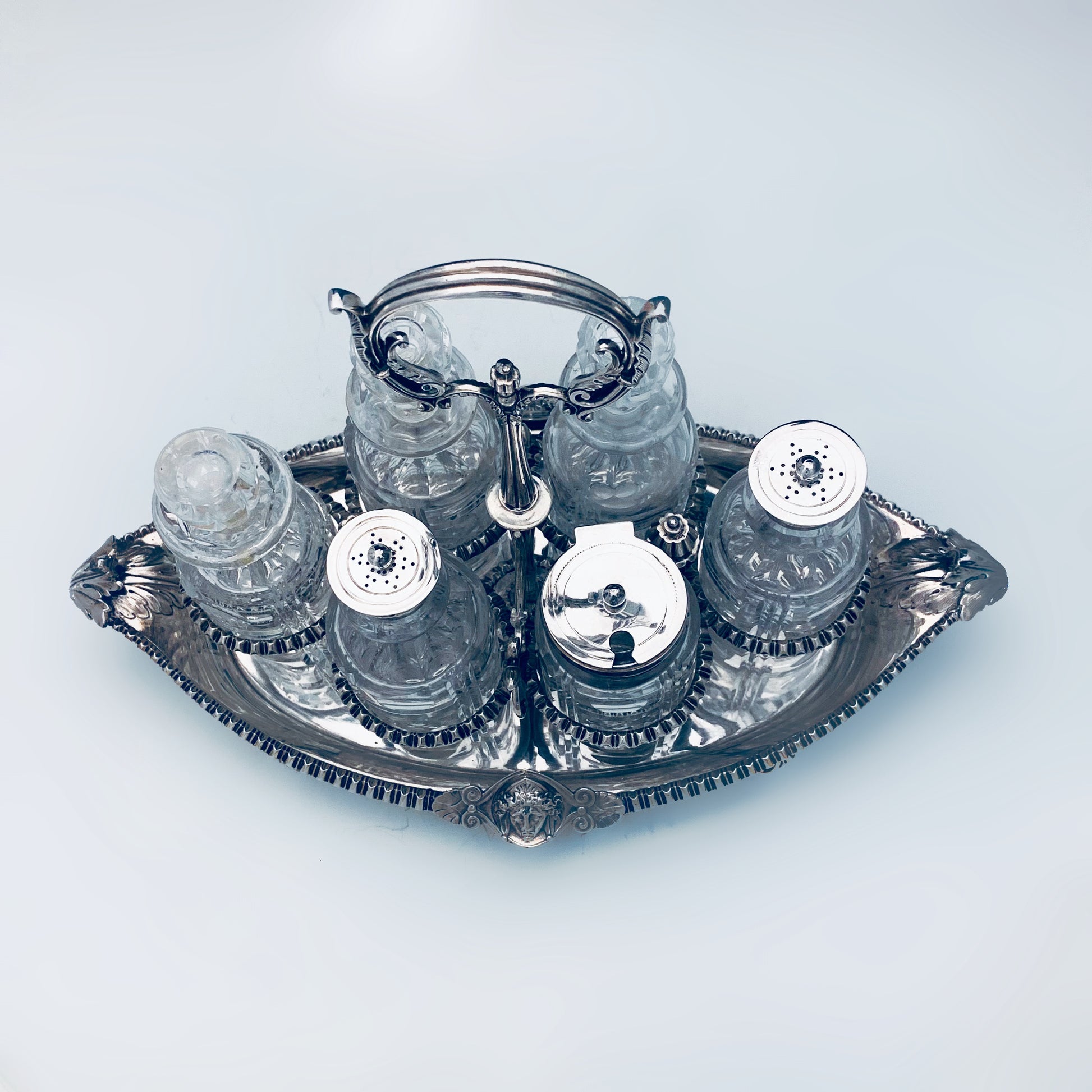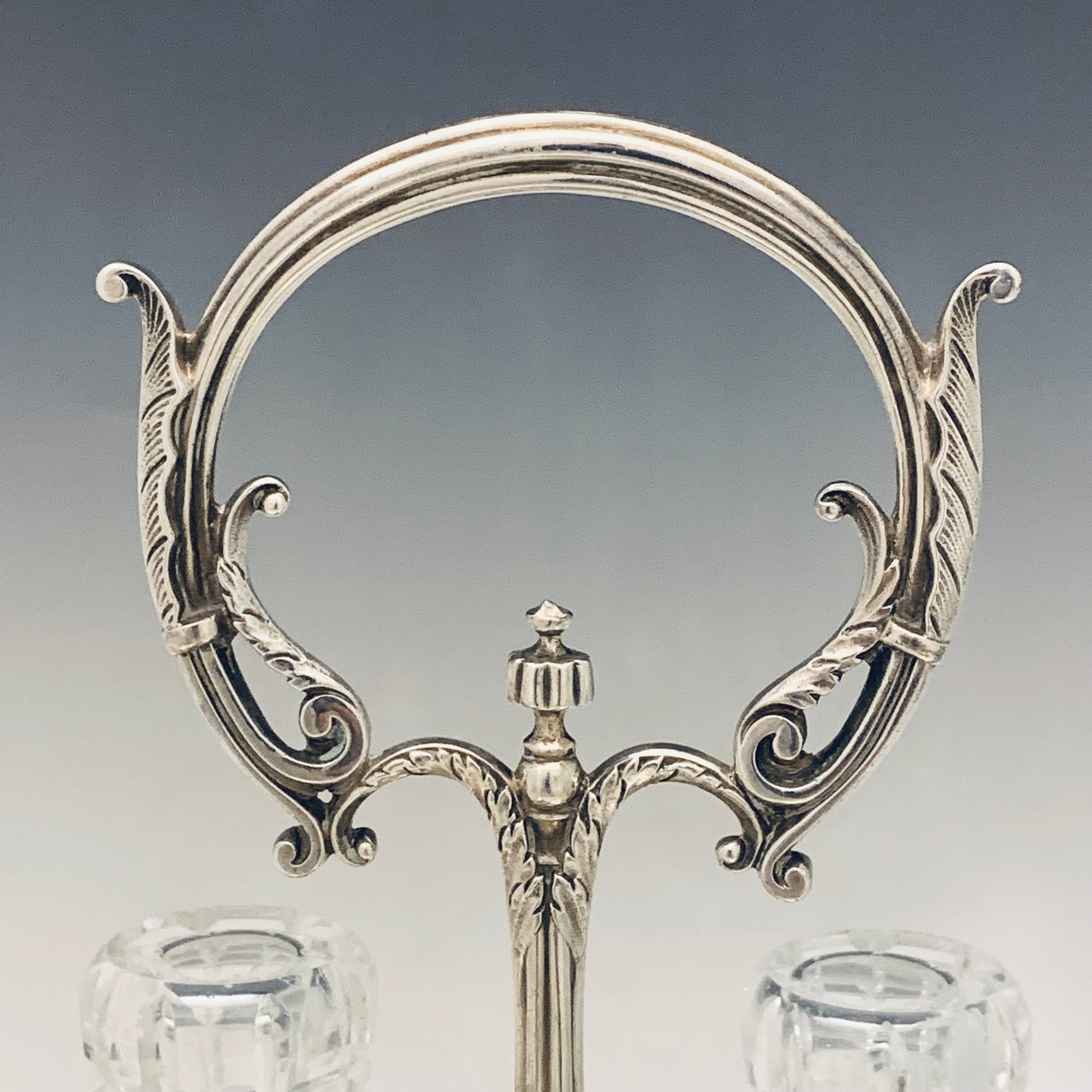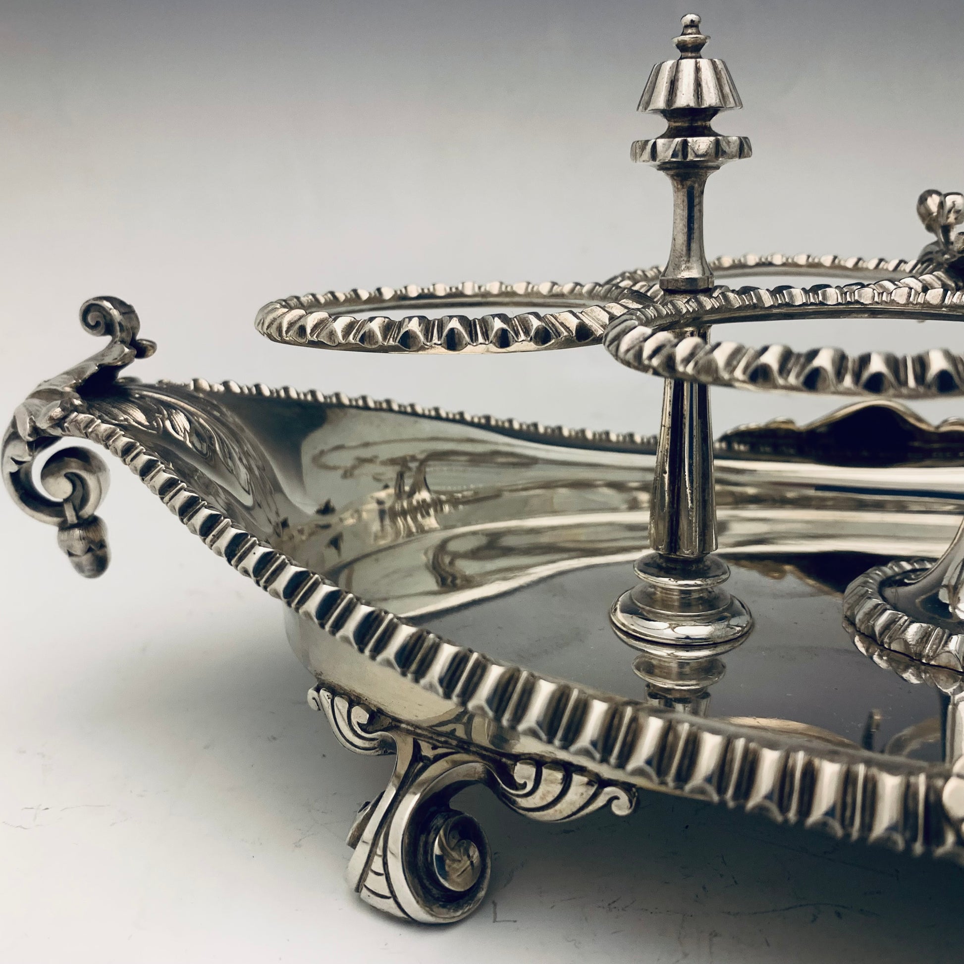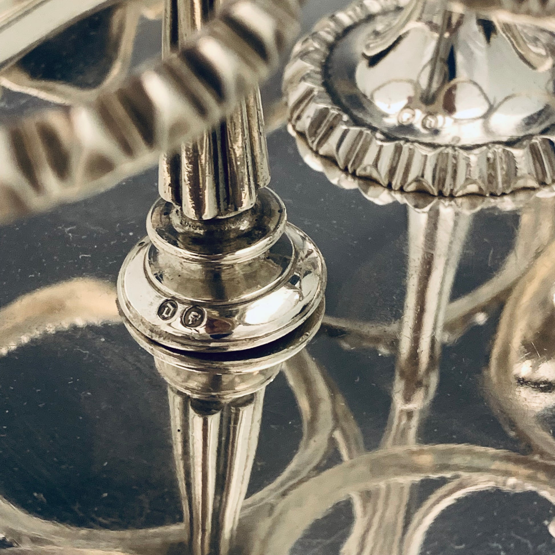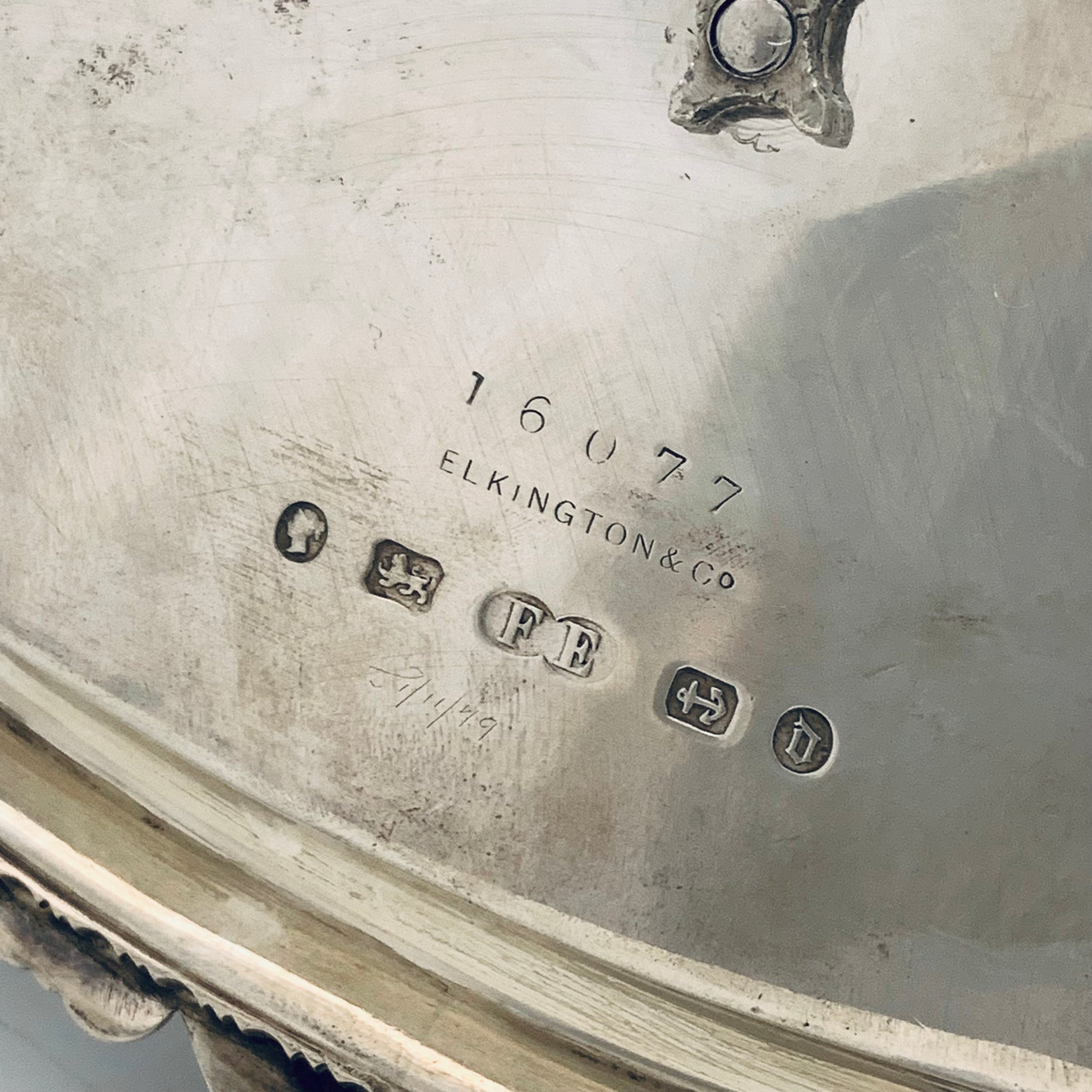 Jedes Stück trägt das Herstellerzeichen von Frederick Elkington und einen Londoner Punzierungsstempel von 1854.