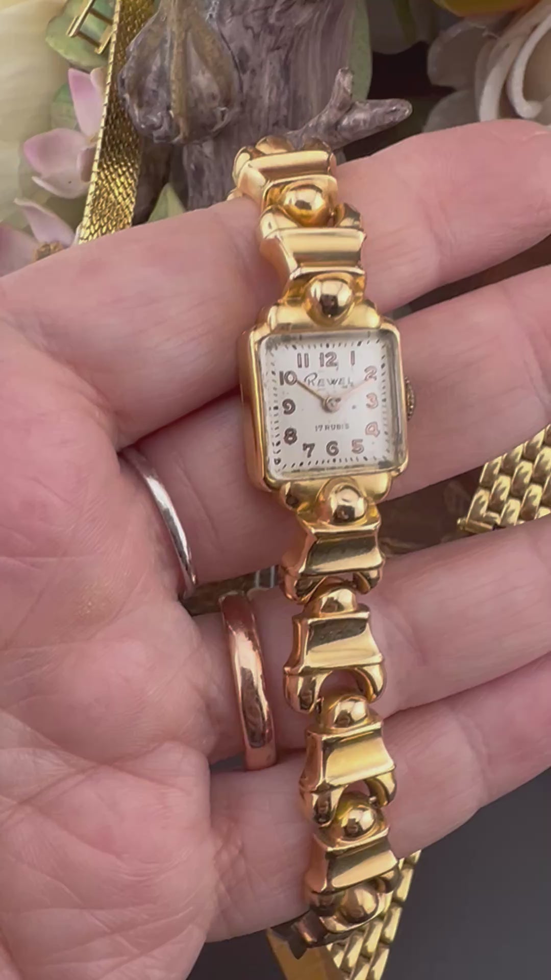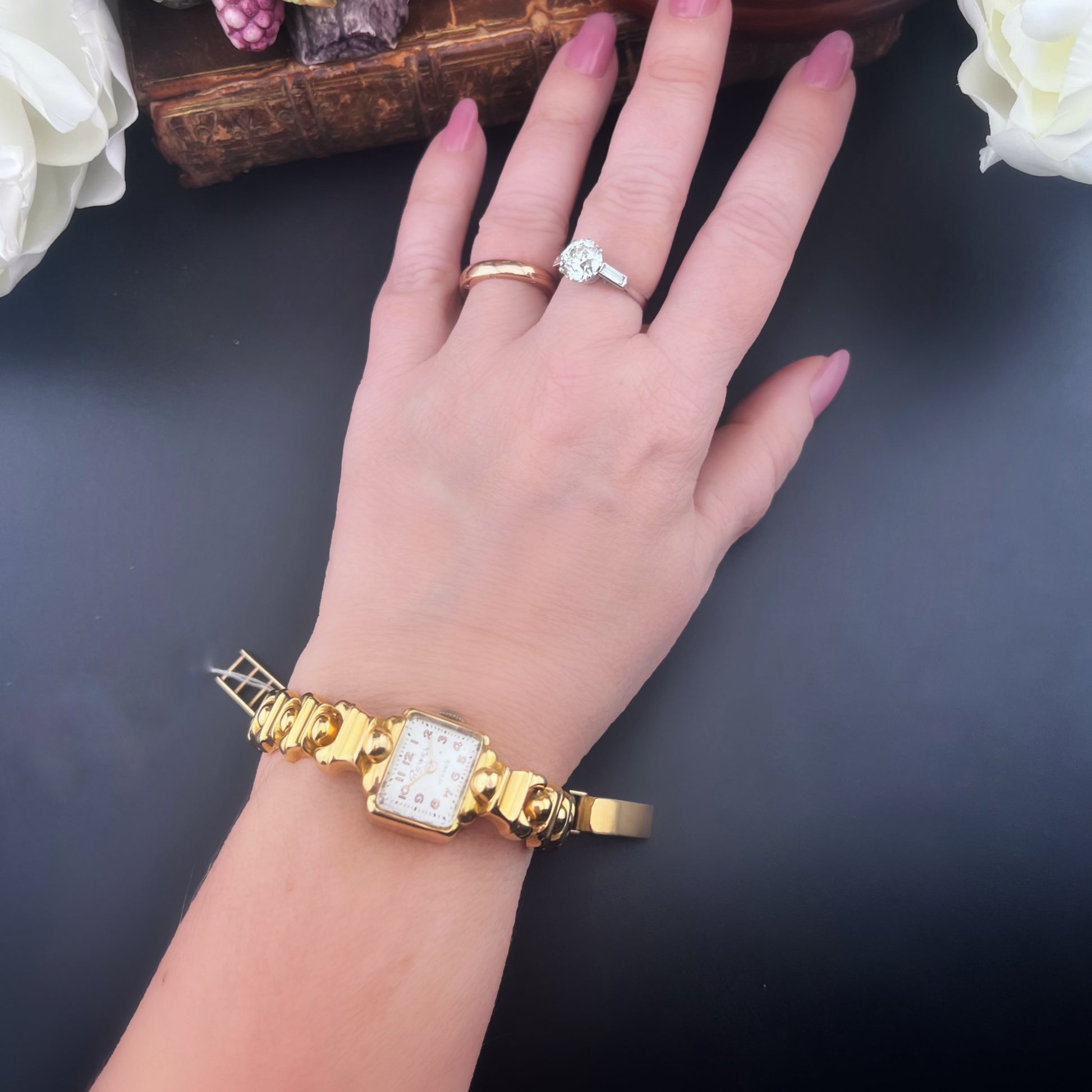Schmuckuhr aus den 1940er Jahren mit entzückendem 18-karätigem Gelbgold-Armband mit beweglichen Gliedern.