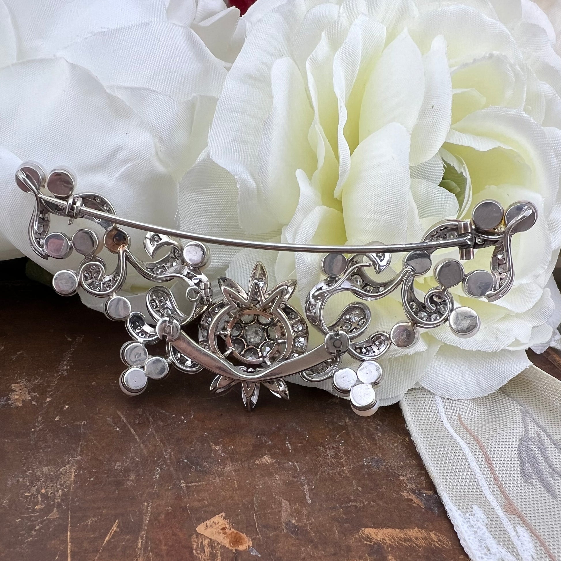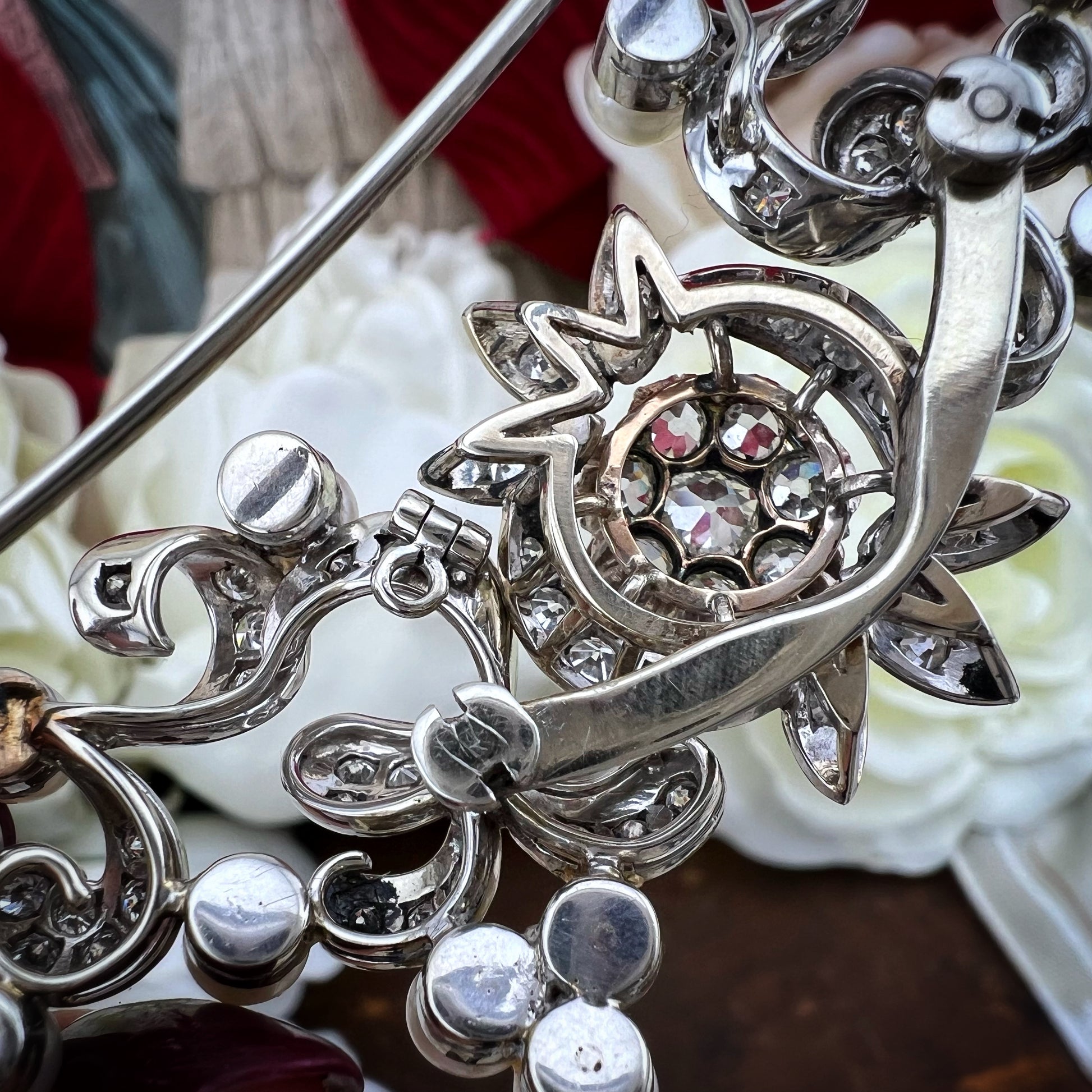 Raro gioiello smontabile e convertibile europeo degli anni ‘30, realizzato con raffinata manifattura orafa e concepito per un utilizzo molteplice: spilla, collana con pendente intero o piccolo, diadema o fermacapelli. Un esempio di straordinaria eleganza e versatilità, capace di interpretare il gusto sofisticato dell’alta gioielleria tra gli anni Trenta e Quaranta del XX secolo.
