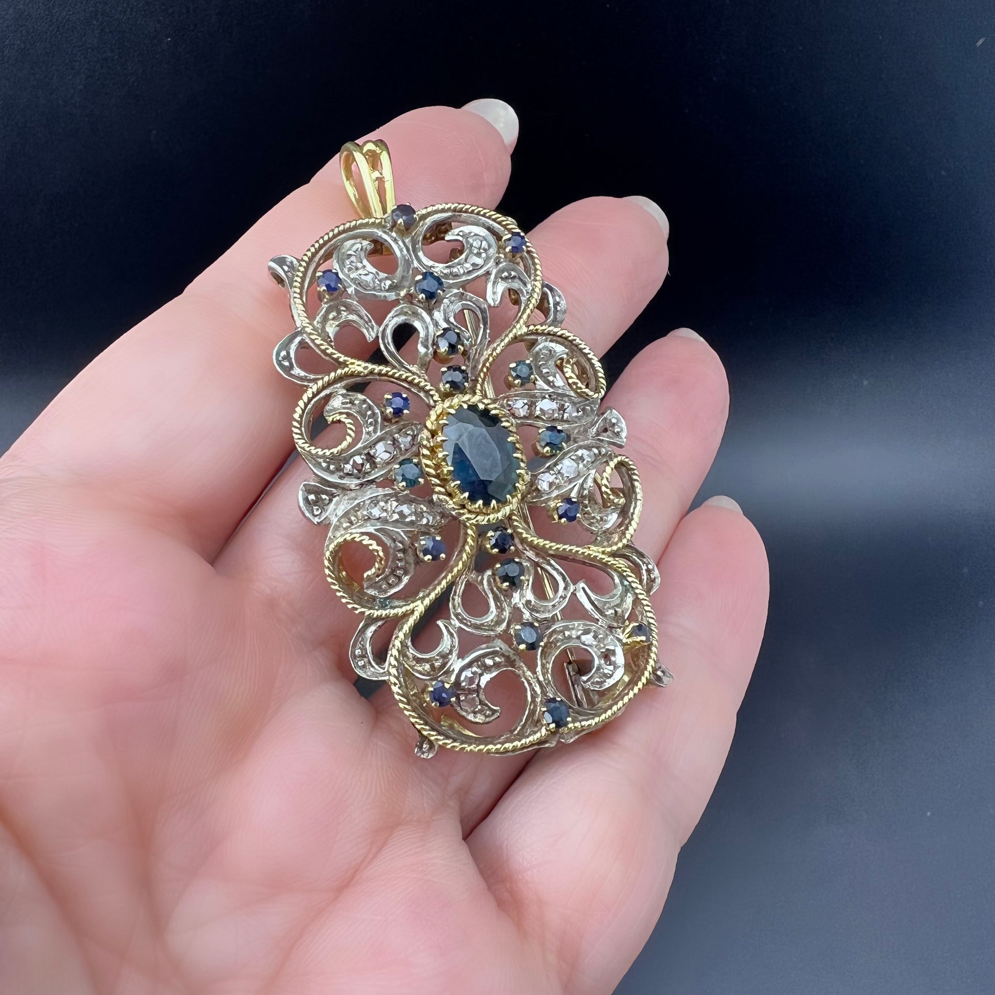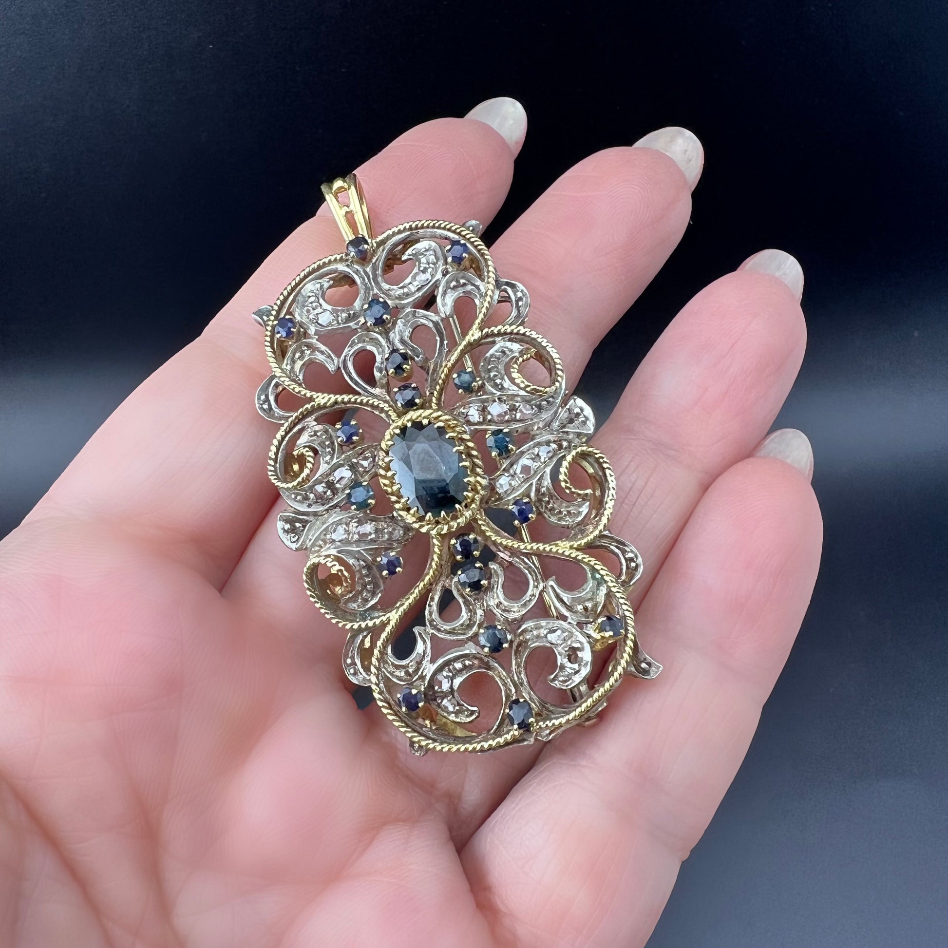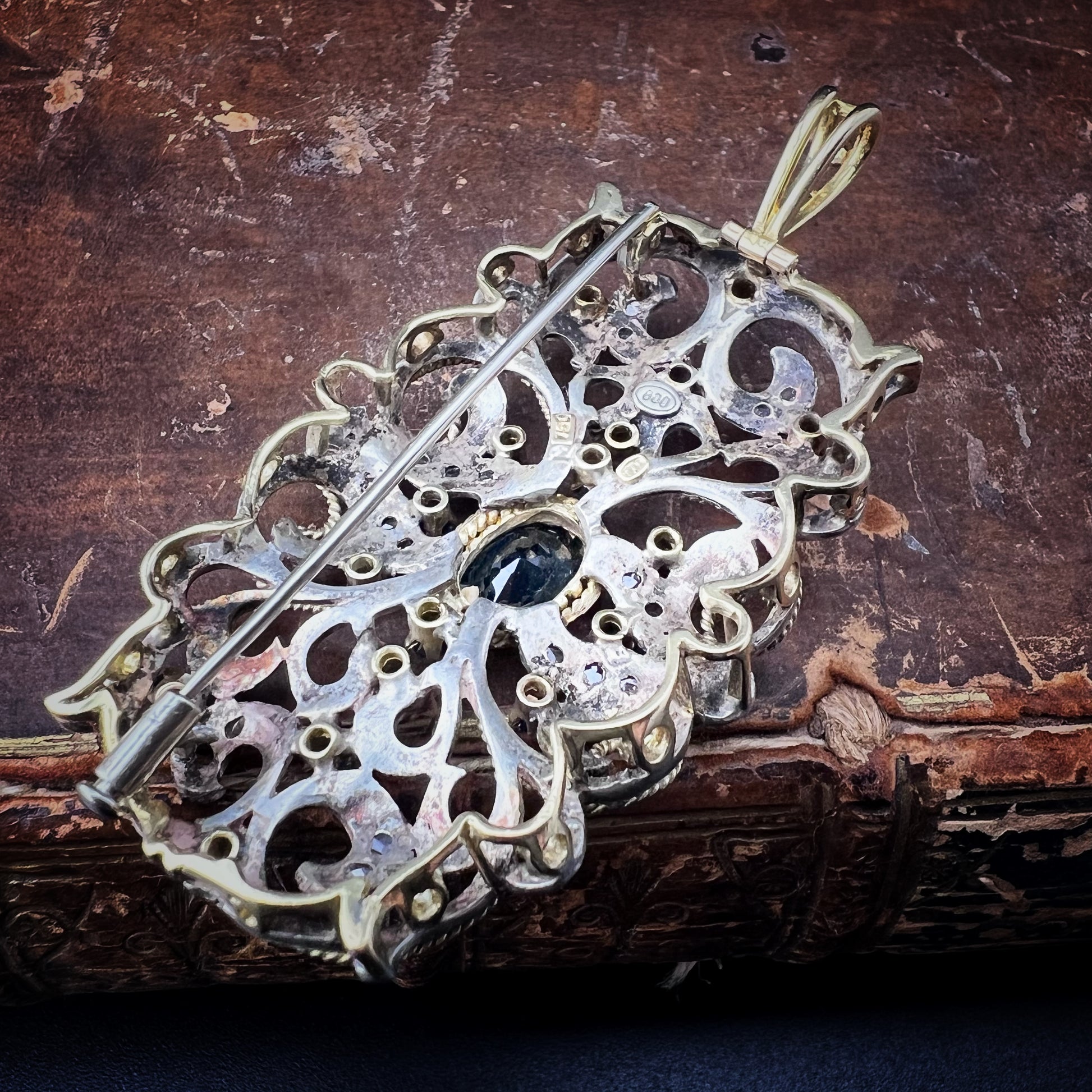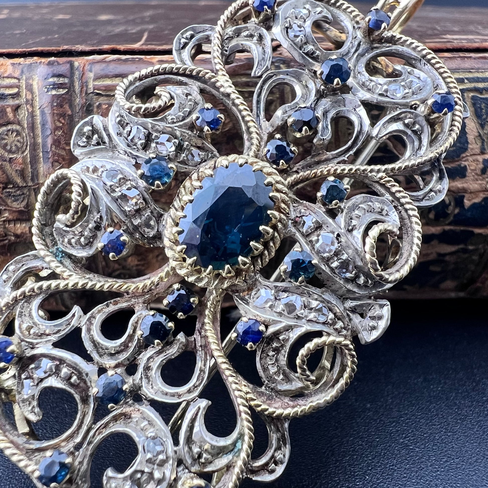 Anhänger - Brosche aus Gold, Silber, Saphiren und Diamantrosetten