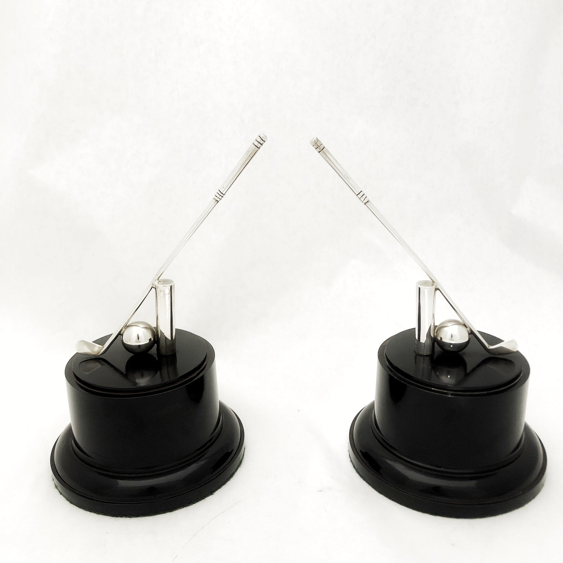 Ein seltenes Paar Golf-Buchstützen aus Silber und Bakelit, AL Davenport Ltd, Birmingham, 1936.
