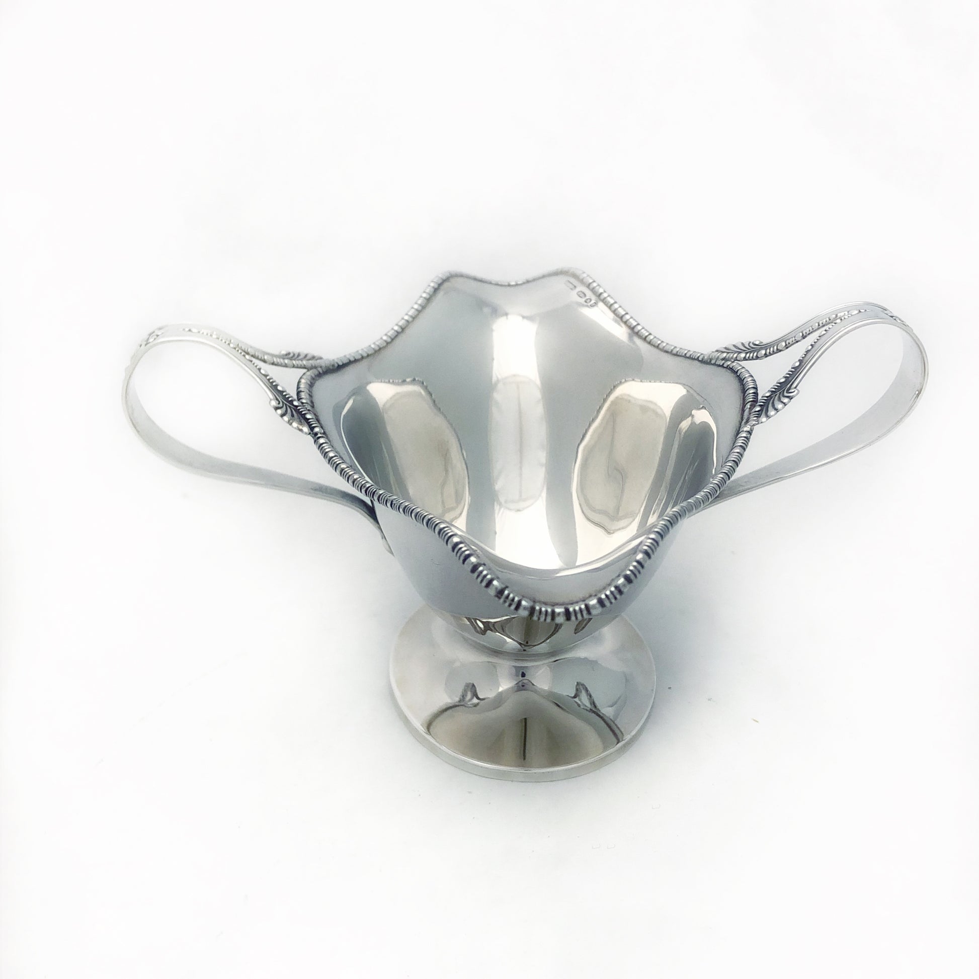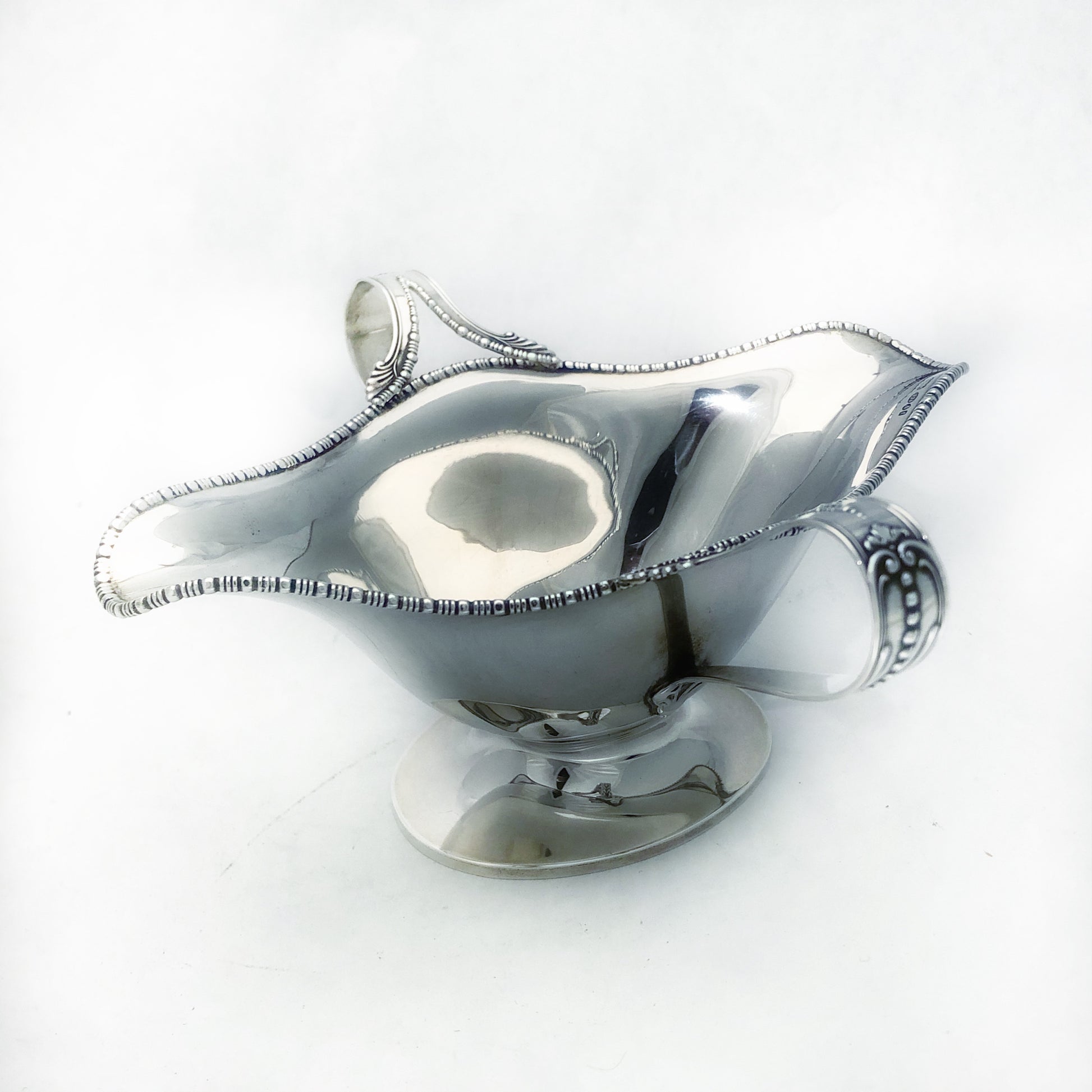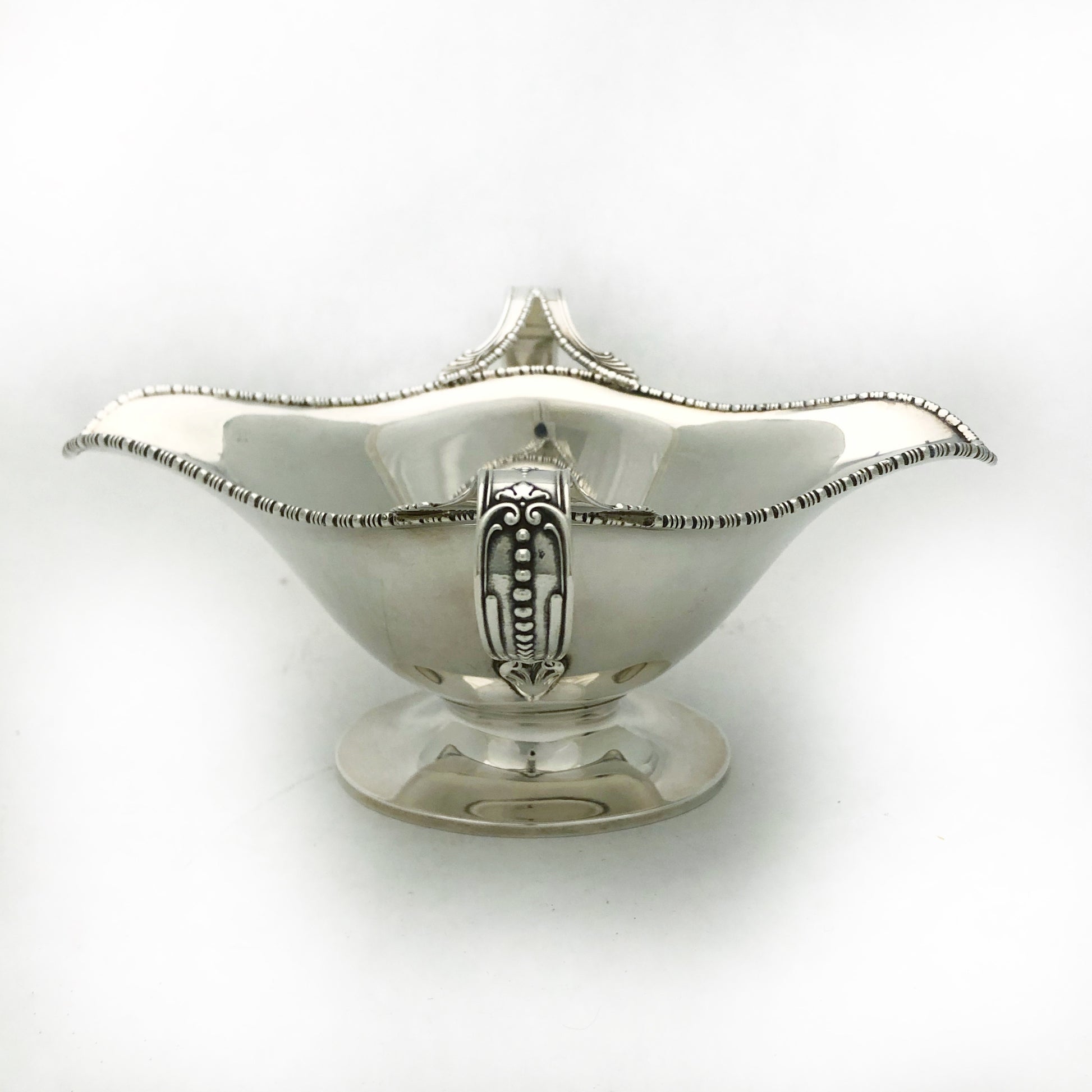 Doppelgriffige Soßenschüssel mit doppeltem Ausgießer aus Sterlingsilber, hergestellt von der GM Company in den frühen 1900er Jahren.