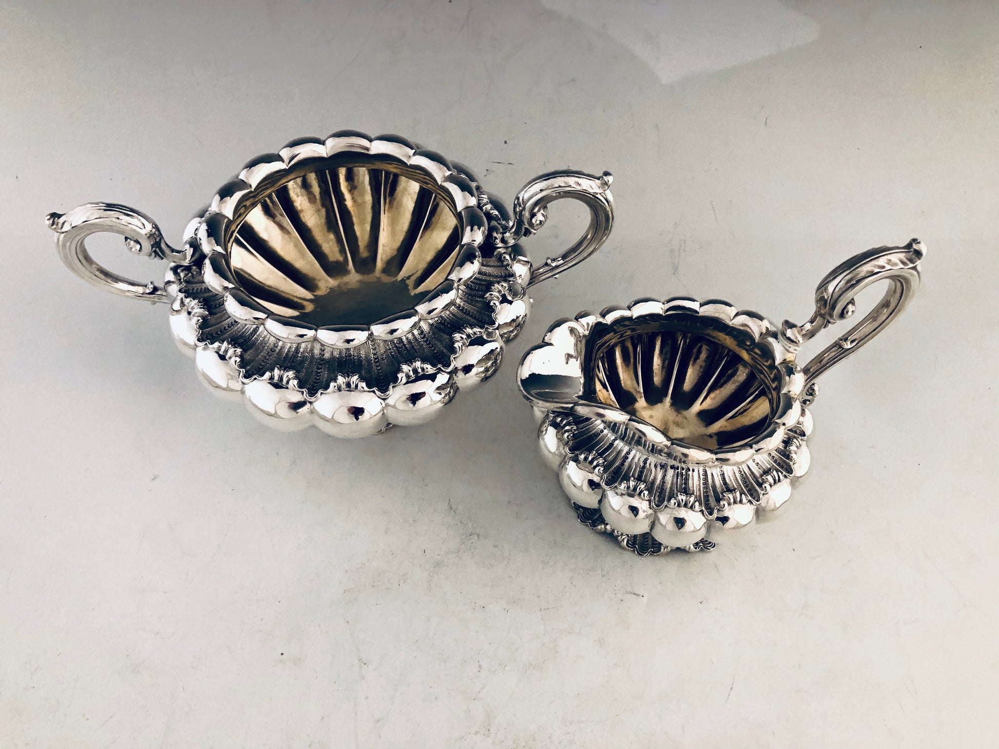 Milchkännchen und Zuckerdose sind innen mit perfekt erhaltener Vermeil- Vergoldung vergoldet.
