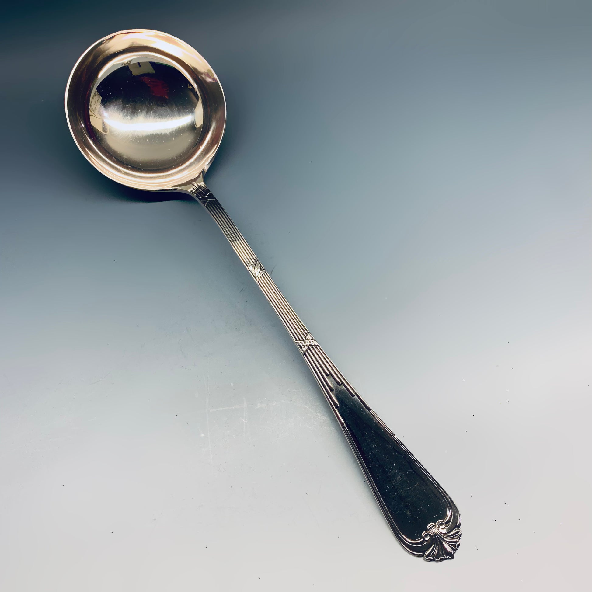 83-teiliges Besteckset für zwölf Personen, bestehend aus 12 Menügabeln, -löffeln und -messern, 13 Vorspeisen- oder Dessertgabeln, -messern und -löffeln, 2 Salatbesteckteilen, 2 Servierlöffeln und -gabeln, 2 Fischbesteckteilen, 1 Dessertbesteckteil und 1 Schöpfkelle.