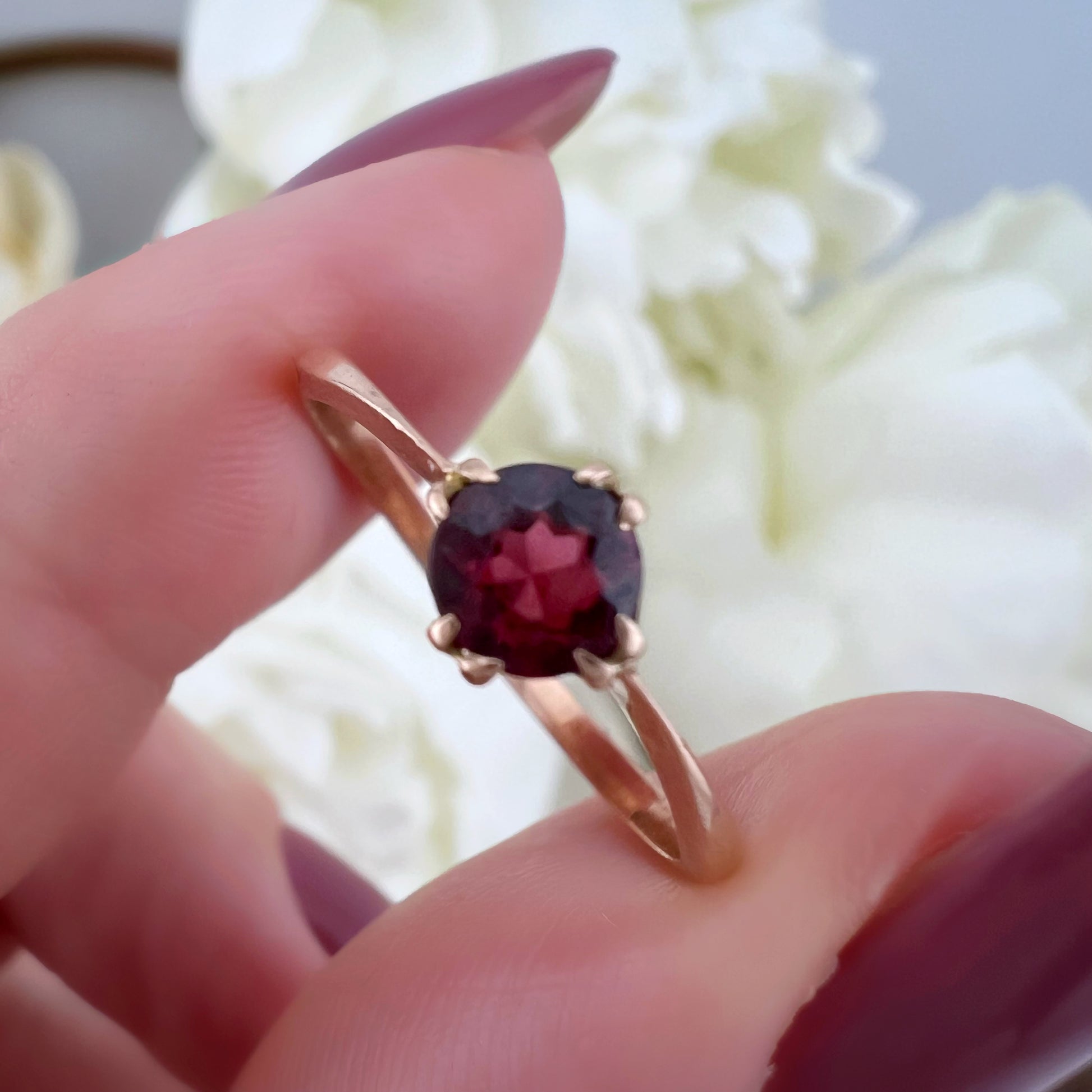 Granat ist ein Edelstein, der seit Jahrhunderten mit Leidenschaft, Vitalität und Energie assoziiert wird. Er gilt als Schutzstein und soll Mut und Entschlossenheit fördern und seinem Träger innere Stärke verleihen. Er ist auch ein Symbol tiefer Liebe und dauerhafter Bindungen und eignet sich daher perfekt für einen Solitärring mit emotionalem und ästhetischem Wert.