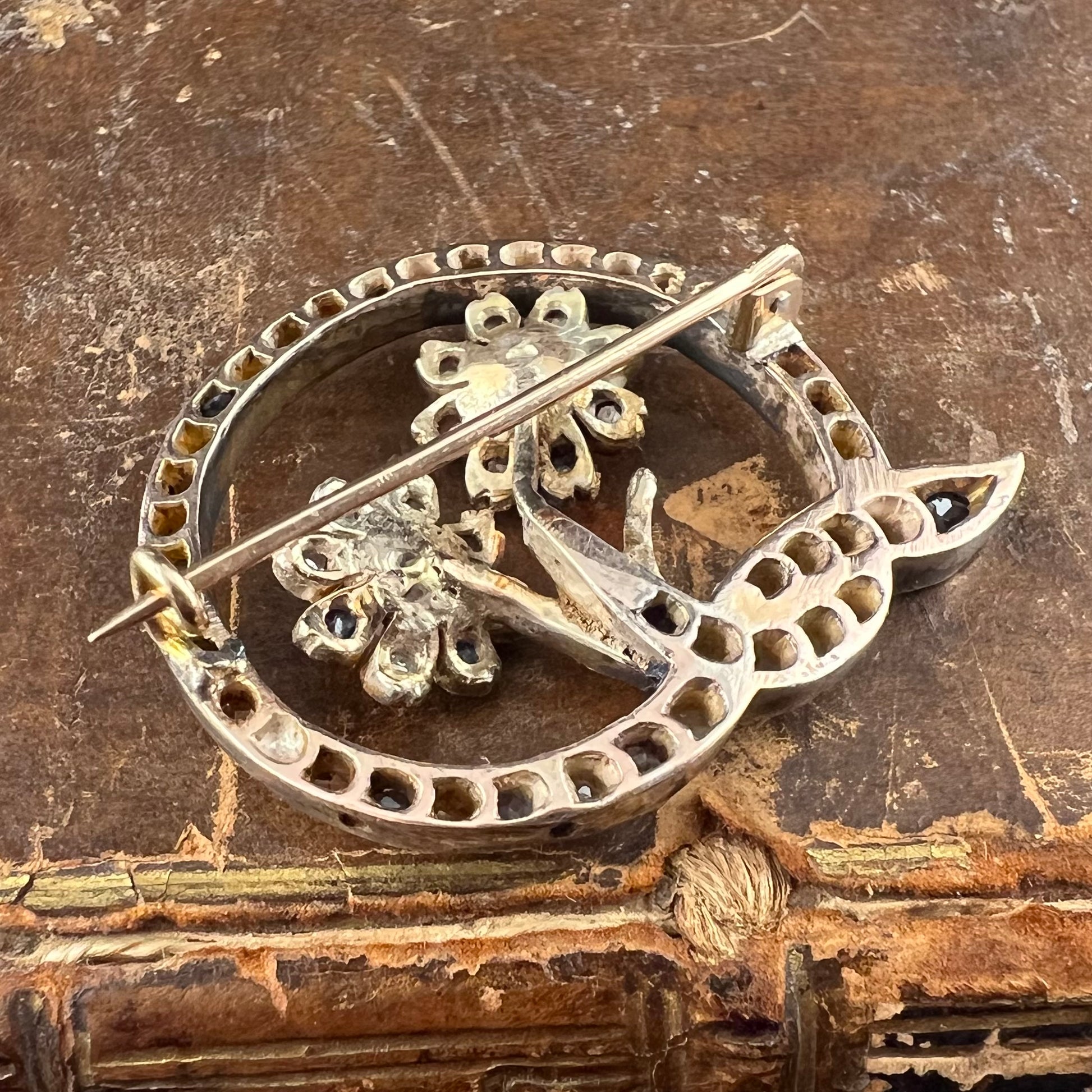 Antike Brosche aus 14 Karat Gold und Silber mit Diamanten und Saphiren. Amerikanisch, 1950er Jahre.