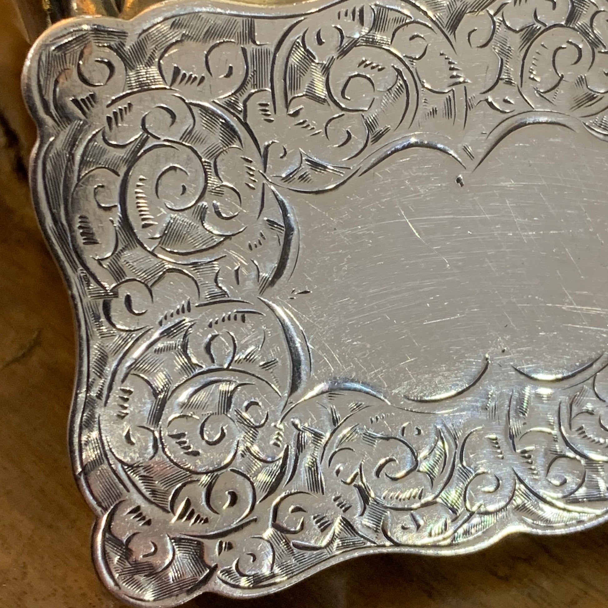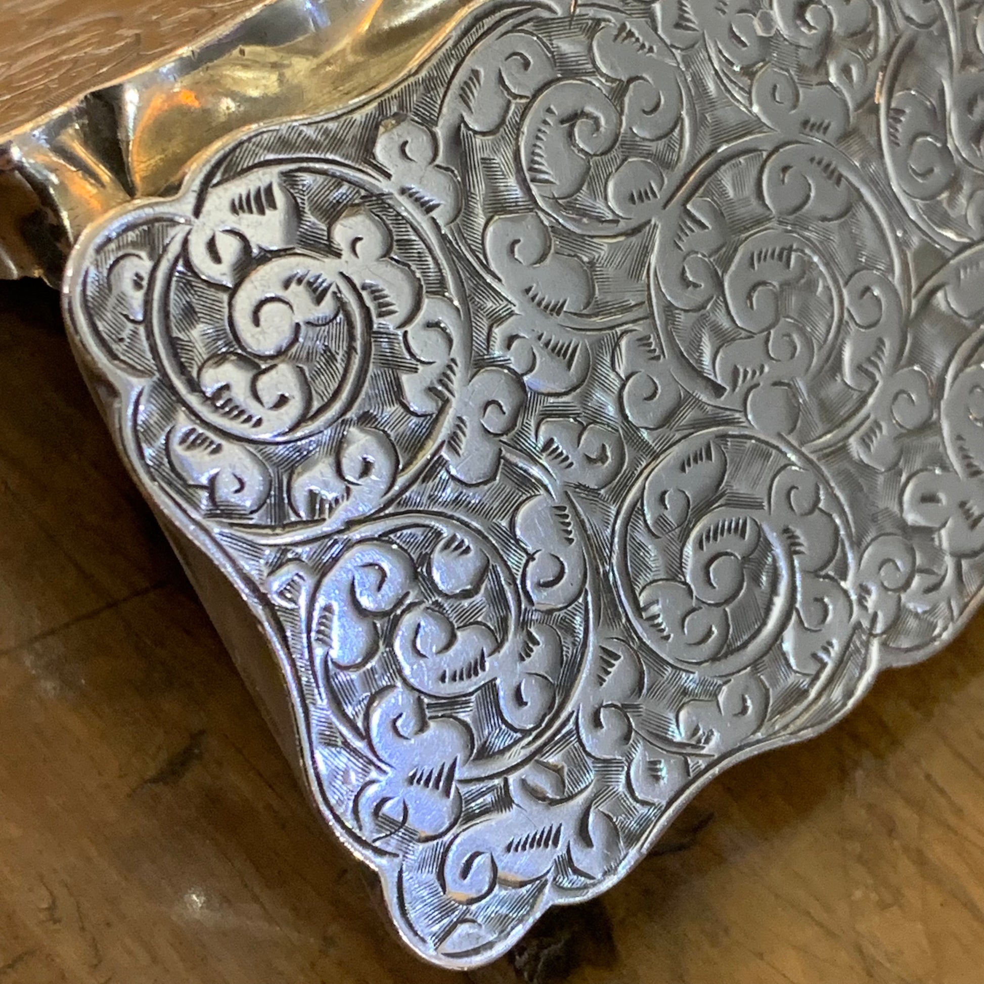 Antiker Schnupftabakhalter aus handgeziseliertem Silber mit durchgehenden Pflanzenmotiven.