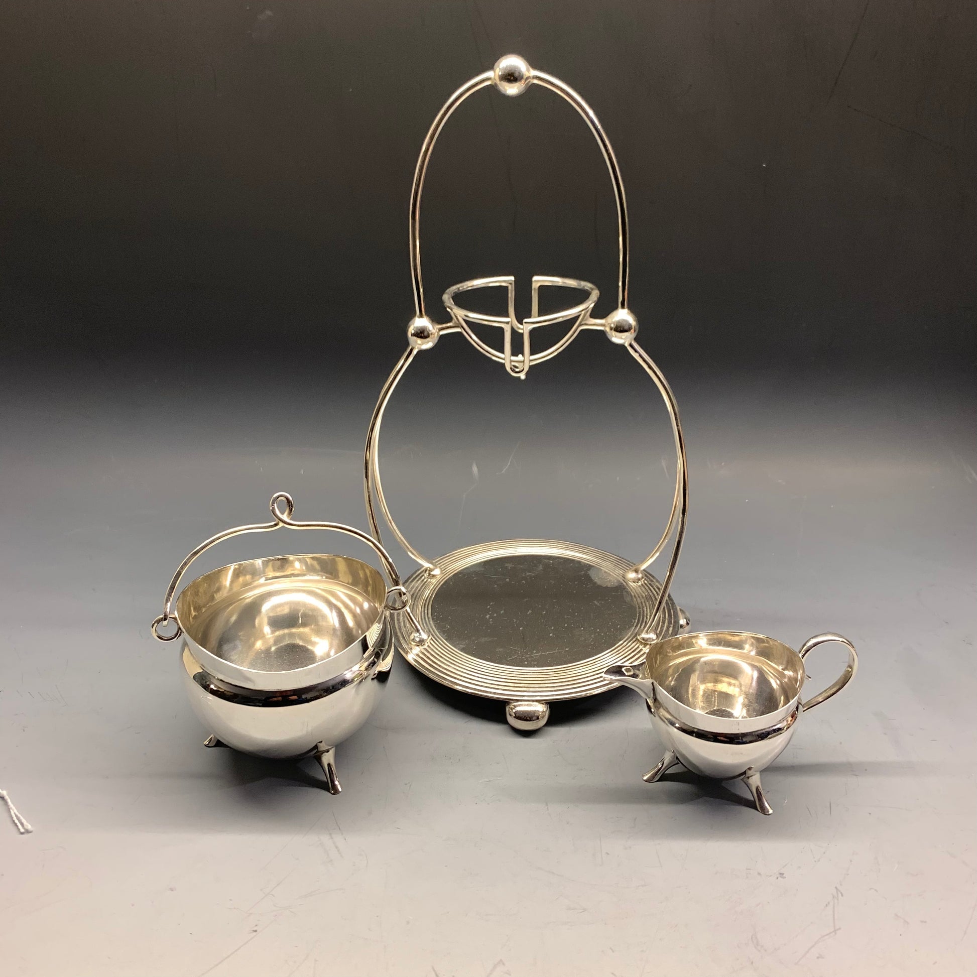 Zuckerdose und Sahnekännchen mit Ständer. Sheffield-Teller, George Bowen & Söhne, um 1890.