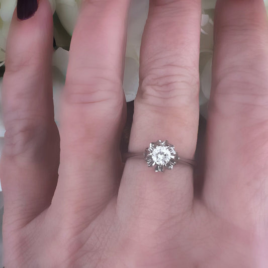Anello Solitario in Oro Bianco 18K con Diamante Brillante 0.27 ct
