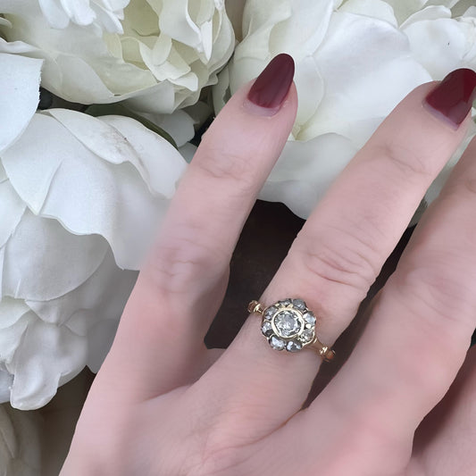 Anello antico in oro giallo con diamante Old Mine e corona di rose cut – Italia, primi ‘900