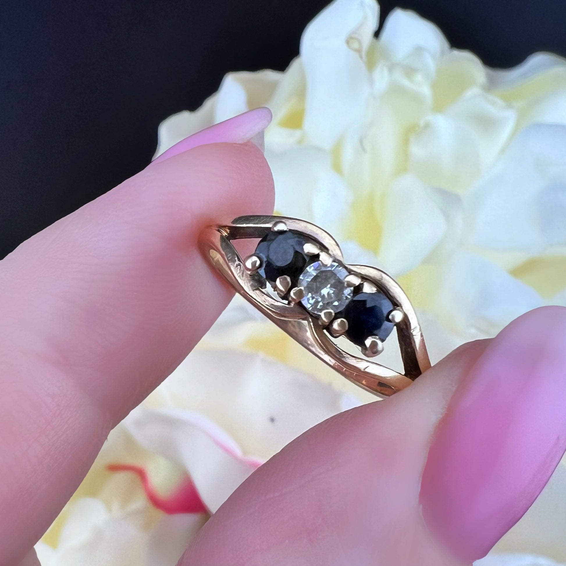💍 Vintage Sapphire and Diamond Trilogy Ring (London, 1981)