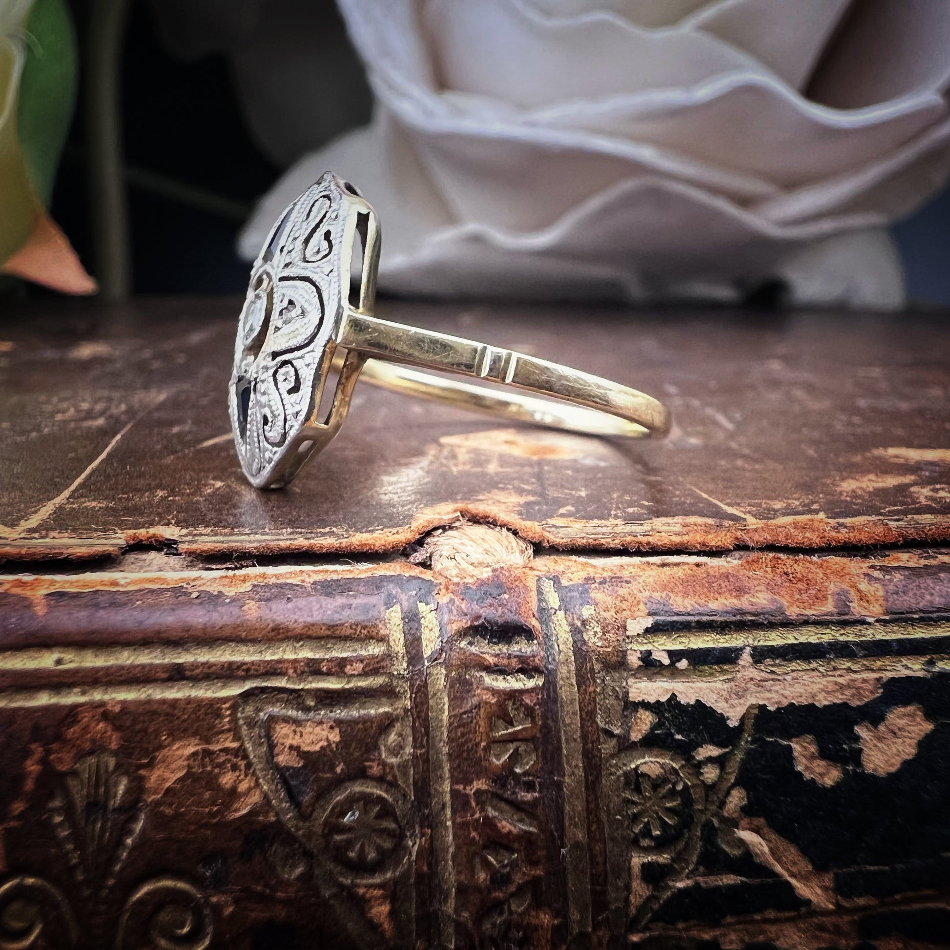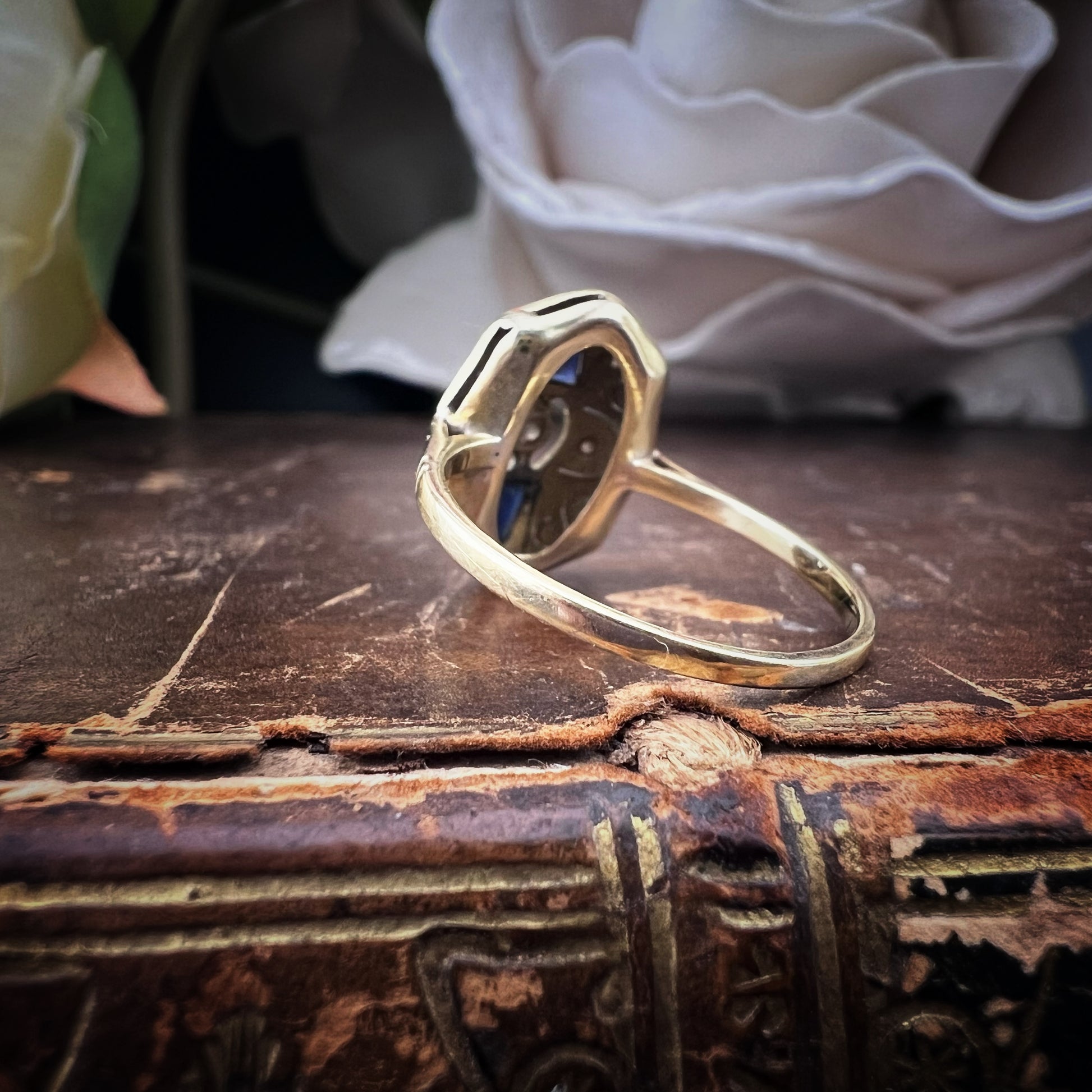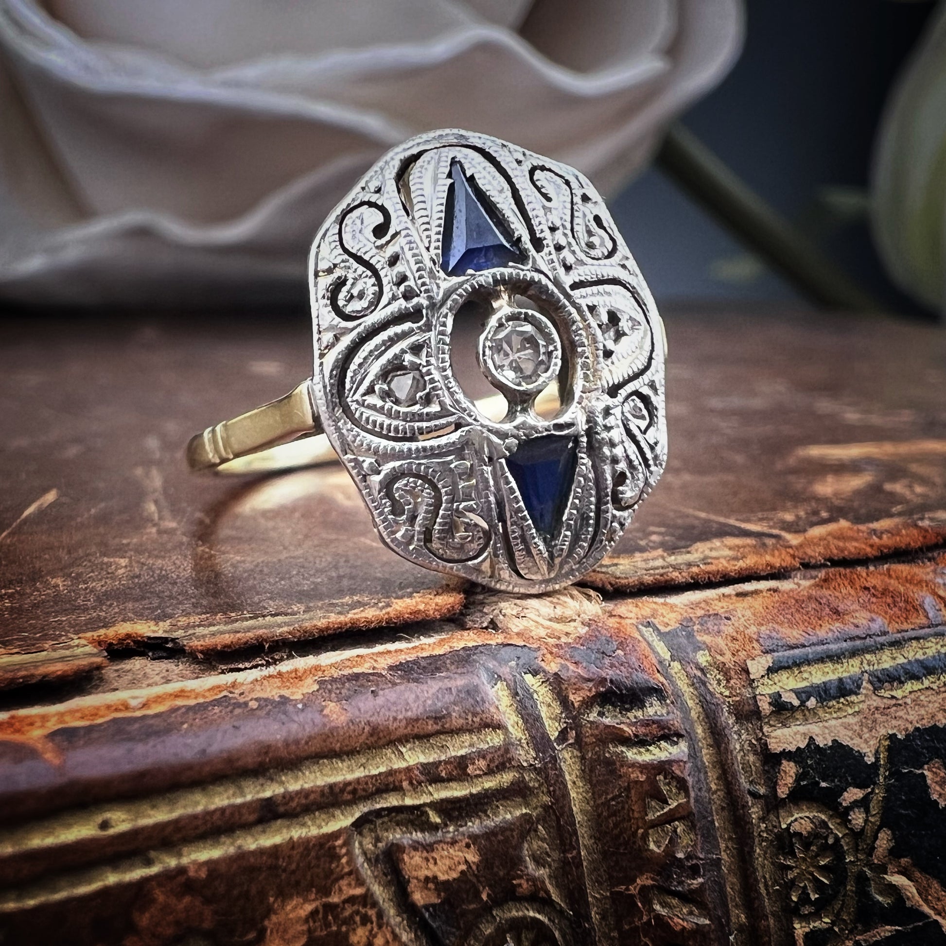 Antique Gold and Platinum Ring with Sapphires and Diamonds – Art Deco Period (-1930)