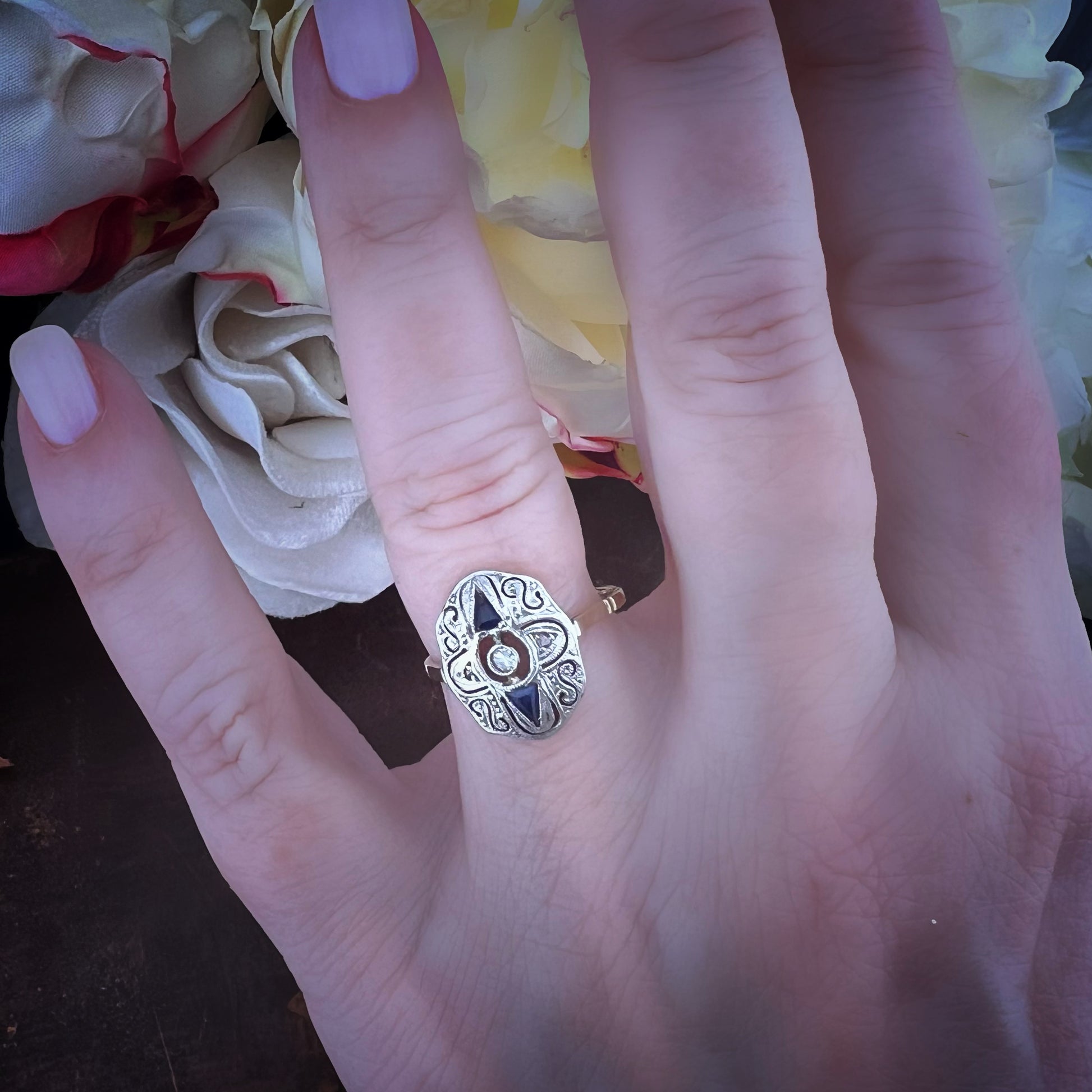 This ring is a unique piece that tells a story. Perfect for those who love vintage style, Art Deco elegance, and the timeless sophistication of antique jewelry. It's an ideal gift for an anniversary, a milestone birthday, or a special occasion.