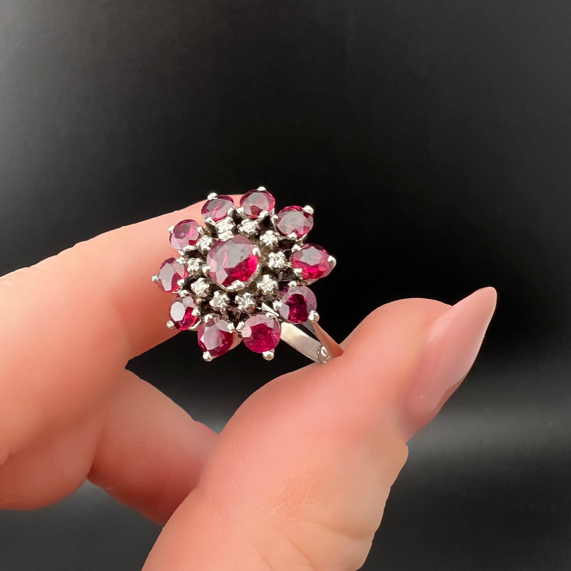 💝 Why choose this ruby and diamond daisy? This ring is not just an ornament, but a small work of art that carries with it a story of refinement and goldsmith mastery.