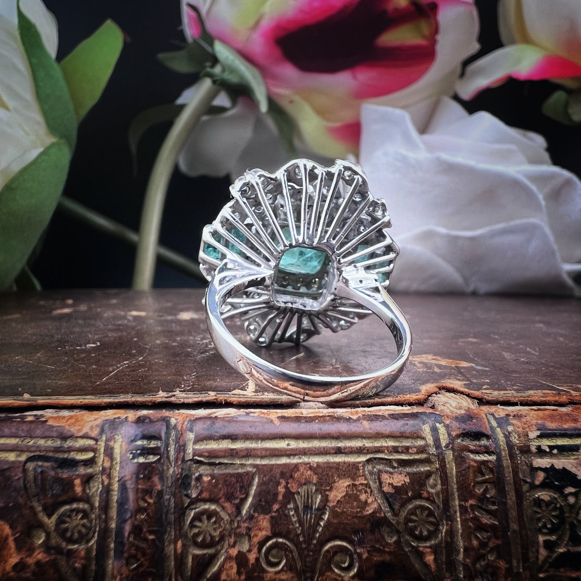 The "ballerina" ring is an icon of 20th-century jewelry, known for its elegance and design, which evokes the graceful movement of a ballerina. This style is distinguished by a central gemstone, often a diamond or emerald, surrounded by a radial arrangement of baguette or marquise-cut diamonds, evoking the folds of a tutu in motion.