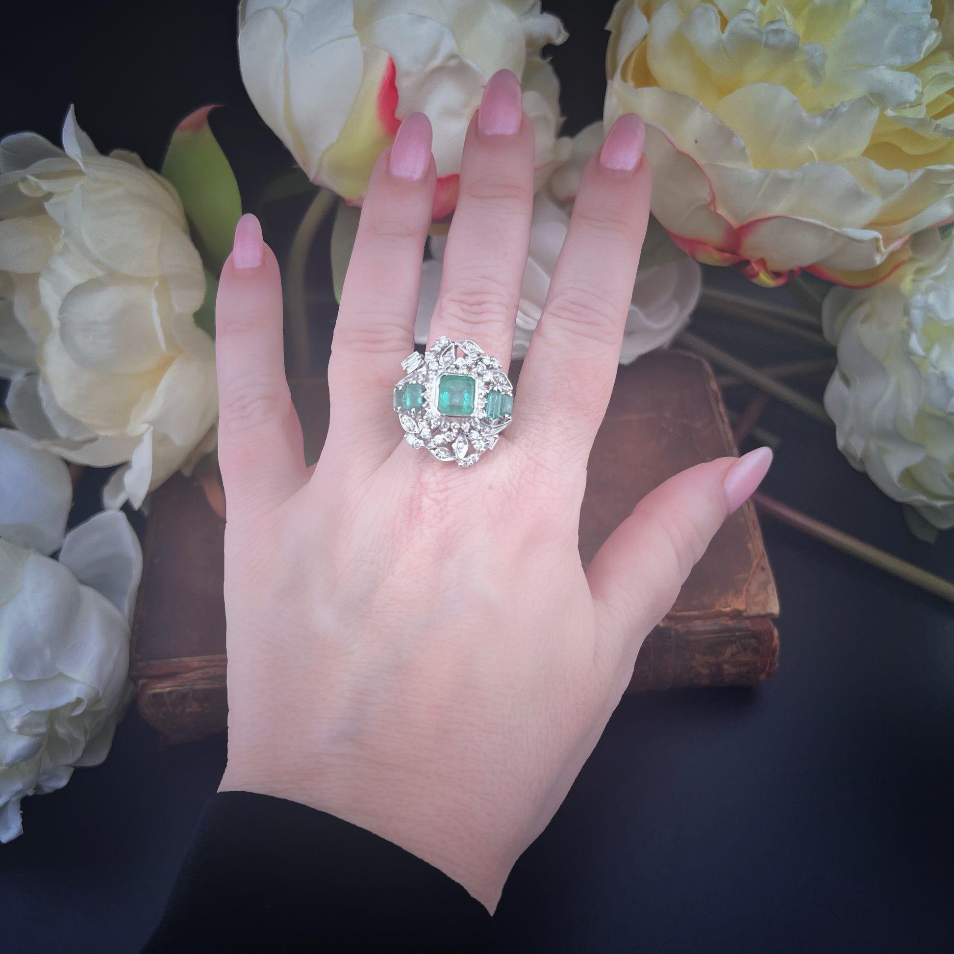 Beyond its aesthetic beauty, the ballerina ring symbolizes grace, movement, and femininity. The arrangement of gemstones around the center stone represents harmony and balance, making this ring a popular choice not only as a cocktail ring but also as an engagement ring for those seeking a unique and meaningful design.