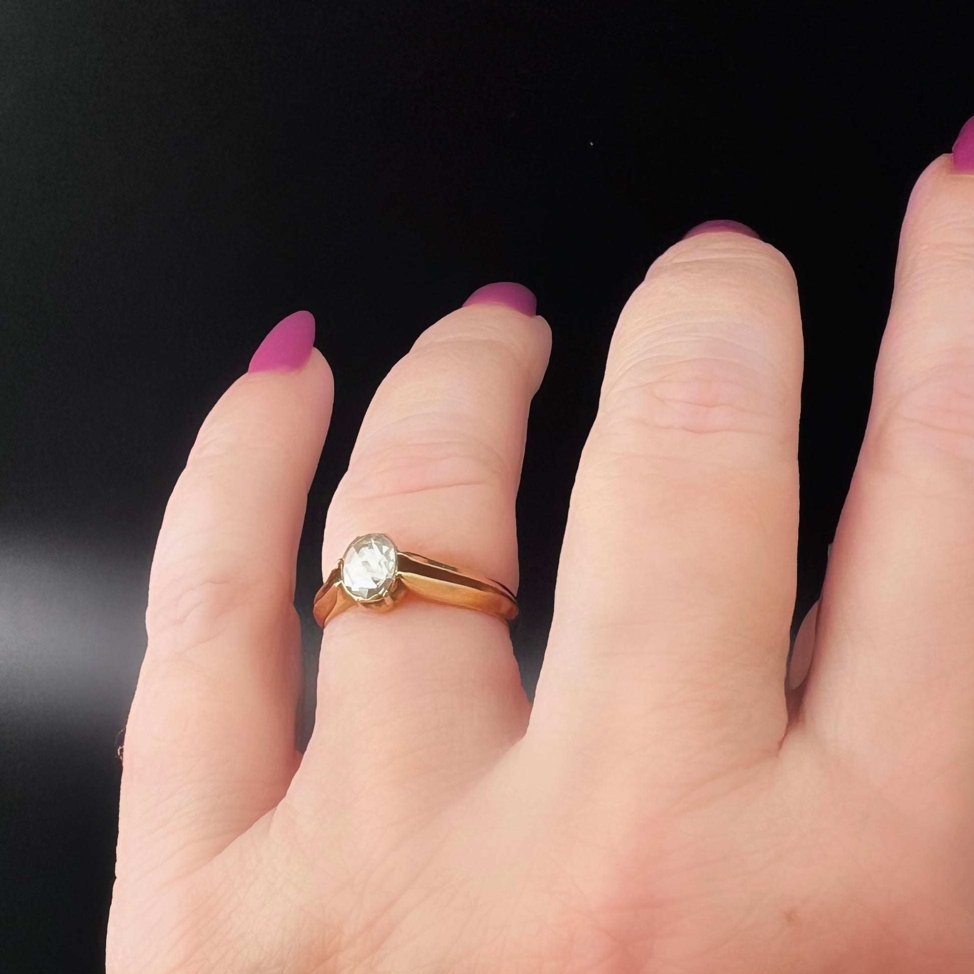 • Stone : natural rose-cut diamond, approximately 0.60 ct (estimated when mounted)