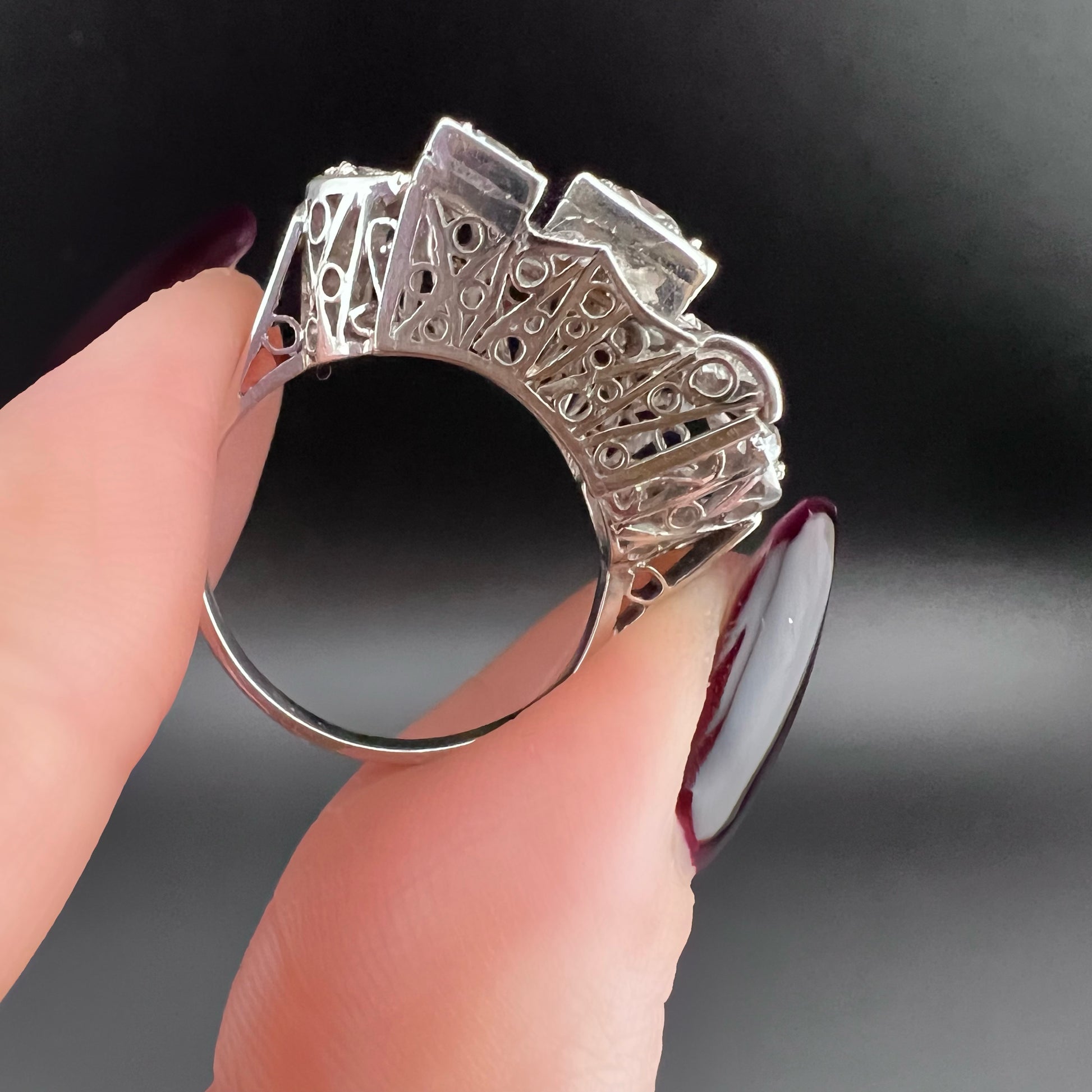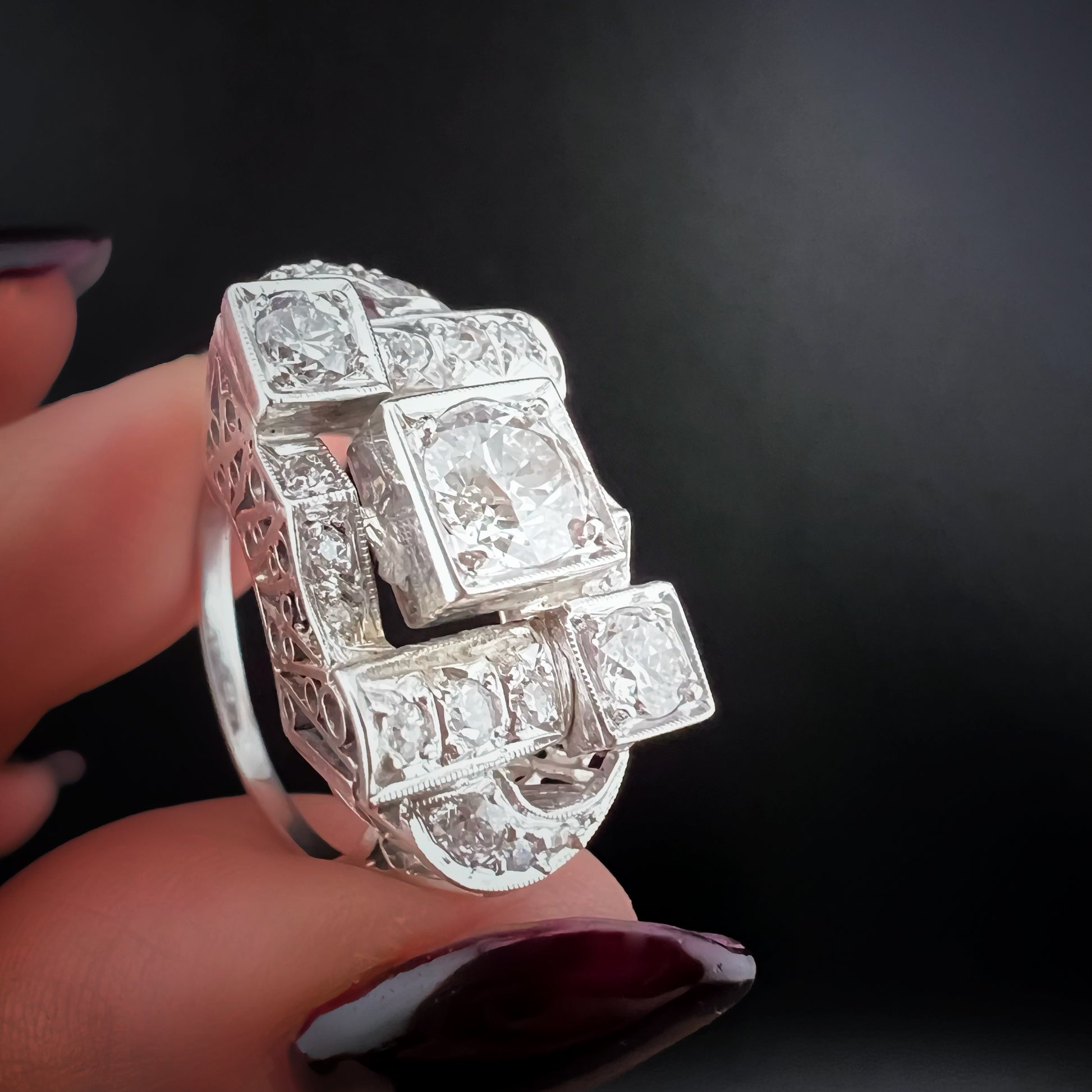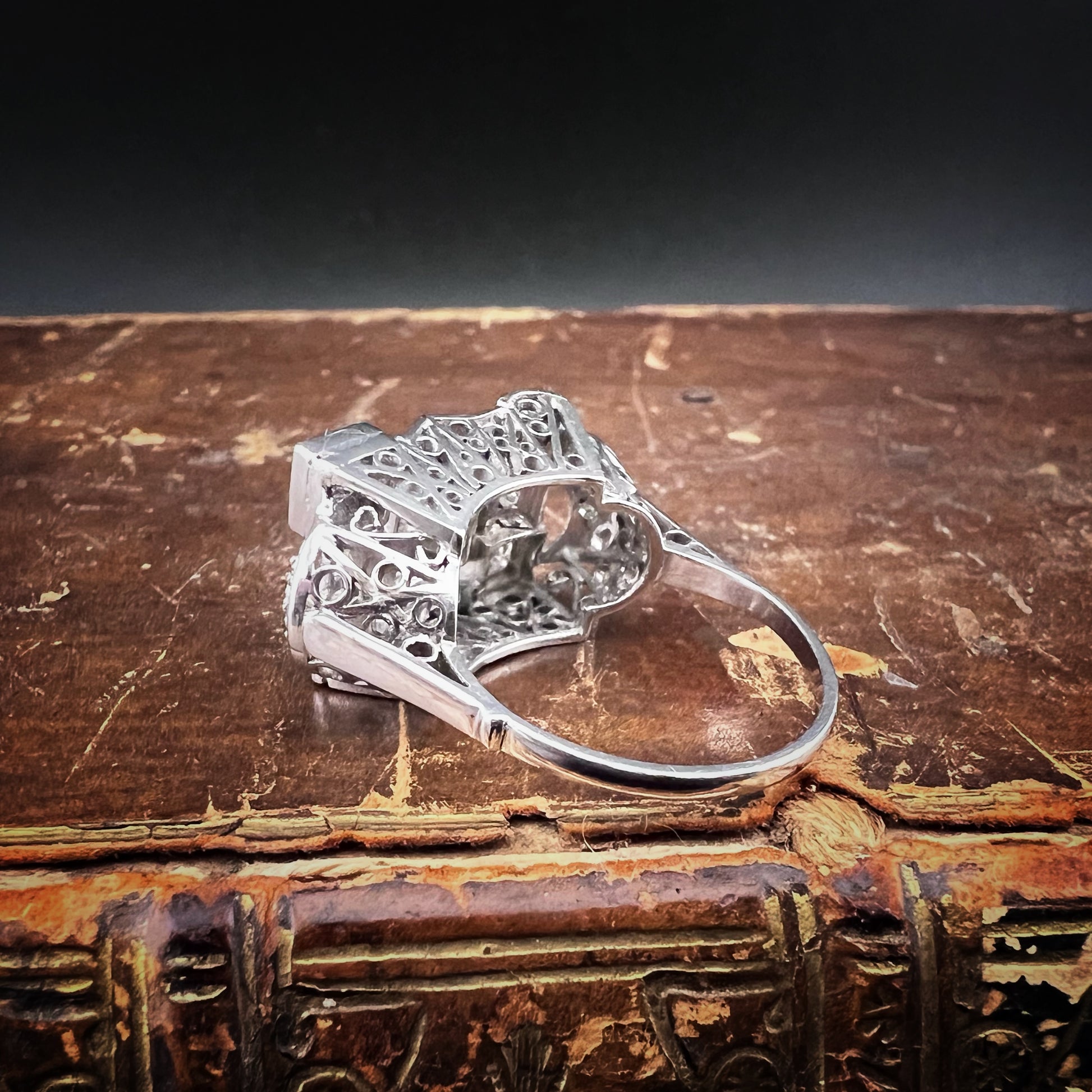 Elegant and original 950/1000 platinum ring dating back to the 1930s, a refined example of Art Deco.