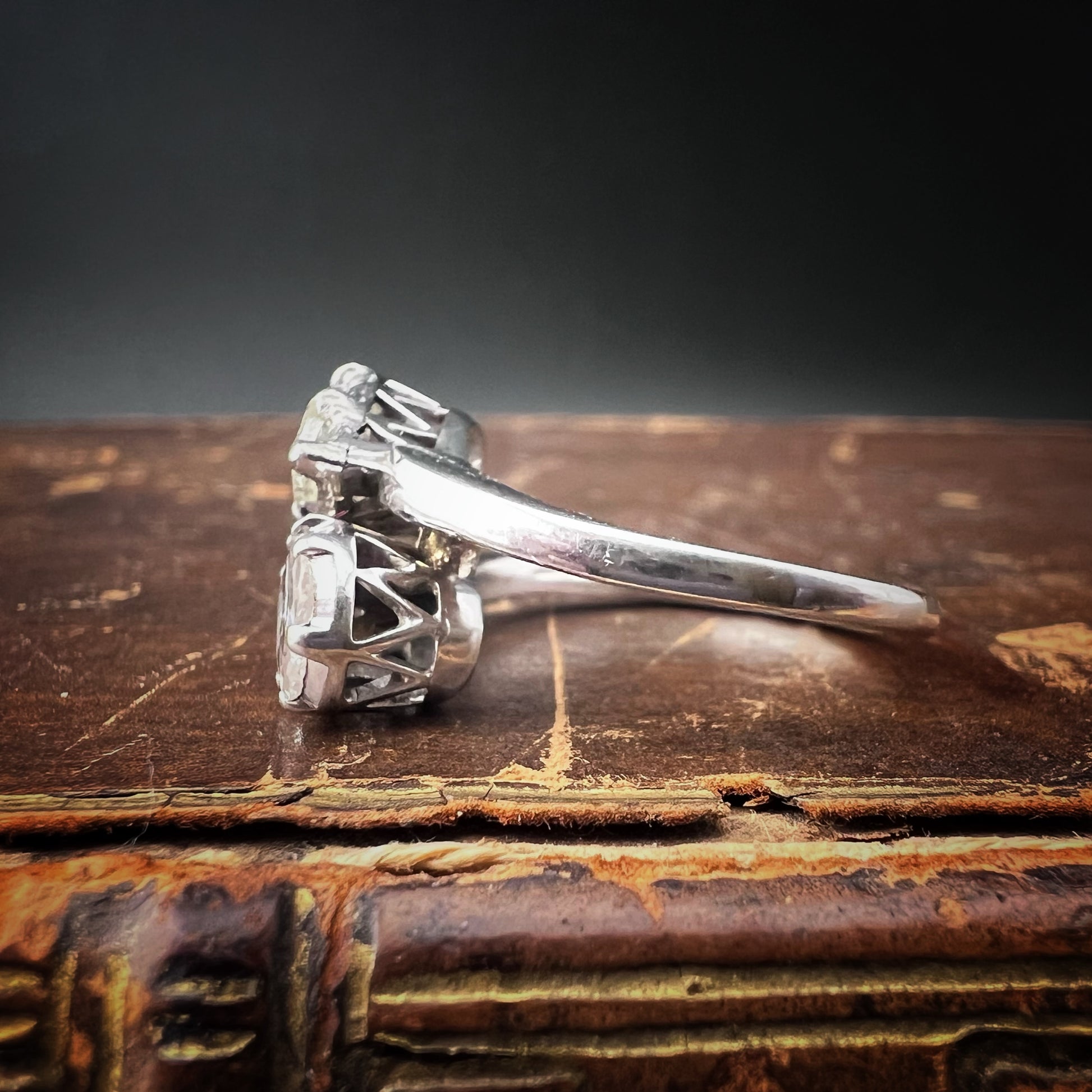 18K white gold “Toi et Moi” contrariè ring with pear-cut diamonds – Italy, 1920s